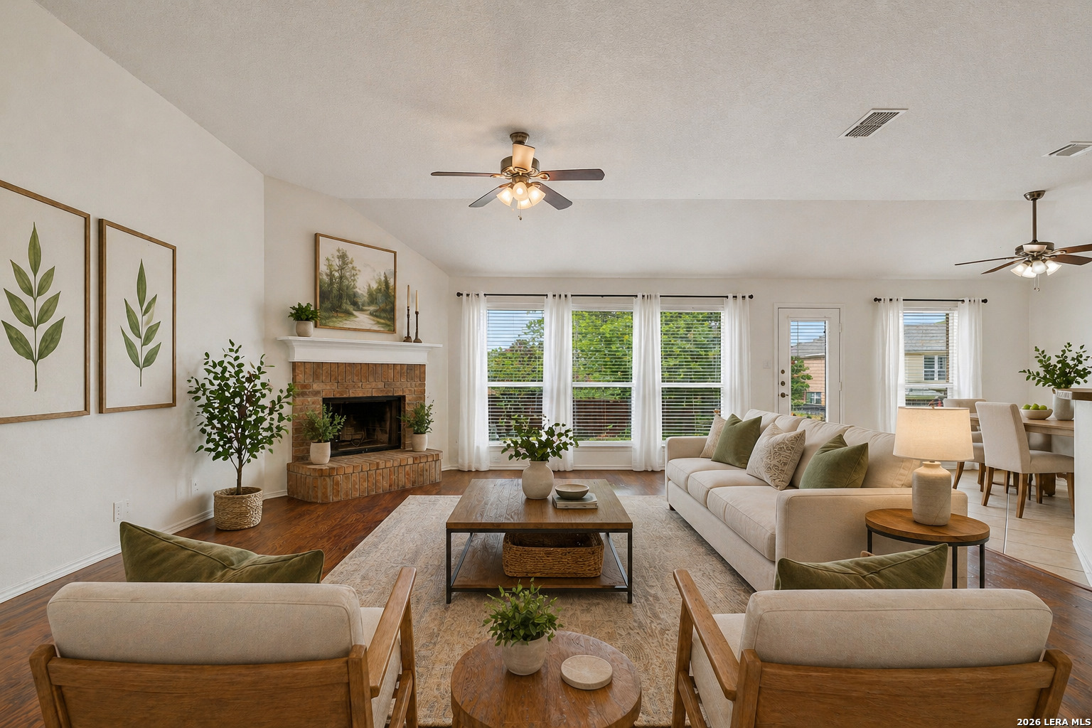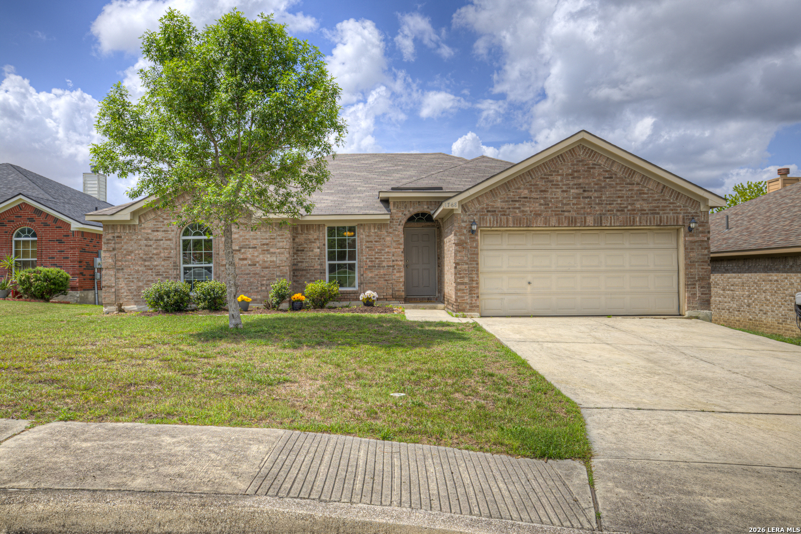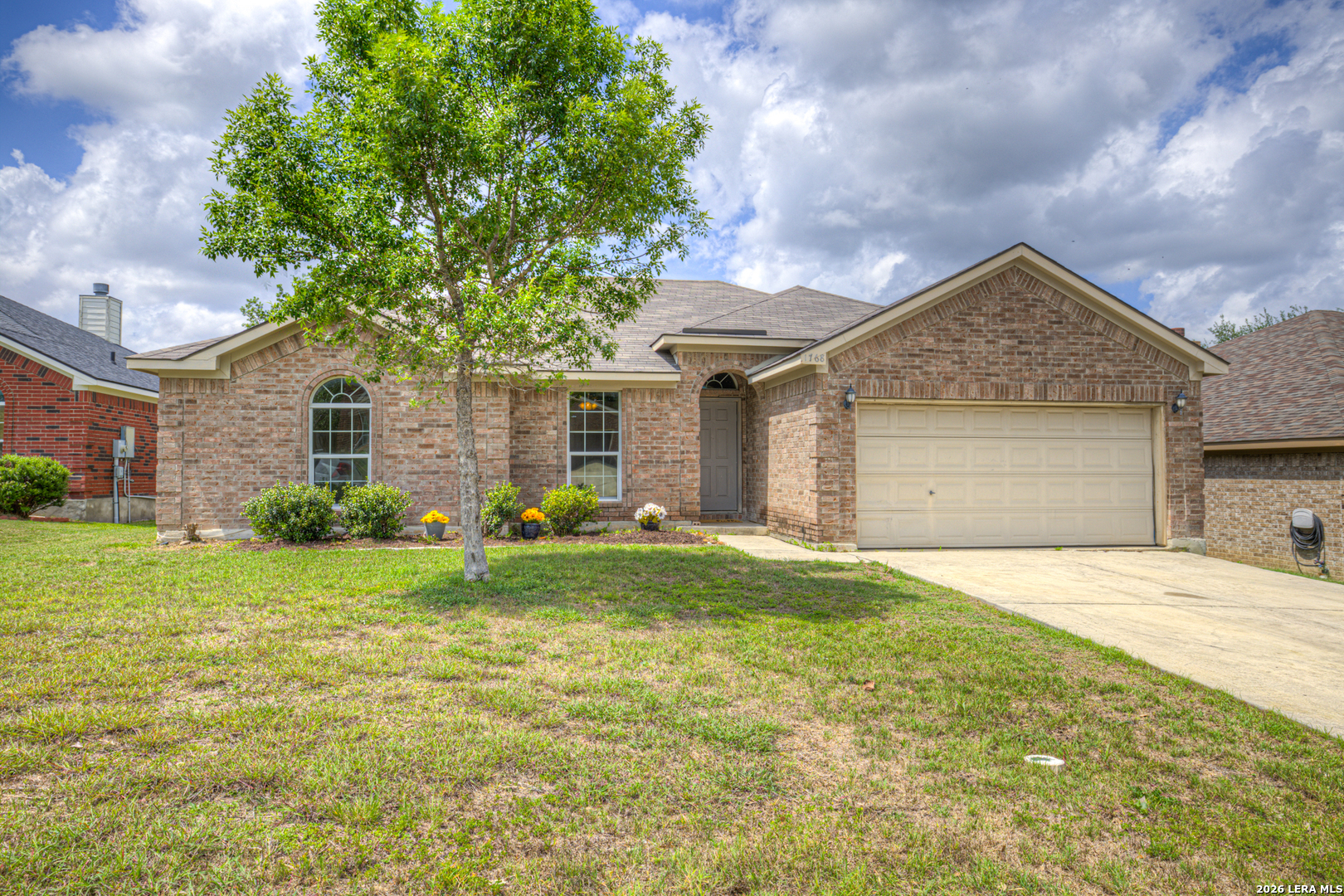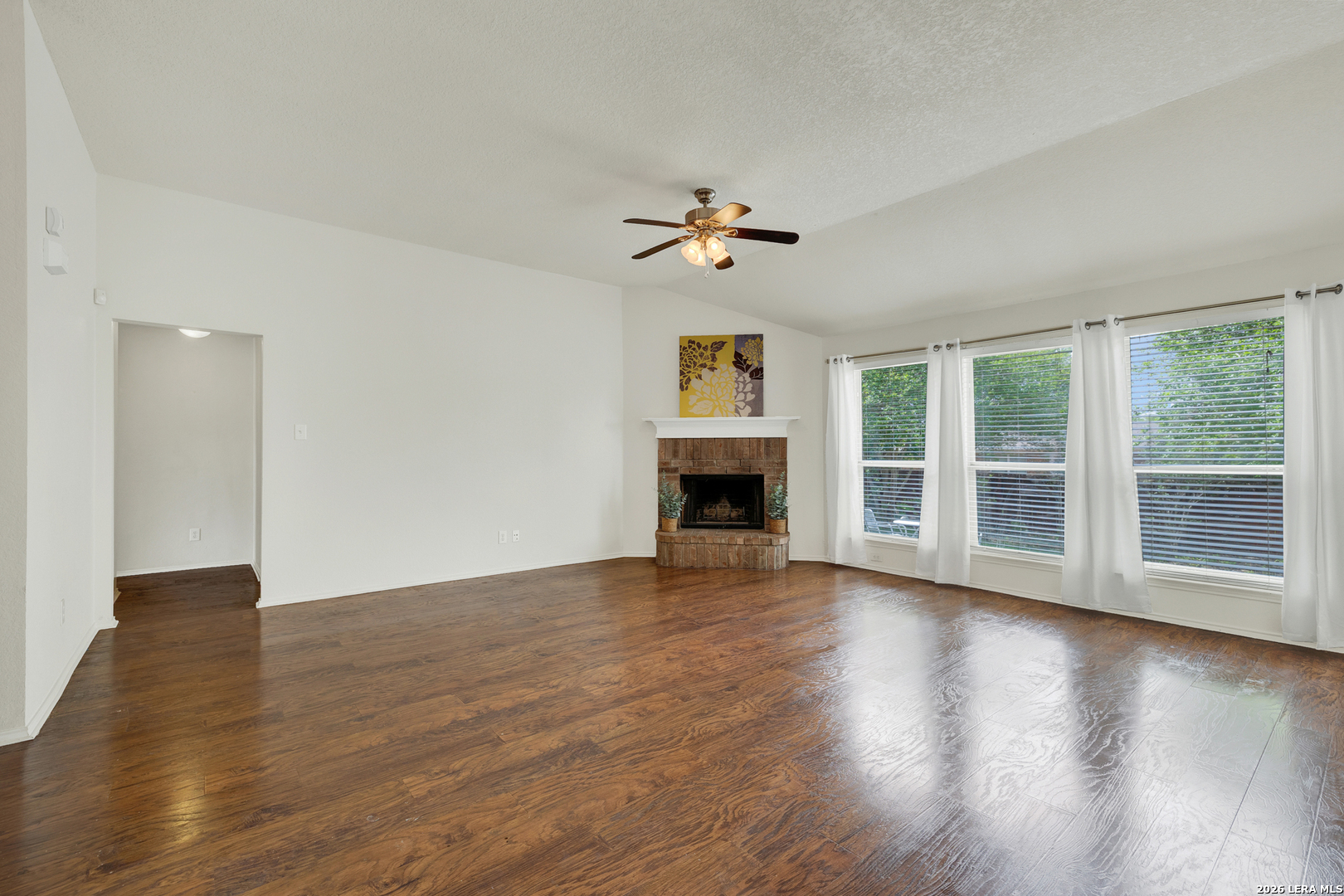 Welcome to 1768 Upper Forty in the sought-after Voss Farms community of New Braunfels! This charming single-story home offers 3 bedrooms, 2 full bathrooms, and a thoughtfully designed open floor plan filled with abundant natural light. Built with four sides brick, this home combines durability with timeless curb appeal. Inside, the spacious living room features a cozy corner wood-burning fireplace, creating a warm focal point while still allowing for flexible furniture placement. The living area flows seamlessly into the dining and kitchen spaces, perfect for both everyday living and entertaining. The primary suite offers a relaxing retreat with a separate shower, garden tub, and a walk-in closet. Secondary bedrooms are generously sized, providing flexibility for guests, family, or a home office. Situated on a .16-acre lot, the property and a manageable outdoor space ready for your personal touch. A key highlight: the roof is just a few weeks old, offering peace of mind for years to come. Residents of Voss Farms enjoy a vibrant, community-focused lifestyle with access to a clubhouse, two pools, walking trails, and neighborhood events throughout the year. Conveniently located near NBISD schools, shopping, major highways, and just minutes from downtown New Braunfels, this home offers both comfort and convenience in one of the area's most desirable neighborhoods. Schedule your showing today and experience everything this home-and community-has to offer!
