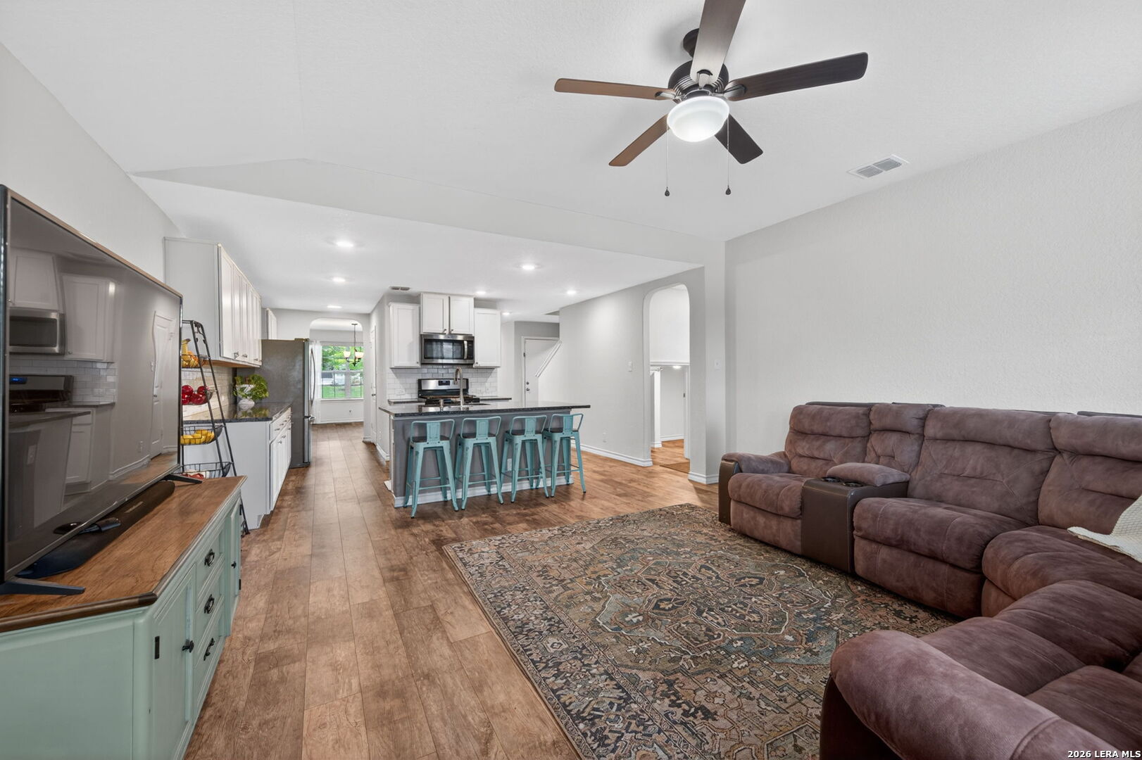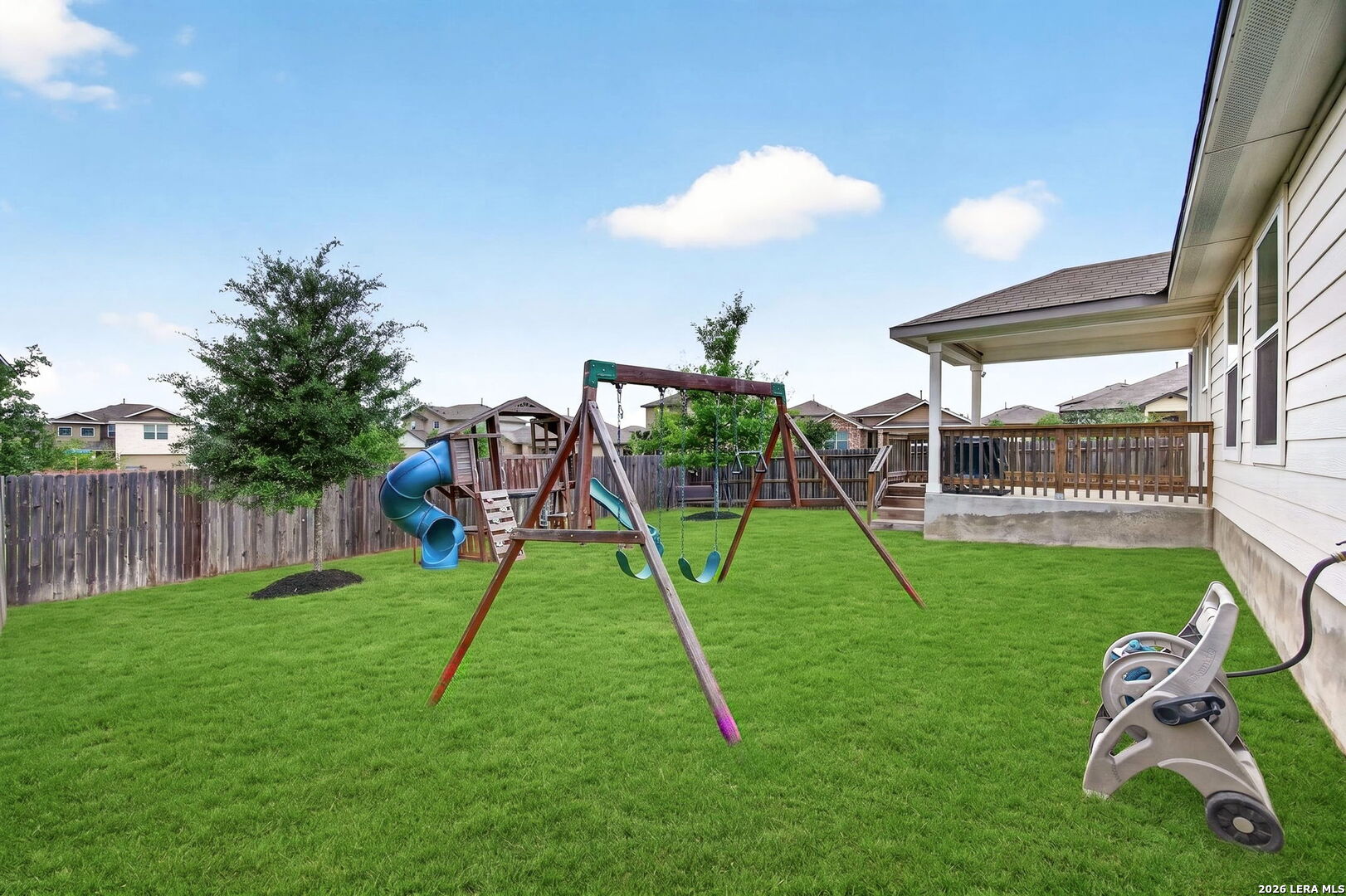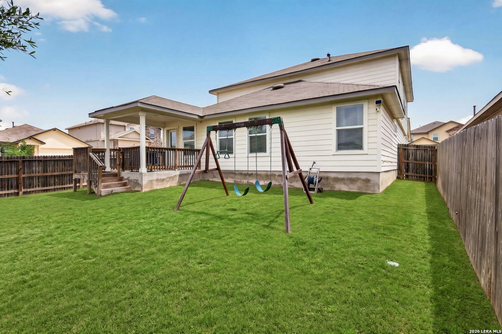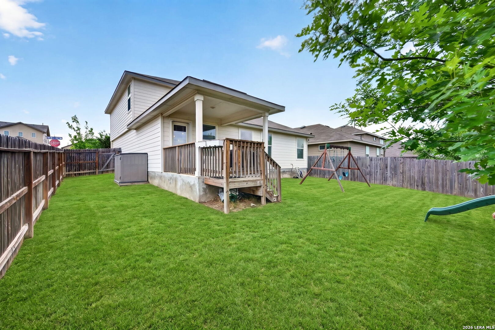 Welcome to this well-maintained Lombardi on a premium corner lot in Redbird Ranch, priced to move quickly! This 5-bedroom home offers a flexible front space for dining or office, opening into a bright kitchen with island, gas cooking, stainless steel appliances, cabinet hardware, and ceiling fans throughout. The main-level primary suite features upgraded luxury plank flooring, and upstairs includes four spacious bedrooms and a large game room. Enjoy a covered patio and spacious backyard, complete with a playset and relaxing bench swing, both conveying with the home. Washer, dryer, refrigerator, water softener, and storage shed also convey. Located just minutes from the neighborhood's stocked fishing pond and within the amenity-packed Redbird Ranch community, featuring two pools, splash pad, fitness center, courts, and weekly food trucks/events. Third amenity center within walking distance, including a water slide and pickleball courts, coming soon. Zoned to highly rated Medina Valley ISD schools, including the brand-new Creek View High School opening Fall 2026. Owner is a licensed Texas realtor.