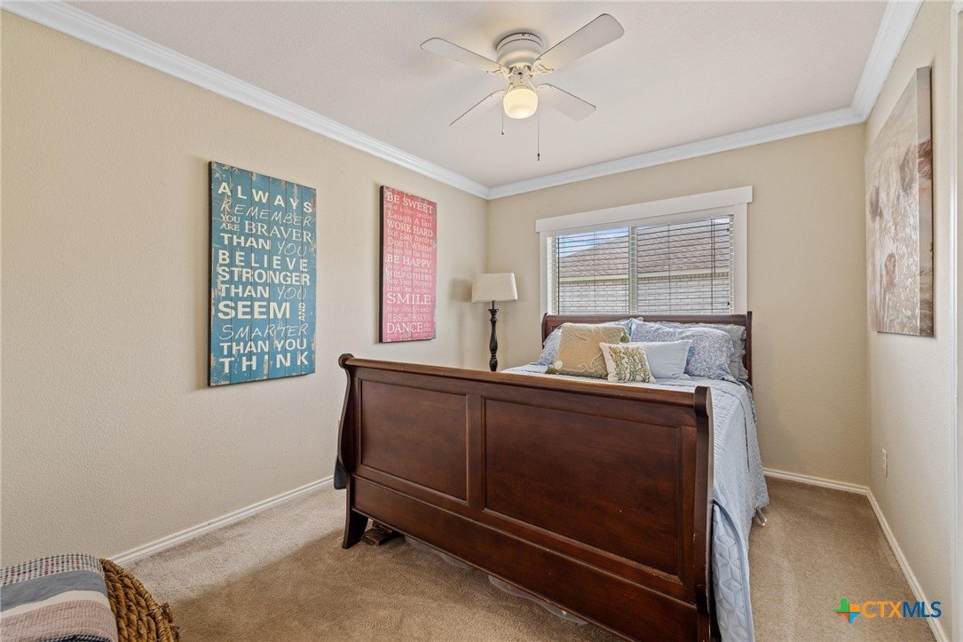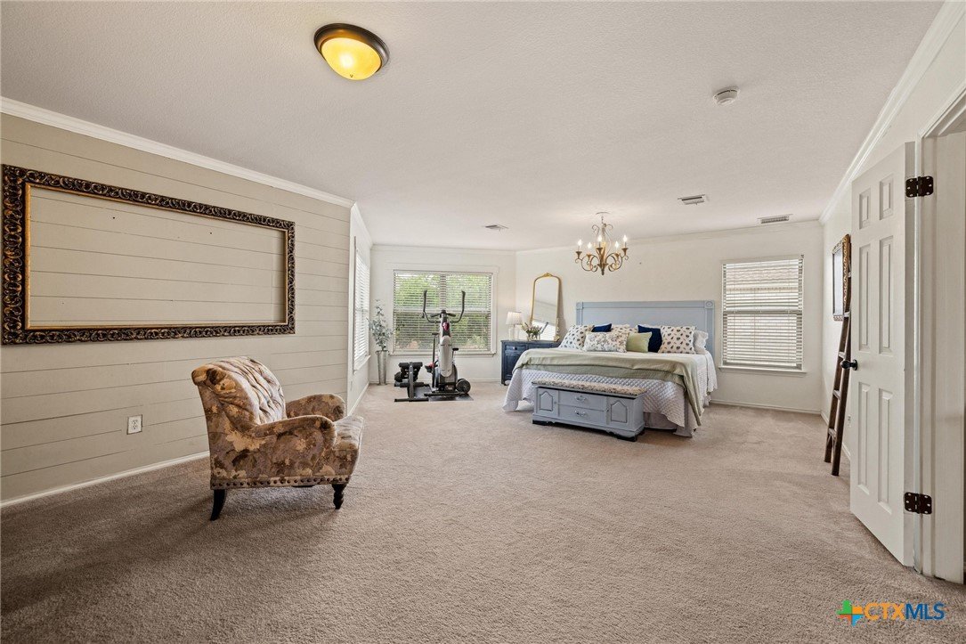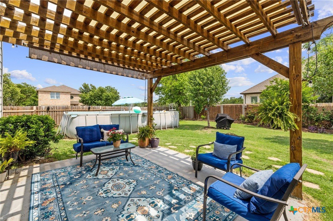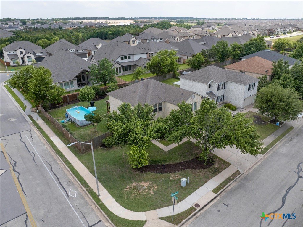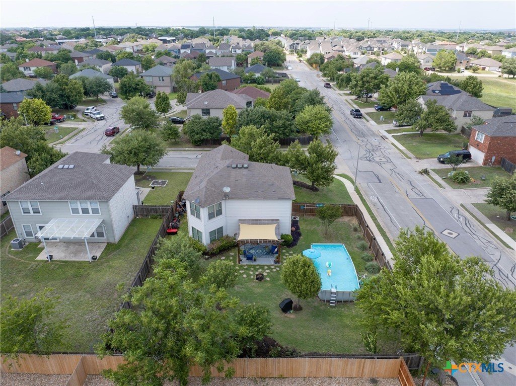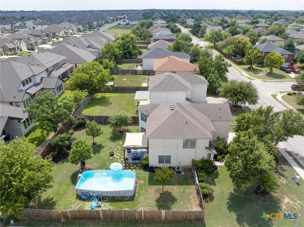PRICE IMPROVEMENT! Located at 1800 Grassland DR, Leander TX 78641 in the heart of Texas, this single-family residence presents an attractive property in great condition. The kitchen is designed to be a central gathering space, showcasing shaker cabinets complemented by crown molding and a tasteful backsplash. A large kitchen island offers ample space for meal preparation and casual dining. The primary bathroom features the convenience of a double vanity, providing personalized space. The bedroom offers a feature wood wall, enhanced with crown molding, extra seating area, creating a refined and inviting atmosphere. The living room features a wood wall, elegant crown molding and beautiful double doors that lead to your outdoor oasis. This two-story home boasts an aboveground private pool and a fenced backyard, allowing for relaxation, entertainment and recreation. The property includes an outdoor living space with a pergola, perfect for enjoying the Texas weather, as well as a patio and wonderful gardens making it an ideal space for entertaining. It also includes two garage spaces. This residence is situated in a desirable residential area and features an open floor plan. This Leander residence offers a harmonious blend of comfort and style.