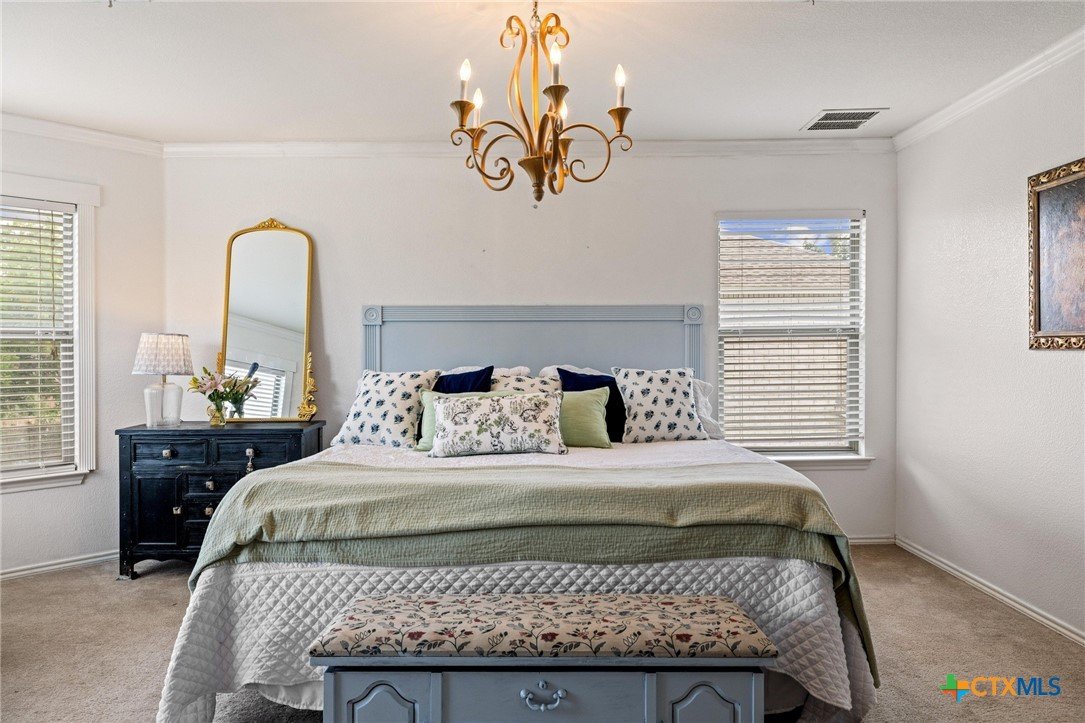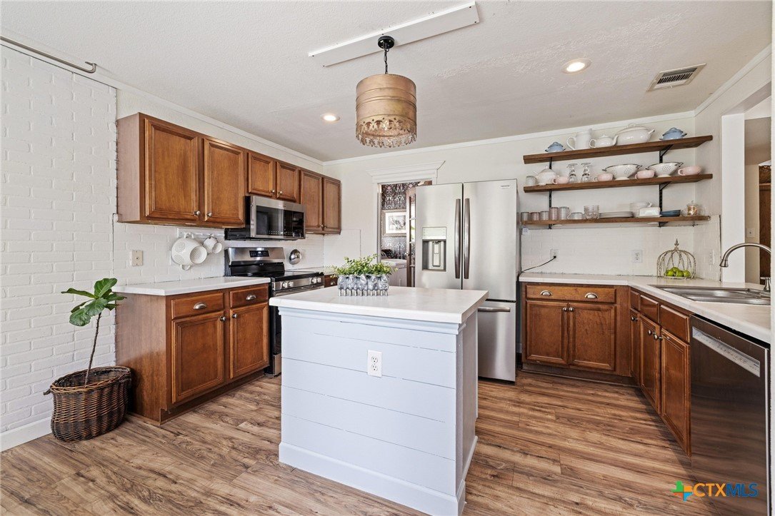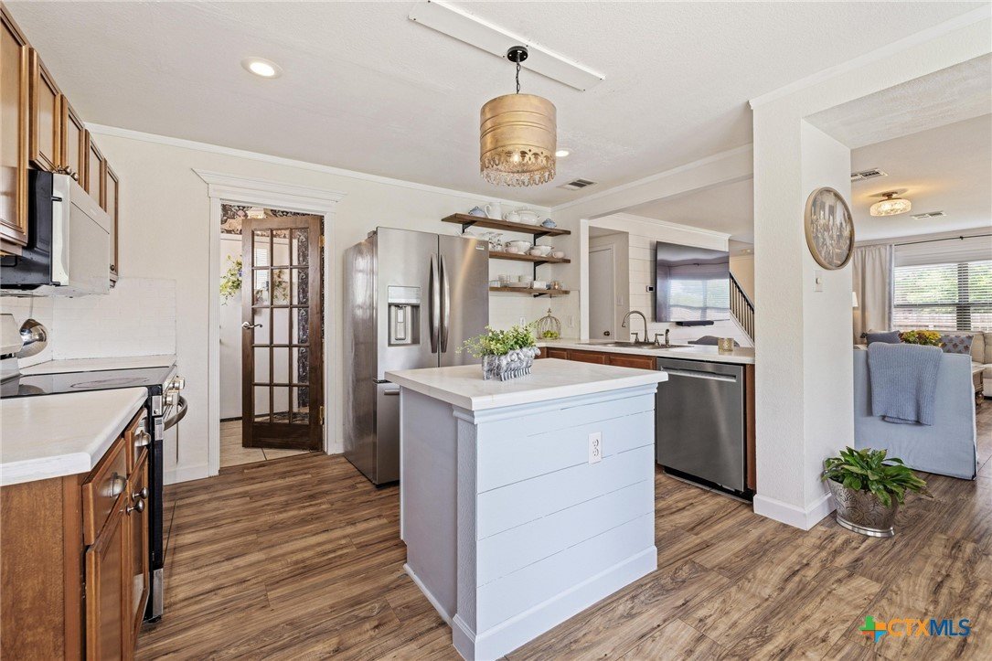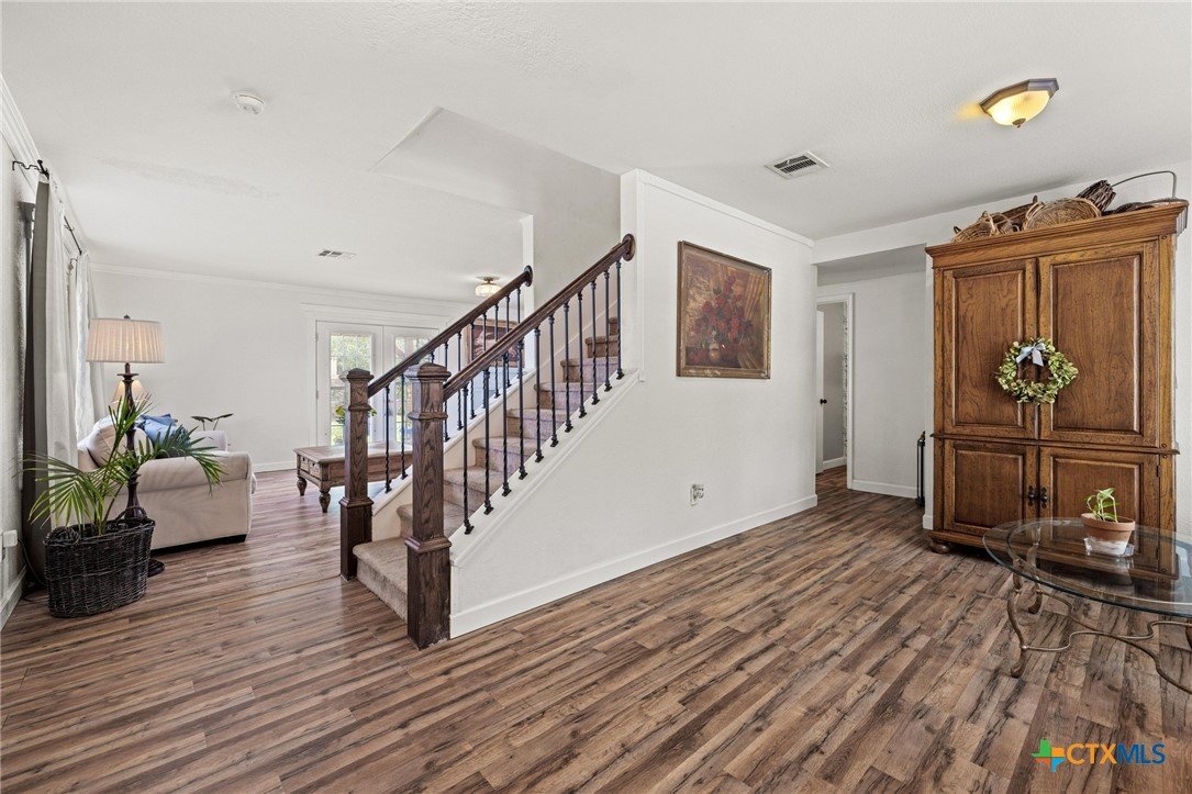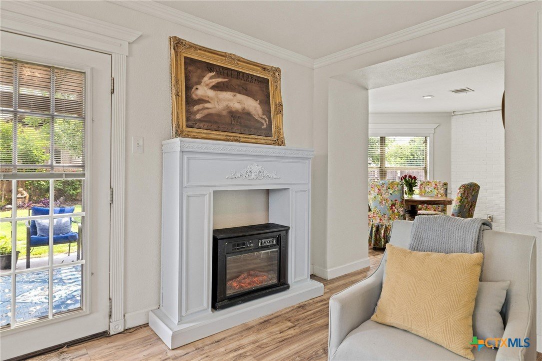 PRICE IMPROVEMENT! Located at 1800 Grassland DR, Leander TX 78641 in the heart of Texas, this single-family residence presents an attractive property in great condition. The kitchen is designed to be a central gathering space, showcasing shaker cabinets complemented by crown molding and a tasteful backsplash. A large kitchen island offers ample space for meal preparation and casual dining. The primary bathroom features the convenience of a double vanity, providing personalized space. The bedroom offers a feature wood wall, enhanced with crown molding, extra seating area, creating a refined and inviting atmosphere. The living room features a wood wall, elegant crown molding and beautiful double doors that lead to your outdoor oasis. This two-story home boasts an aboveground private pool and a fenced backyard, allowing for relaxation, entertainment and recreation. The property includes an outdoor living space with a pergola, perfect for enjoying the Texas weather, as well as a patio and wonderful gardens making it an ideal space for entertaining. It also includes two garage spaces. This residence is situated in a desirable residential area and features an open floor plan. This Leander residence offers a harmonious blend of comfort and style.