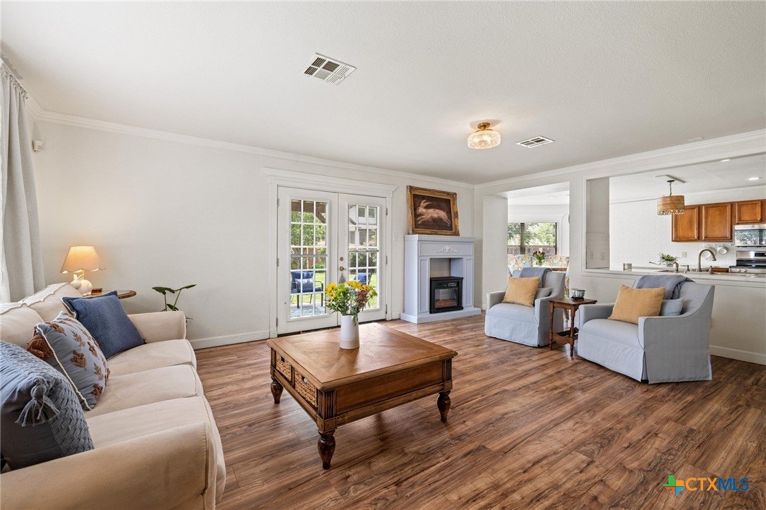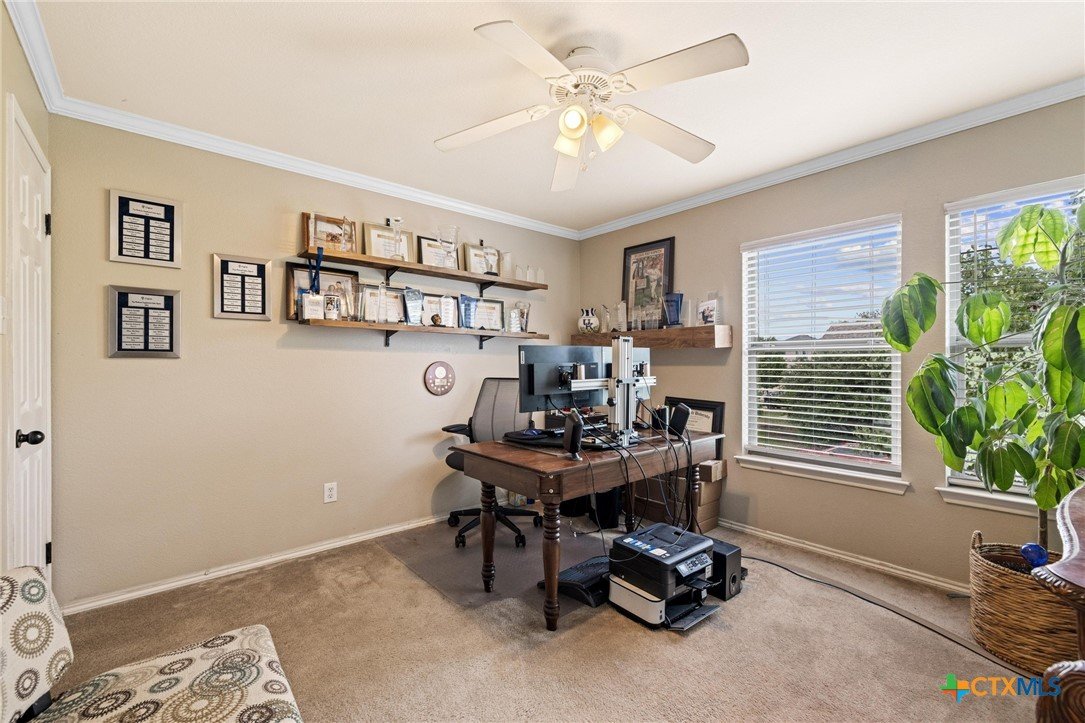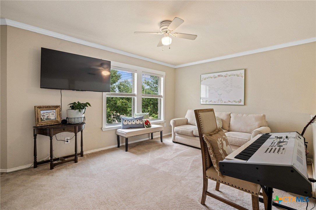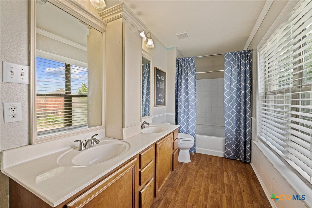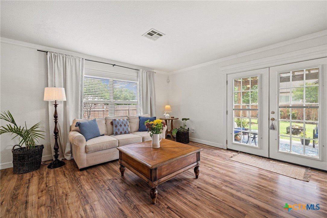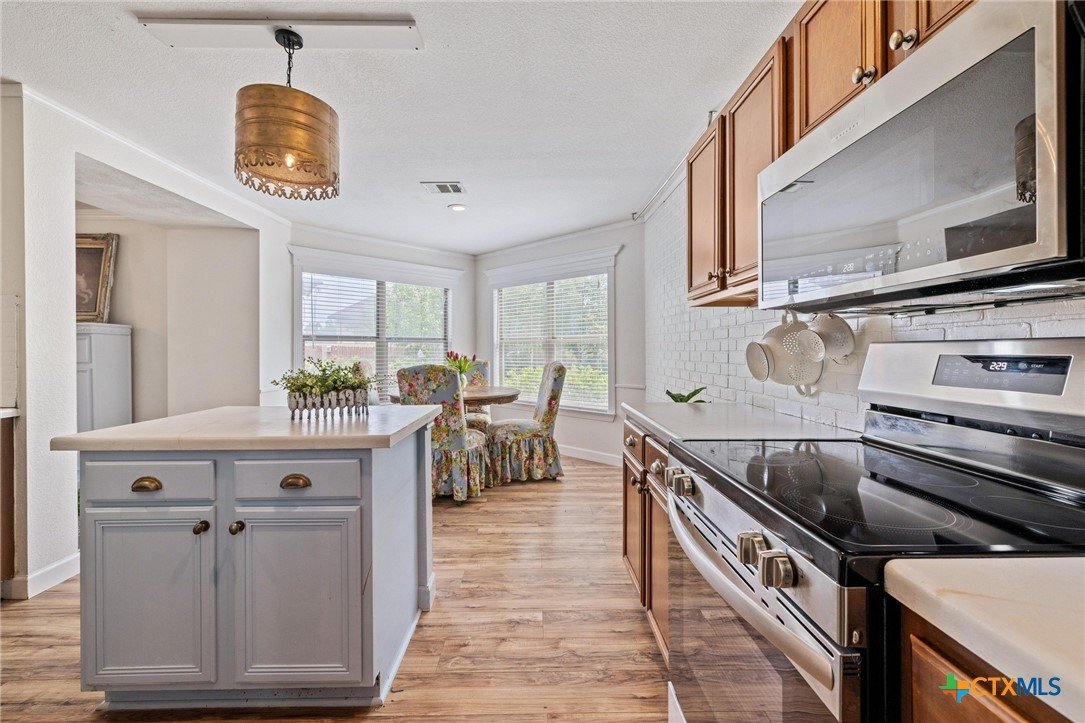 PRICE IMPROVEMENT! Located at 1800 Grassland DR, Leander TX 78641 in the heart of Texas, this single-family residence presents an attractive property in great condition. The kitchen is designed to be a central gathering space, showcasing shaker cabinets complemented by crown molding and a tasteful backsplash. A large kitchen island offers ample space for meal preparation and casual dining. The primary bathroom features the convenience of a double vanity, providing personalized space. The bedroom offers a feature wood wall, enhanced with crown molding, extra seating area, creating a refined and inviting atmosphere. The living room features a wood wall, elegant crown molding and beautiful double doors that lead to your outdoor oasis. This two-story home boasts an aboveground private pool and a fenced backyard, allowing for relaxation, entertainment and recreation. The property includes an outdoor living space with a pergola, perfect for enjoying the Texas weather, as well as a patio and wonderful gardens making it an ideal space for entertaining. It also includes two garage spaces. This residence is situated in a desirable residential area and features an open floor plan. This Leander residence offers a harmonious blend of comfort and style.