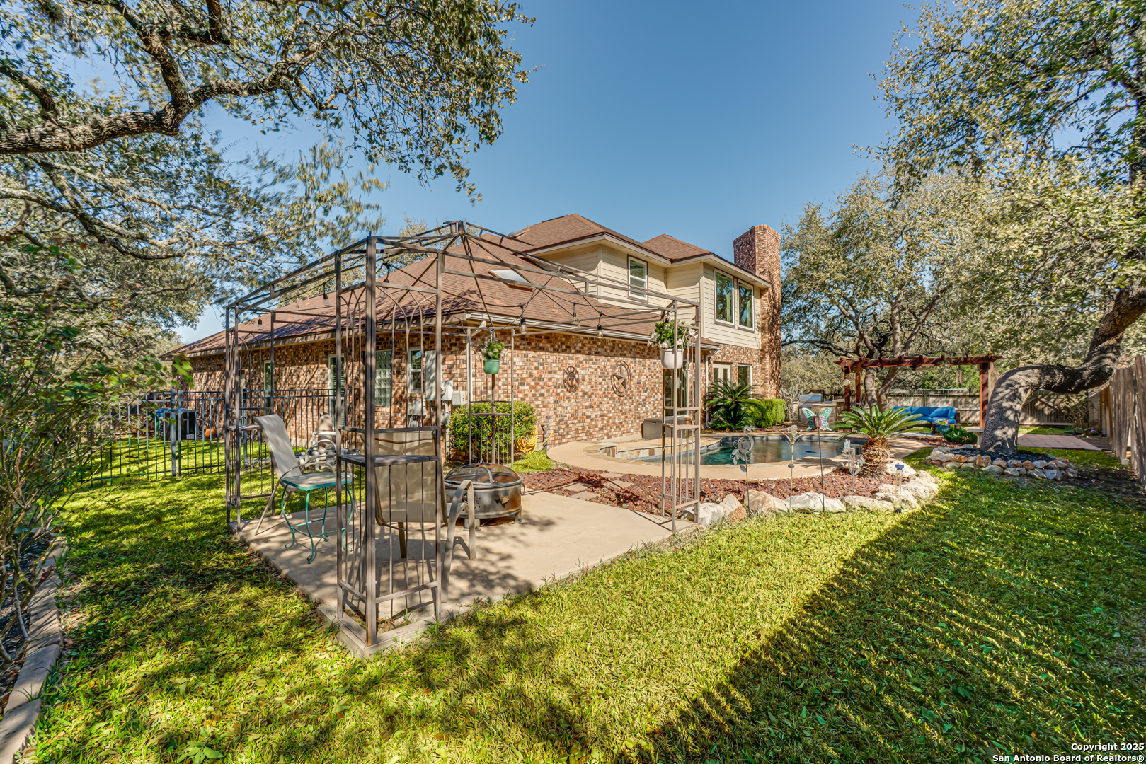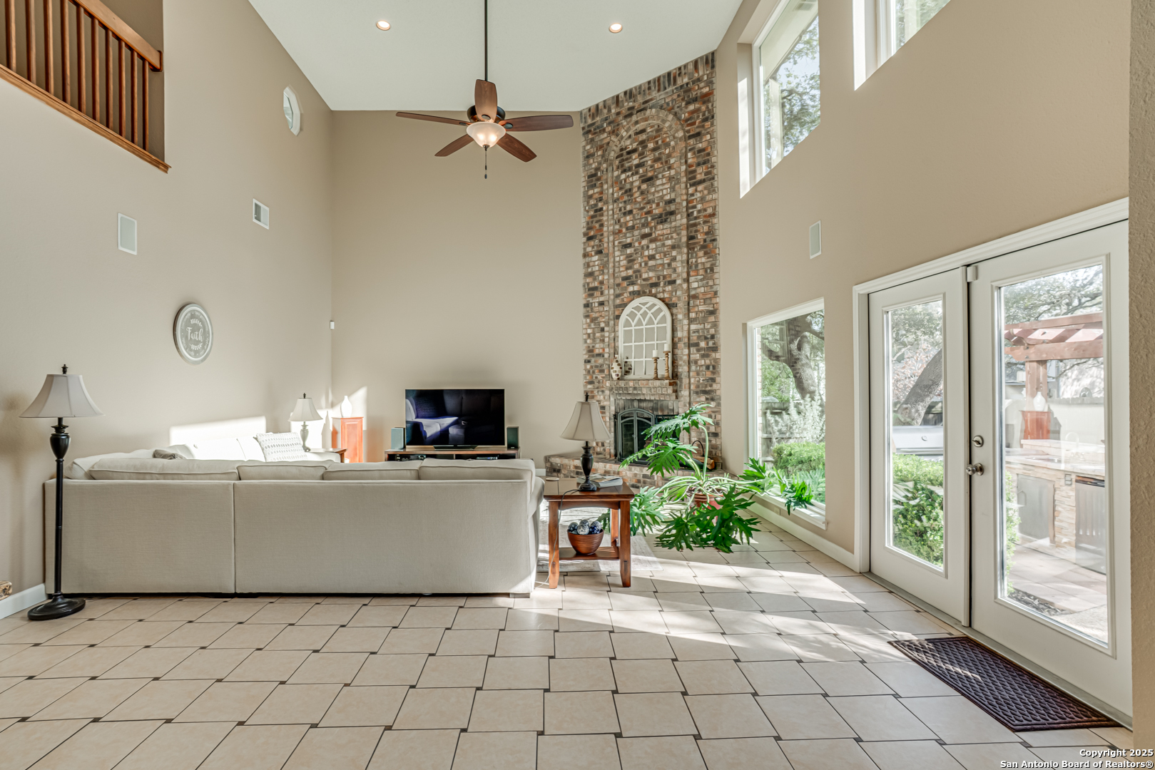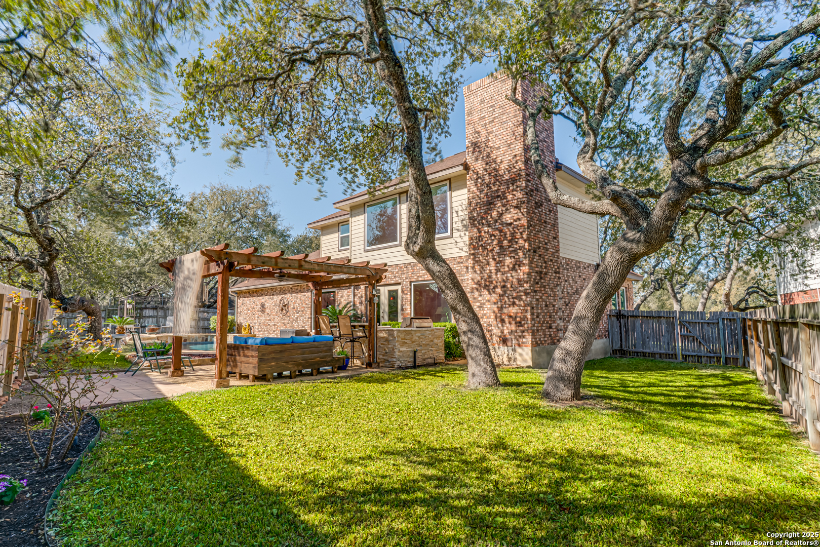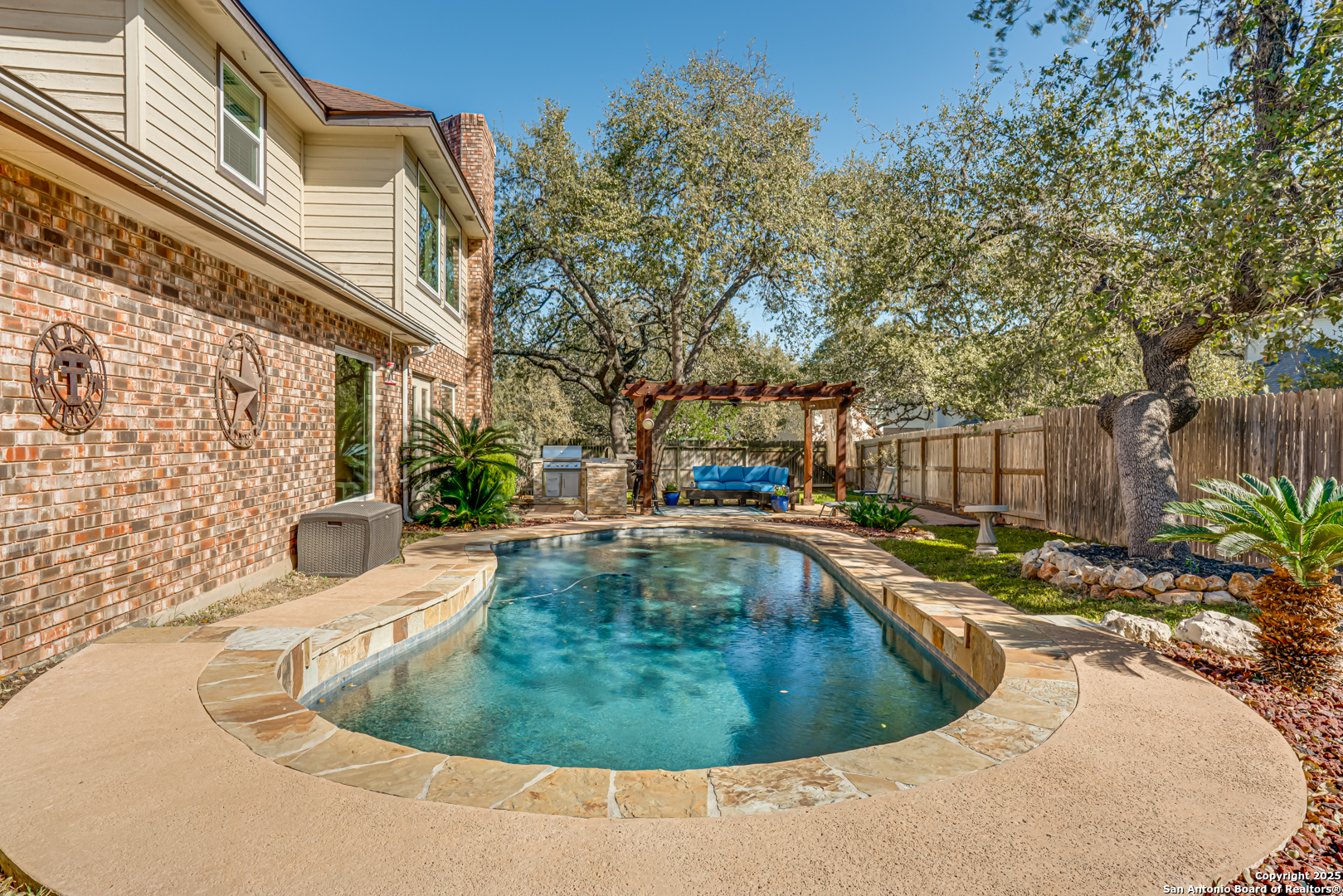 Step inside and say hello to this beautiful home, perfectly situated in the sought-after Stone Oak area-conveniently located on the hospital grid in a quiet, low-traffic neighborhood. With easy access to churches, Reagan High School, and major freeways, you'll enjoy the benefits of Stone Oak living without being too deep into the area. Sitting atop a spacious quarter-acre lot, this property provides both comfort and functionality with thoughtful updates and exceptional features. The home has been meticulously maintained, with a new roof installed in 2019 and energy-efficient windows replaced in 2023 by Southwest Exteriors, offering a transferable lifetime warranty. Inside, the spacious primary suite features elegant tray ceilings, a garden tub, and a walk-in shower designed for easy access. A secondary bedroom downstairs provides flexibility, while the additional bedrooms upstairs share a Jack and Jill bathroom. The heart of the home is the open-concept kitchen, which seamlessly flows into the family room, where soaring 18-foot ceilings and an abundance of natural light create a warm and inviting atmosphere, perfect for entertaining. Step outside to your private backyard retreat, where a saltwater pool designed by Gary Pools offers the perfect place to relax, shaded in the afternoon and equipped for a volleyball net for added fun. An outdoor kitchen with a sink and running water makes outdoor gatherings effortless. Additional features include a gated side yard or dog run, a water softener, and an in-ground sprinkler system. This exceptional home combines comfort, style, and convenience in one of Stone Oak's most sought-after locations. Schedule your showing today and experience all it has to offer!