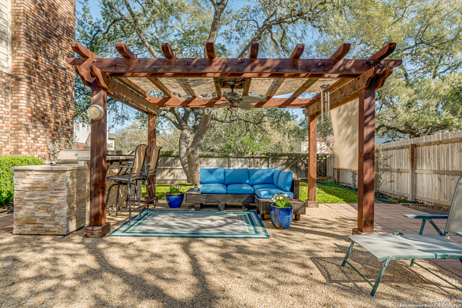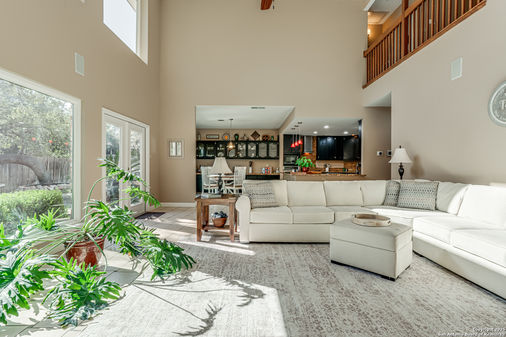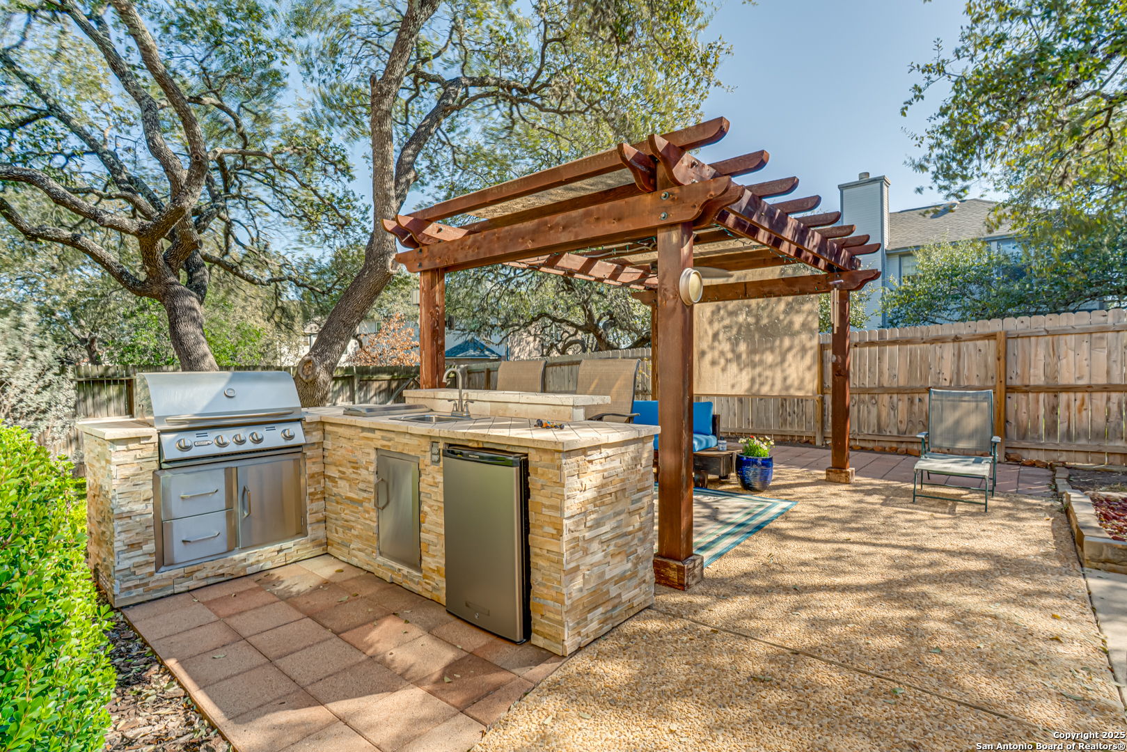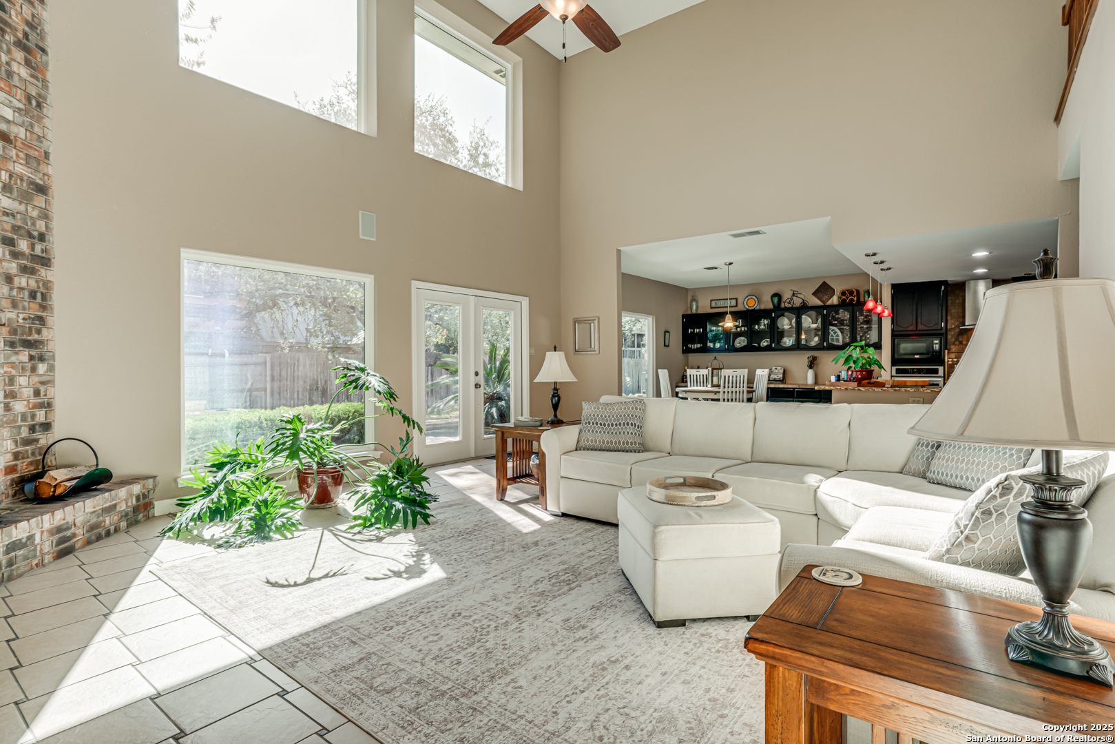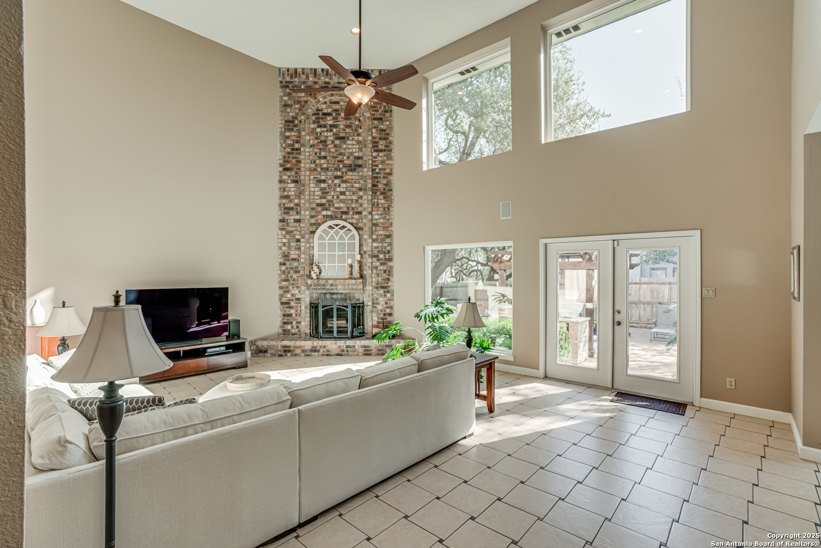 Step inside and say hello to this beautiful home, perfectly situated in the sought-after Stone Oak area-conveniently located on the hospital grid in a quiet, low-traffic neighborhood. With easy access to churches, Reagan High School, and major freeways, you'll enjoy the benefits of Stone Oak living without being too deep into the area. Sitting atop a spacious quarter-acre lot, this property provides both comfort and functionality with thoughtful updates and exceptional features. The home has been meticulously maintained, with a new roof installed in 2019 and energy-efficient windows replaced in 2023 by Southwest Exteriors, offering a transferable lifetime warranty. Inside, the spacious primary suite features elegant tray ceilings, a garden tub, and a walk-in shower designed for easy access. A secondary bedroom downstairs provides flexibility, while the additional bedrooms upstairs share a Jack and Jill bathroom. The heart of the home is the open-concept kitchen, which seamlessly flows into the family room, where soaring 18-foot ceilings and an abundance of natural light create a warm and inviting atmosphere, perfect for entertaining. Step outside to your private backyard retreat, where a saltwater pool designed by Gary Pools offers the perfect place to relax, shaded in the afternoon and equipped for a volleyball net for added fun. An outdoor kitchen with a sink and running water makes outdoor gatherings effortless. Additional features include a gated side yard or dog run, a water softener, and an in-ground sprinkler system. This exceptional home combines comfort, style, and convenience in one of Stone Oak's most sought-after locations. Schedule your showing today and experience all it has to offer!