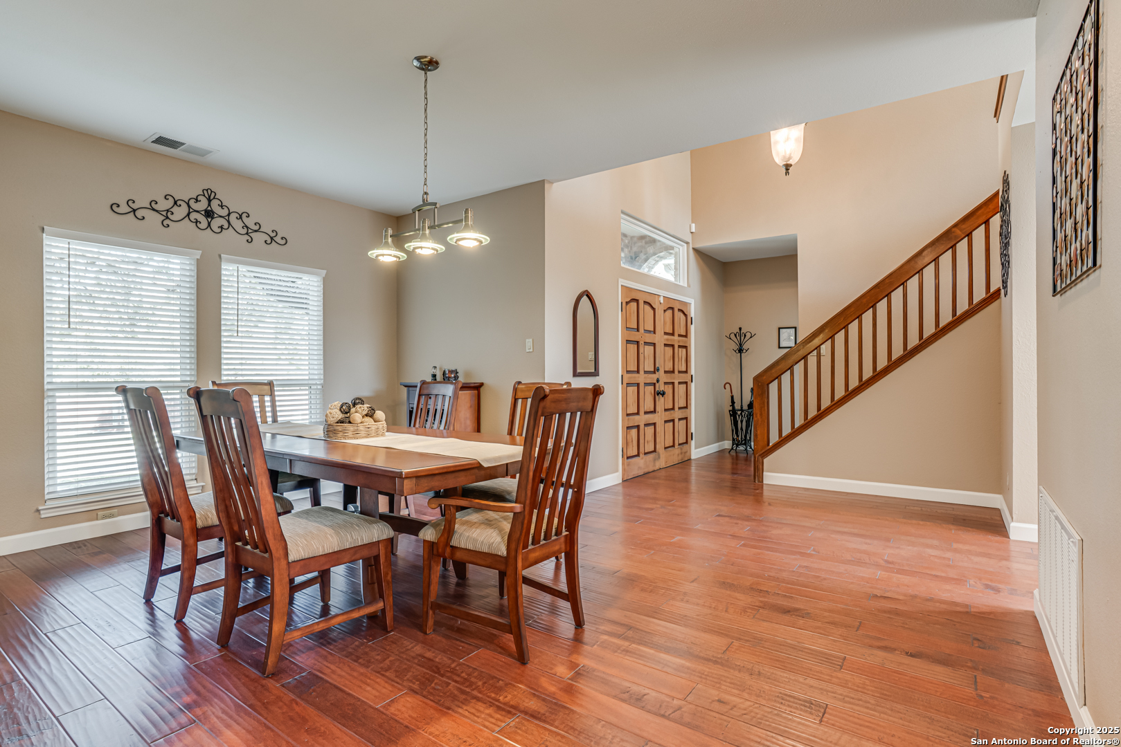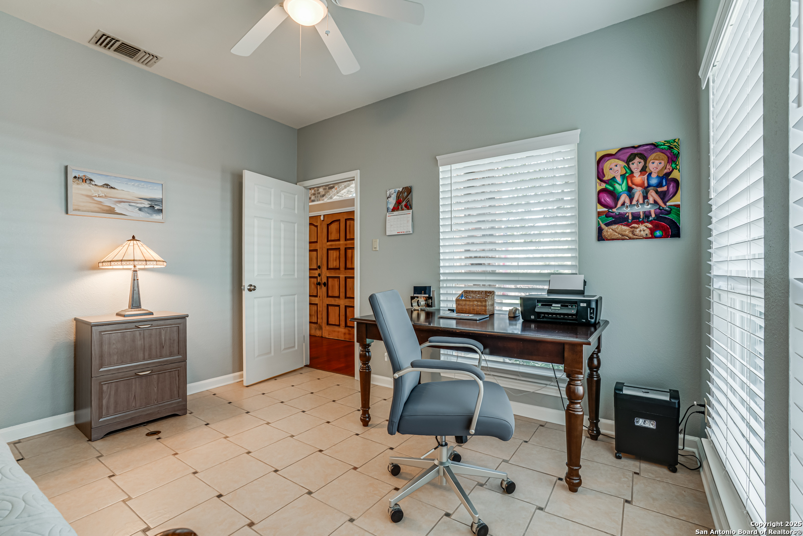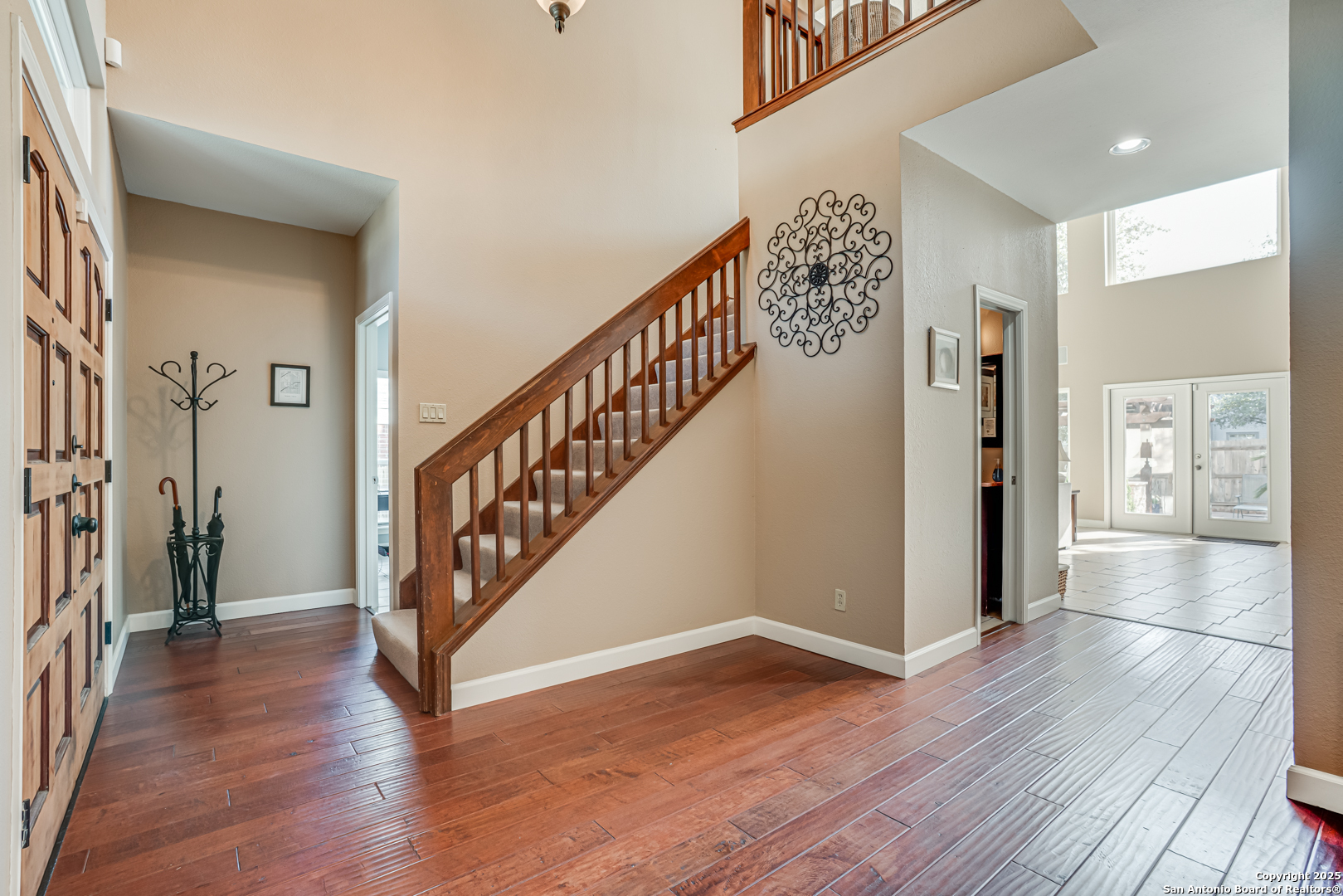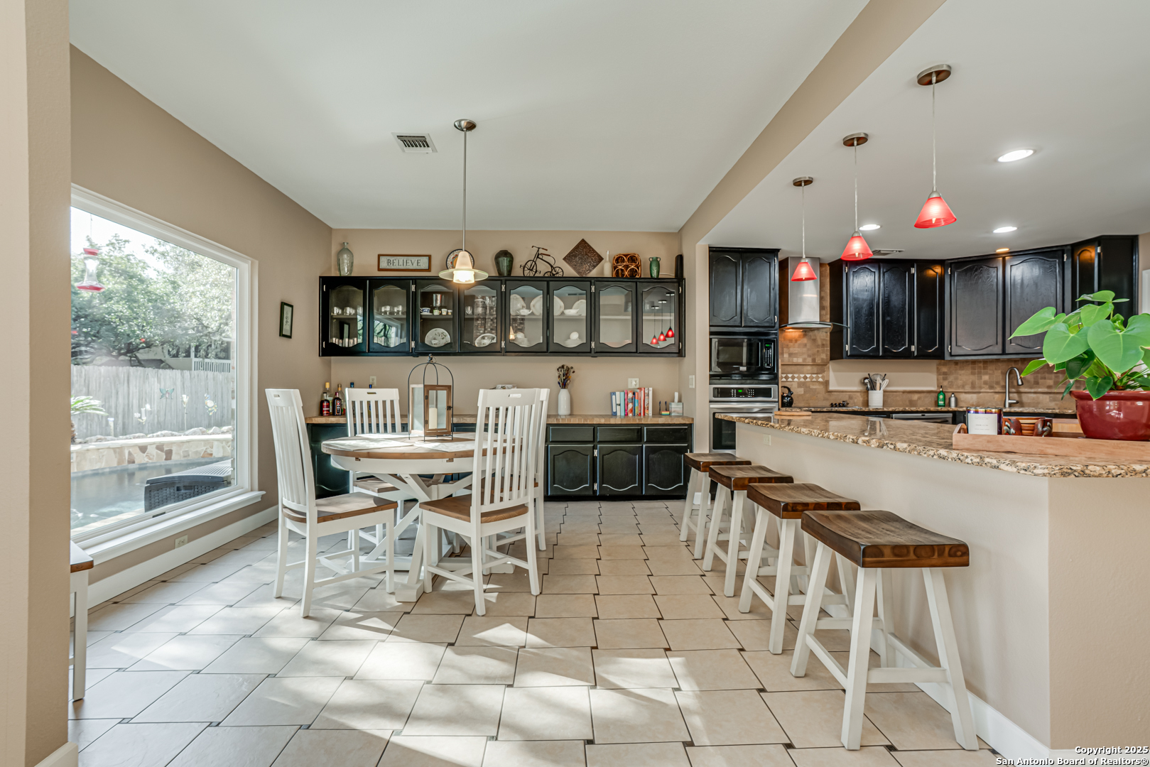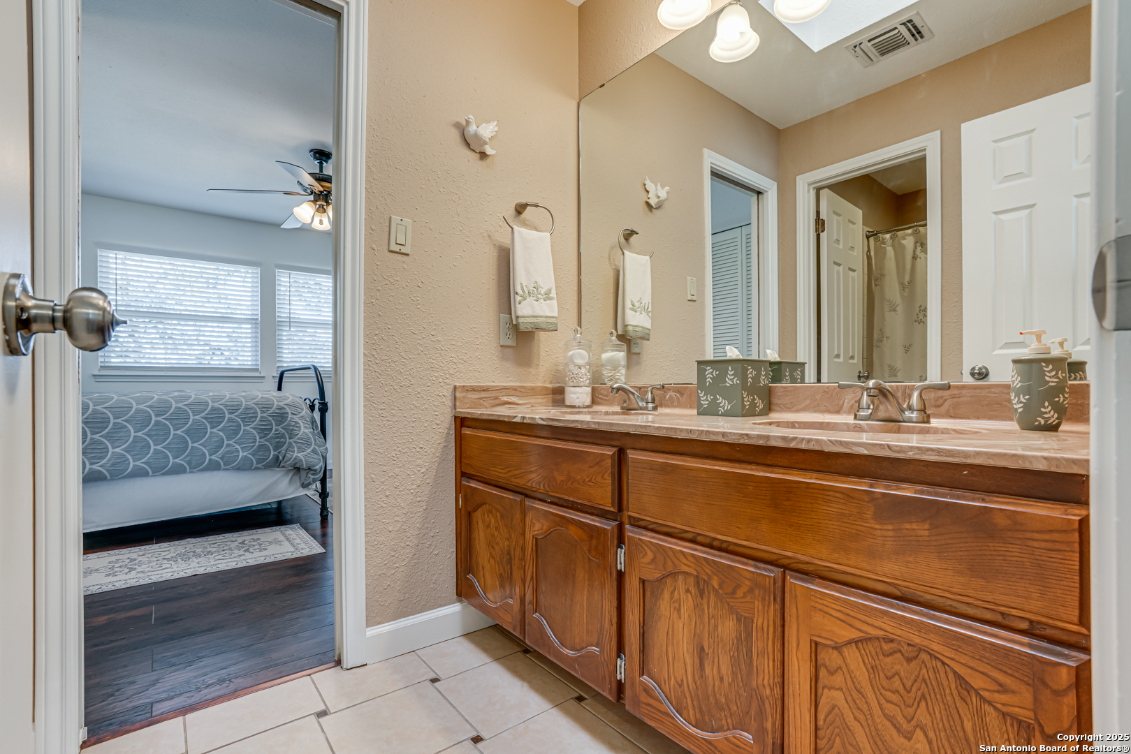 Step inside and say hello to this beautiful home, perfectly situated in the sought-after Stone Oak area-conveniently located on the hospital grid in a quiet, low-traffic neighborhood. With easy access to churches, Reagan High School, and major freeways, you'll enjoy the benefits of Stone Oak living without being too deep into the area. Sitting atop a spacious quarter-acre lot, this property provides both comfort and functionality with thoughtful updates and exceptional features. The home has been meticulously maintained, with a new roof installed in 2019 and energy-efficient windows replaced in 2023 by Southwest Exteriors, offering a transferable lifetime warranty. Inside, the spacious primary suite features elegant tray ceilings, a garden tub, and a walk-in shower designed for easy access. A secondary bedroom downstairs provides flexibility, while the additional bedrooms upstairs share a Jack and Jill bathroom. The heart of the home is the open-concept kitchen, which seamlessly flows into the family room, where soaring 18-foot ceilings and an abundance of natural light create a warm and inviting atmosphere, perfect for entertaining. Step outside to your private backyard retreat, where a saltwater pool designed by Gary Pools offers the perfect place to relax, shaded in the afternoon and equipped for a volleyball net for added fun. An outdoor kitchen with a sink and running water makes outdoor gatherings effortless. Additional features include a gated side yard or dog run, a water softener, and an in-ground sprinkler system. This exceptional home combines comfort, style, and convenience in one of Stone Oak's most sought-after locations. Schedule your showing today and experience all it has to offer!