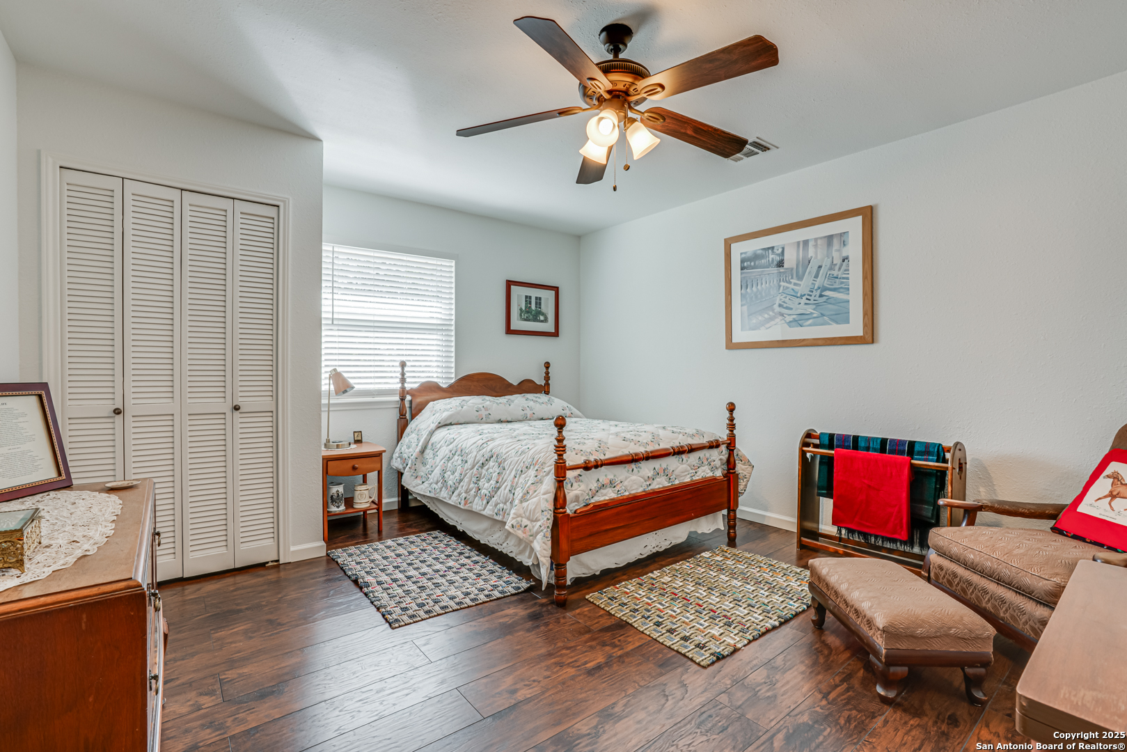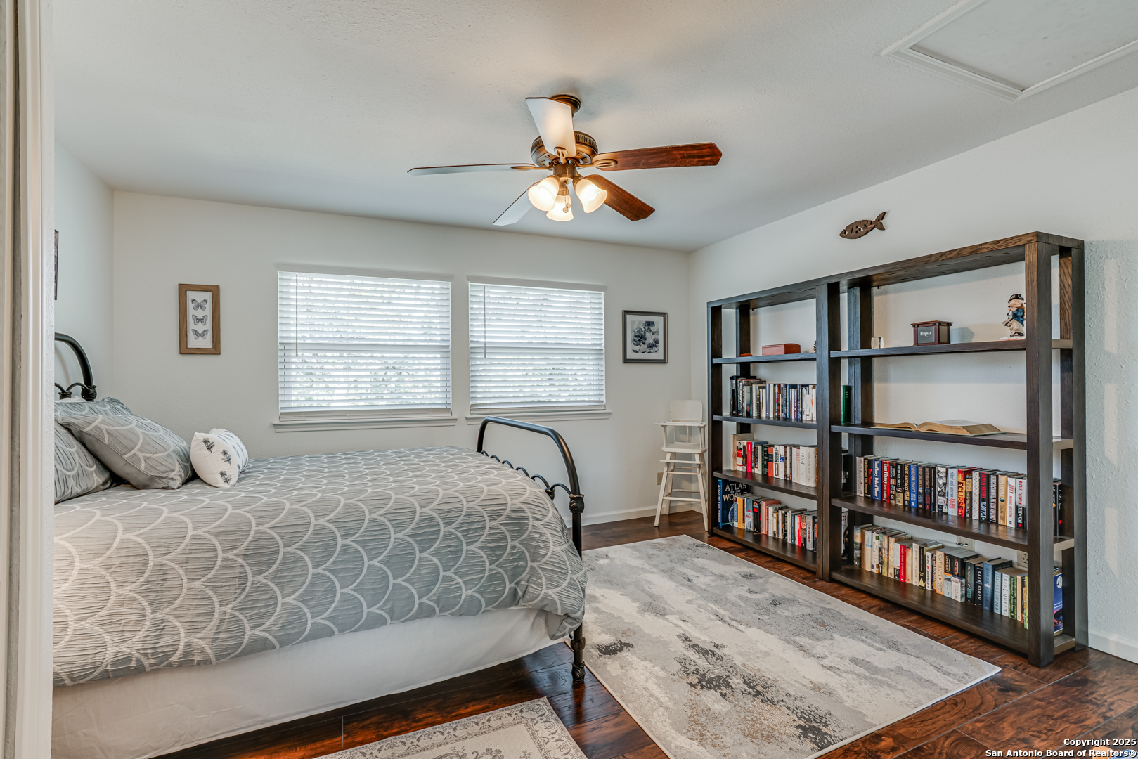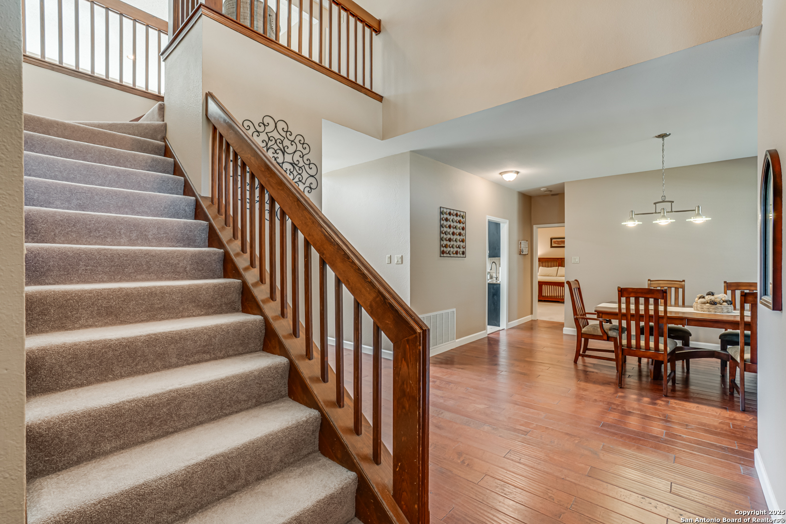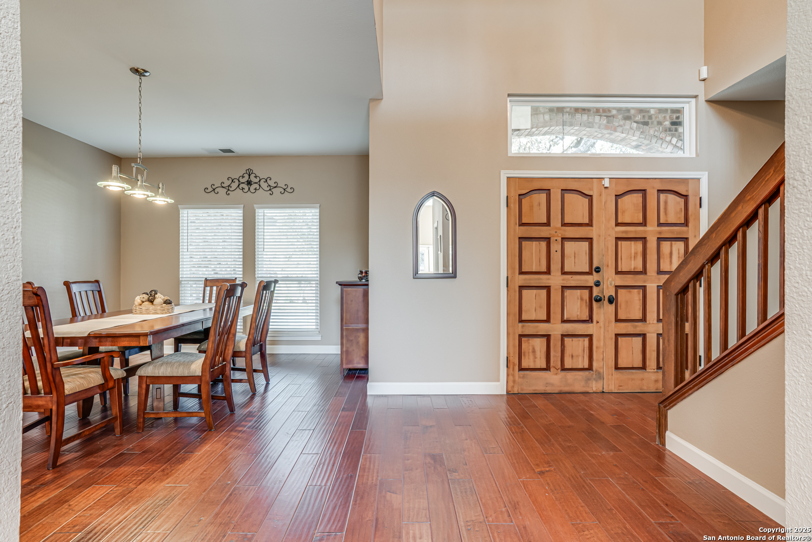 Step inside and say hello to this beautiful home, perfectly situated in the sought-after Stone Oak area-conveniently located on the hospital grid in a quiet, low-traffic neighborhood. With easy access to churches, Reagan High School, and major freeways, you'll enjoy the benefits of Stone Oak living without being too deep into the area. Sitting atop a spacious quarter-acre lot, this property provides both comfort and functionality with thoughtful updates and exceptional features. The home has been meticulously maintained, with a new roof installed in 2019 and energy-efficient windows replaced in 2023 by Southwest Exteriors, offering a transferable lifetime warranty. Inside, the spacious primary suite features elegant tray ceilings, a garden tub, and a walk-in shower designed for easy access. A secondary bedroom downstairs provides flexibility, while the additional bedrooms upstairs share a Jack and Jill bathroom. The heart of the home is the open-concept kitchen, which seamlessly flows into the family room, where soaring 18-foot ceilings and an abundance of natural light create a warm and inviting atmosphere, perfect for entertaining. Step outside to your private backyard retreat, where a saltwater pool designed by Gary Pools offers the perfect place to relax, shaded in the afternoon and equipped for a volleyball net for added fun. An outdoor kitchen with a sink and running water makes outdoor gatherings effortless. Additional features include a gated side yard or dog run, a water softener, and an in-ground sprinkler system. This exceptional home combines comfort, style, and convenience in one of Stone Oak's most sought-after locations. Schedule your showing today and experience all it has to offer!