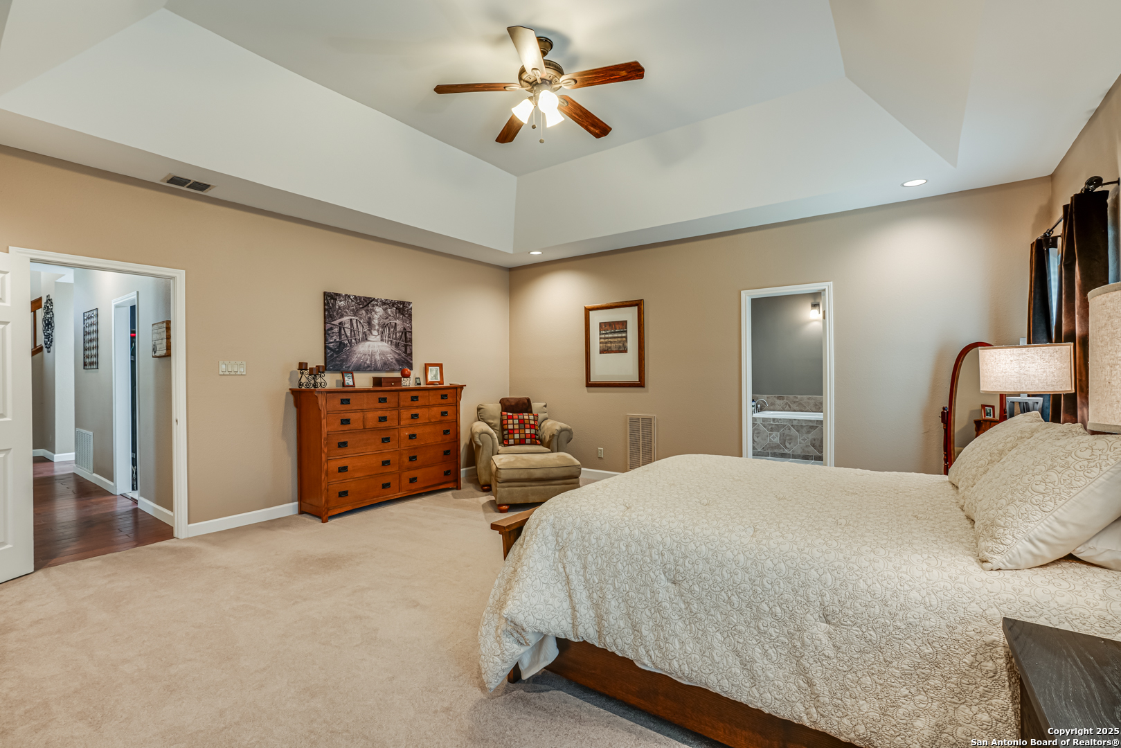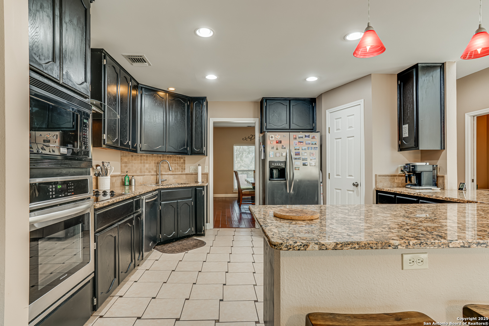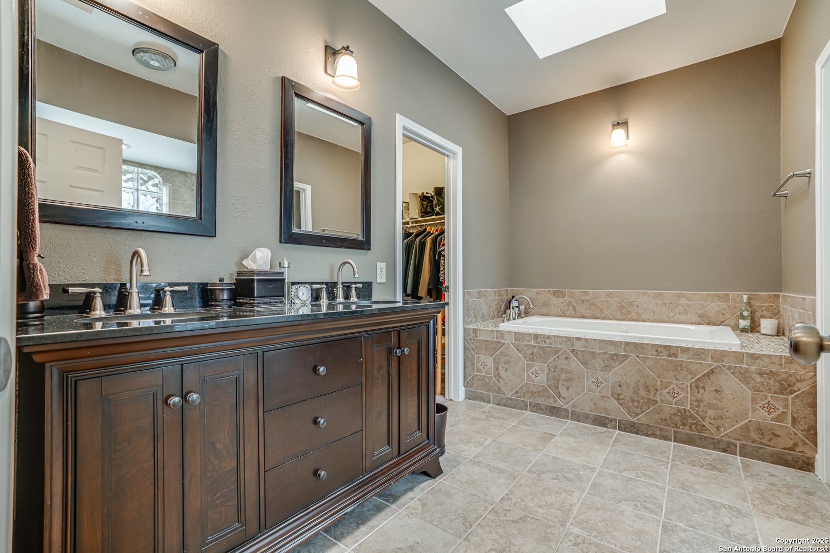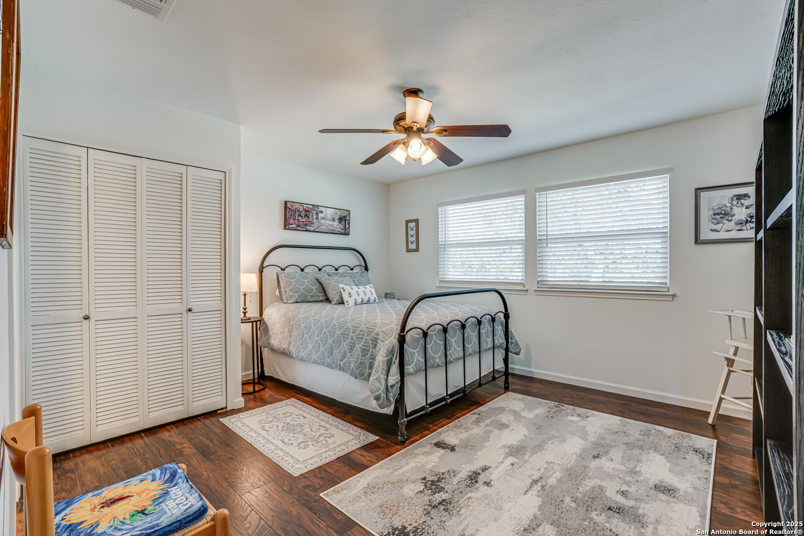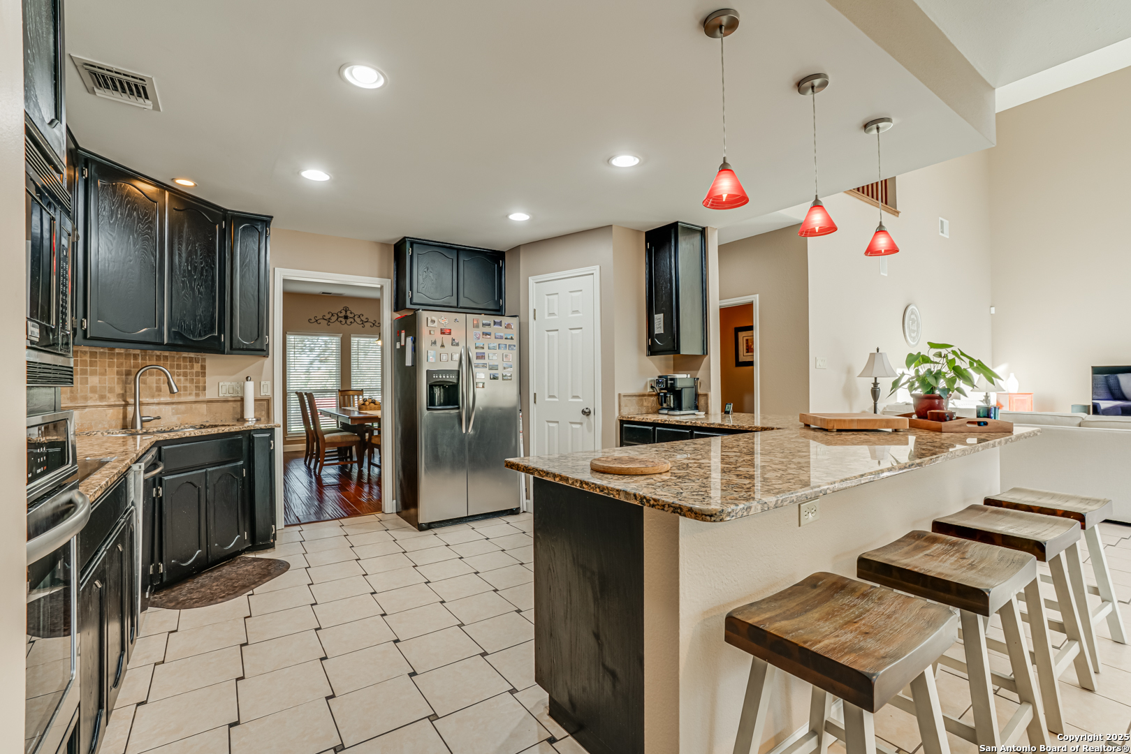 Step inside and say hello to this beautiful home, perfectly situated in the sought-after Stone Oak area-conveniently located on the hospital grid in a quiet, low-traffic neighborhood. With easy access to churches, Reagan High School, and major freeways, you'll enjoy the benefits of Stone Oak living without being too deep into the area. Sitting atop a spacious quarter-acre lot, this property provides both comfort and functionality with thoughtful updates and exceptional features. The home has been meticulously maintained, with a new roof installed in 2019 and energy-efficient windows replaced in 2023 by Southwest Exteriors, offering a transferable lifetime warranty. Inside, the spacious primary suite features elegant tray ceilings, a garden tub, and a walk-in shower designed for easy access. A secondary bedroom downstairs provides flexibility, while the additional bedrooms upstairs share a Jack and Jill bathroom. The heart of the home is the open-concept kitchen, which seamlessly flows into the family room, where soaring 18-foot ceilings and an abundance of natural light create a warm and inviting atmosphere, perfect for entertaining. Step outside to your private backyard retreat, where a saltwater pool designed by Gary Pools offers the perfect place to relax, shaded in the afternoon and equipped for a volleyball net for added fun. An outdoor kitchen with a sink and running water makes outdoor gatherings effortless. Additional features include a gated side yard or dog run, a water softener, and an in-ground sprinkler system. This exceptional home combines comfort, style, and convenience in one of Stone Oak's most sought-after locations. Schedule your showing today and experience all it has to offer!