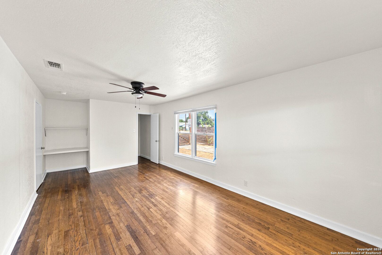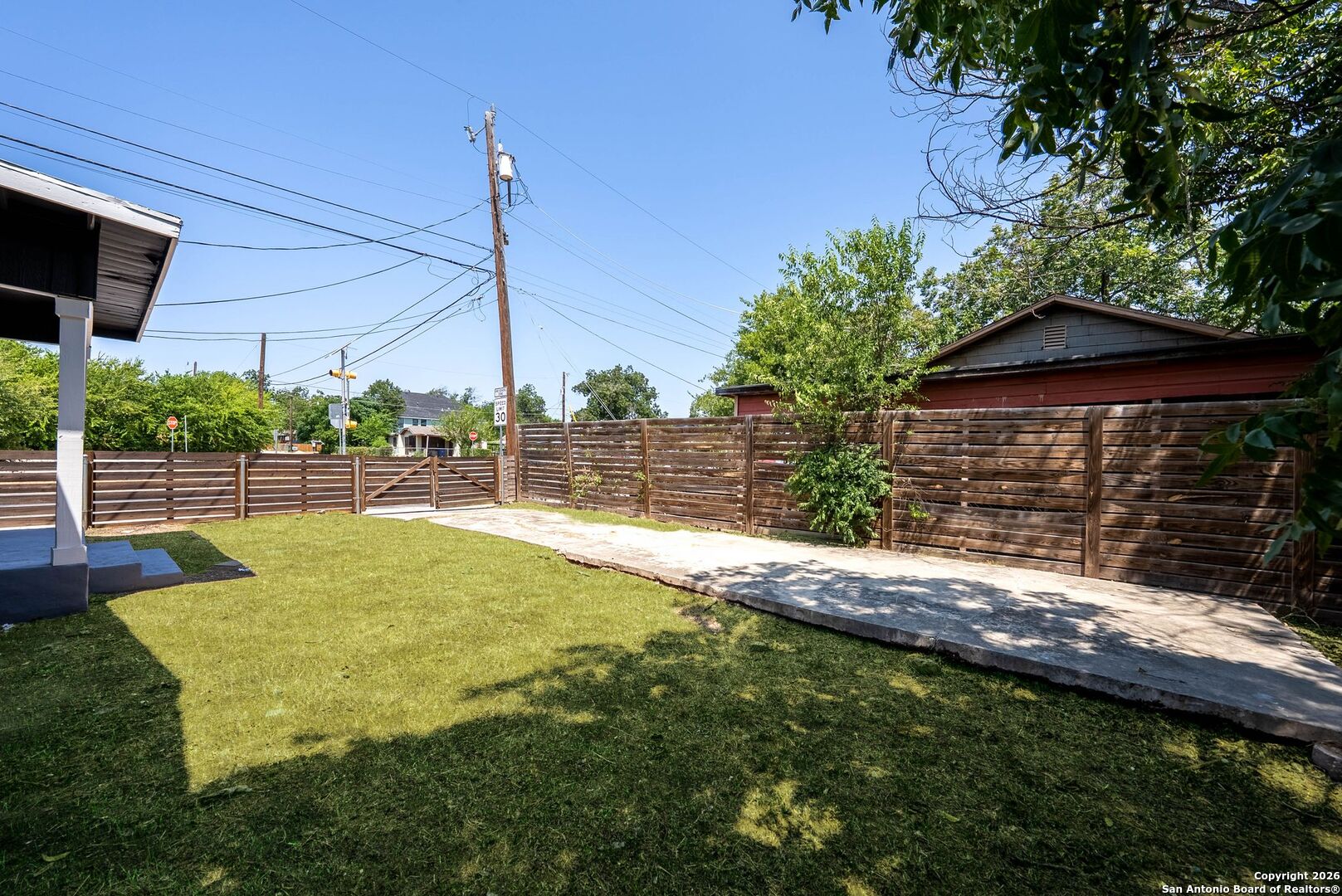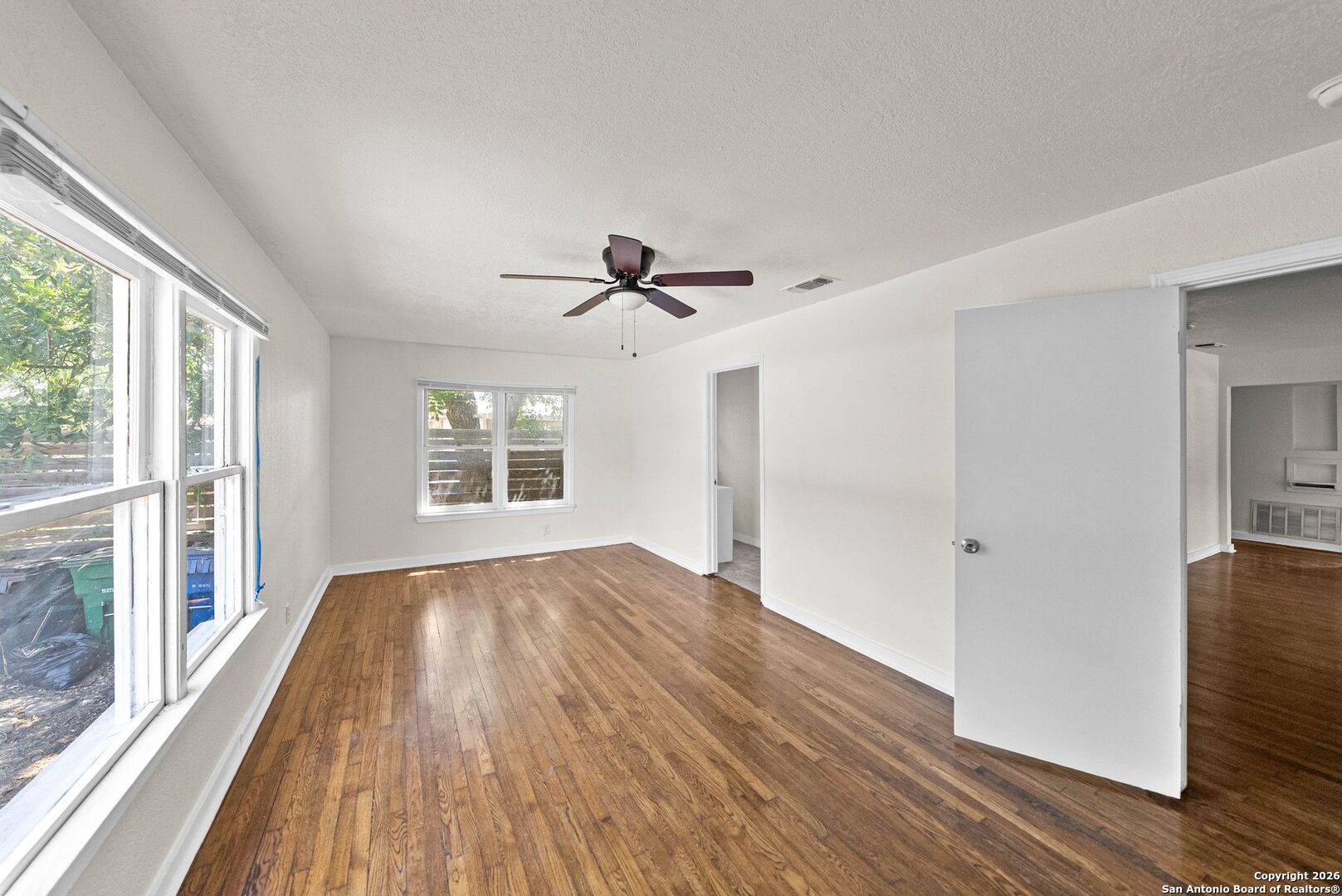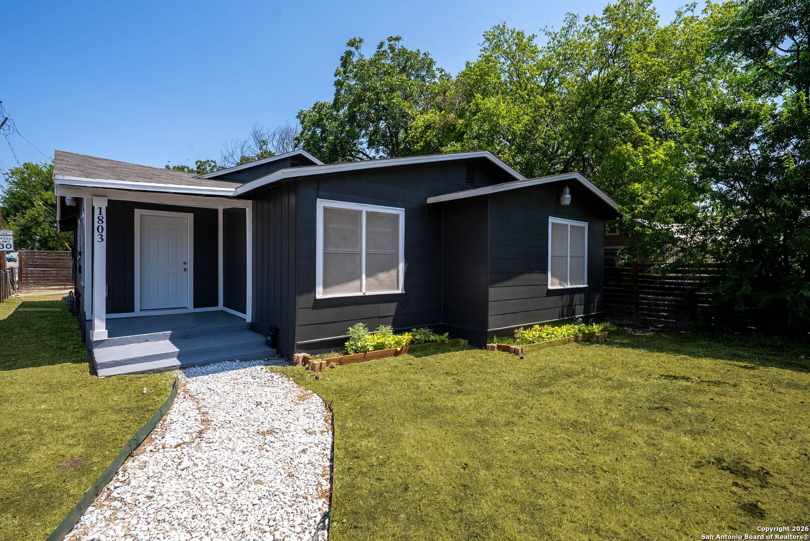 Fully renovated 4-bedroom, 2-bath home situated on a corner lot. Step into an open living and dining area featuring soothing neutral paint throughout and beautiful wood flooring. The living room showcases a tasteful accent wall, adding a modern touch. The kitchen offers granite countertops, a classic white subway tile backsplash, and stainless steel appliances. The primary suite includes a ceiling fan and a walk-in shower in the en-suite bath. Secondary bedrooms are generously sized, and both bathrooms have been updated. Major key improvements include updated electrical and plumbing, double-pane windows, and a new HVAC system installed in 2025. Enjoy a fully fenced backyard, ideal for entertaining and gatherings. Conveniently located near the Downtown River Walk, Alamodome, and other popular attractions, with easy access to major roadways.
