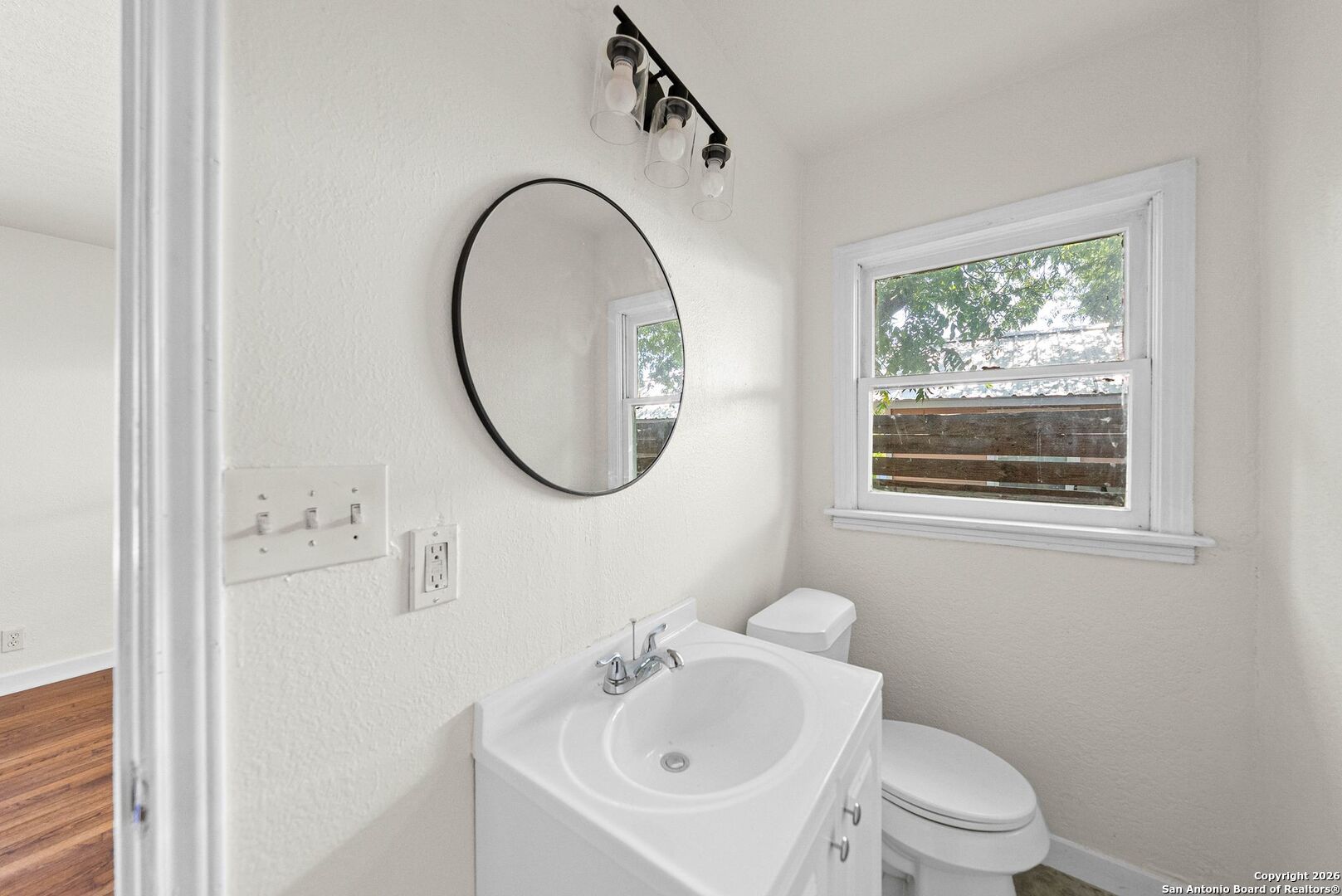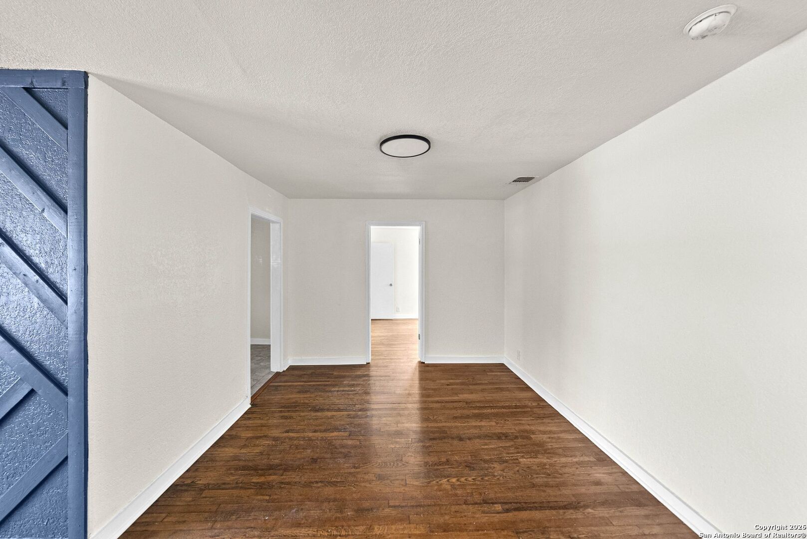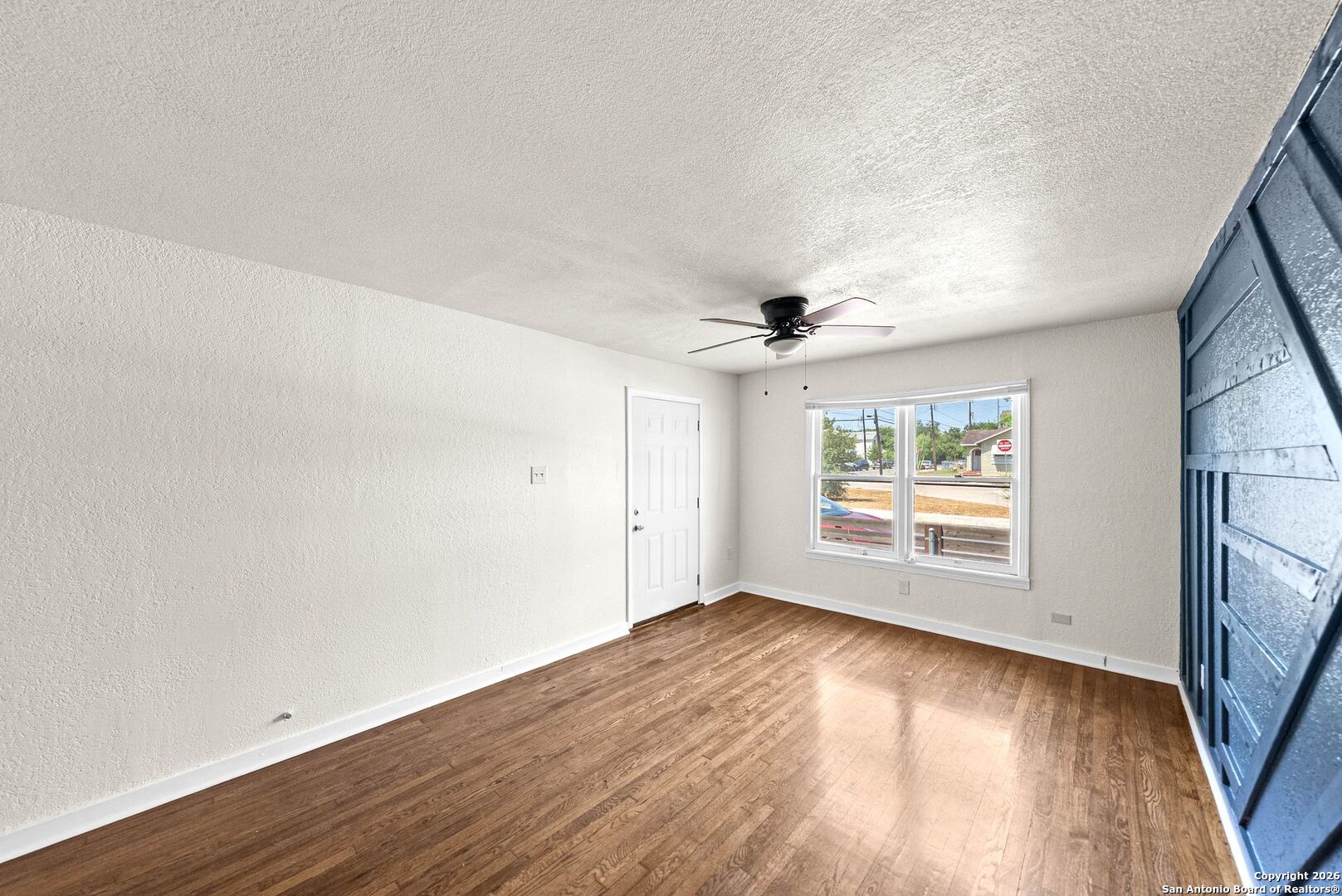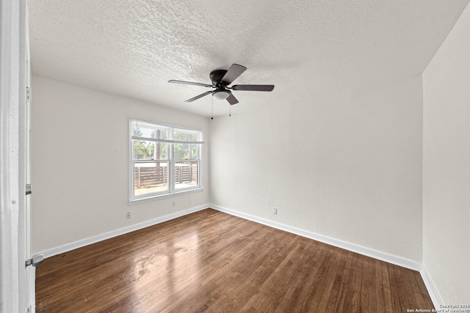 Fully renovated 4-bedroom, 2-bath home situated on a corner lot. Step into an open living and dining area featuring soothing neutral paint throughout and beautiful wood flooring. The living room showcases a tasteful accent wall, adding a modern touch. The kitchen offers granite countertops, a classic white subway tile backsplash, and stainless steel appliances. The primary suite includes a ceiling fan and a walk-in shower in the en-suite bath. Secondary bedrooms are generously sized, and both bathrooms have been updated. Major key improvements include updated electrical and plumbing, double-pane windows, and a new HVAC system installed in 2025. Enjoy a fully fenced backyard, ideal for entertaining and gatherings. Conveniently located near the Downtown River Walk, Alamodome, and other popular attractions, with easy access to major roadways.