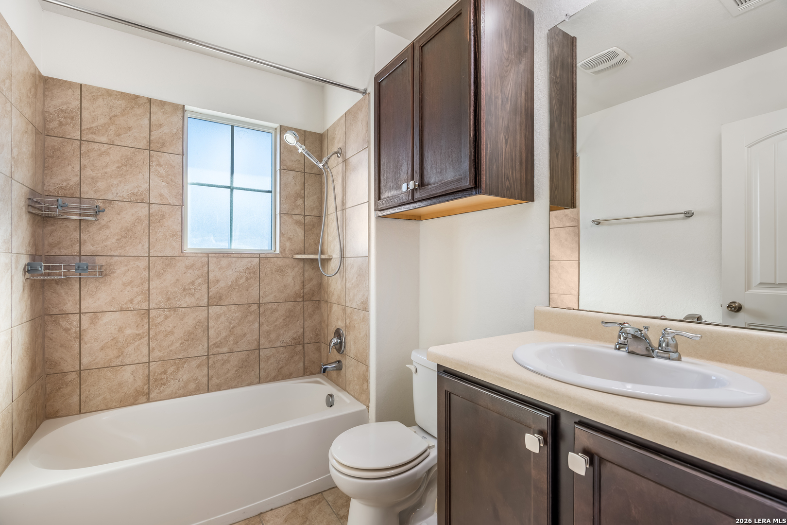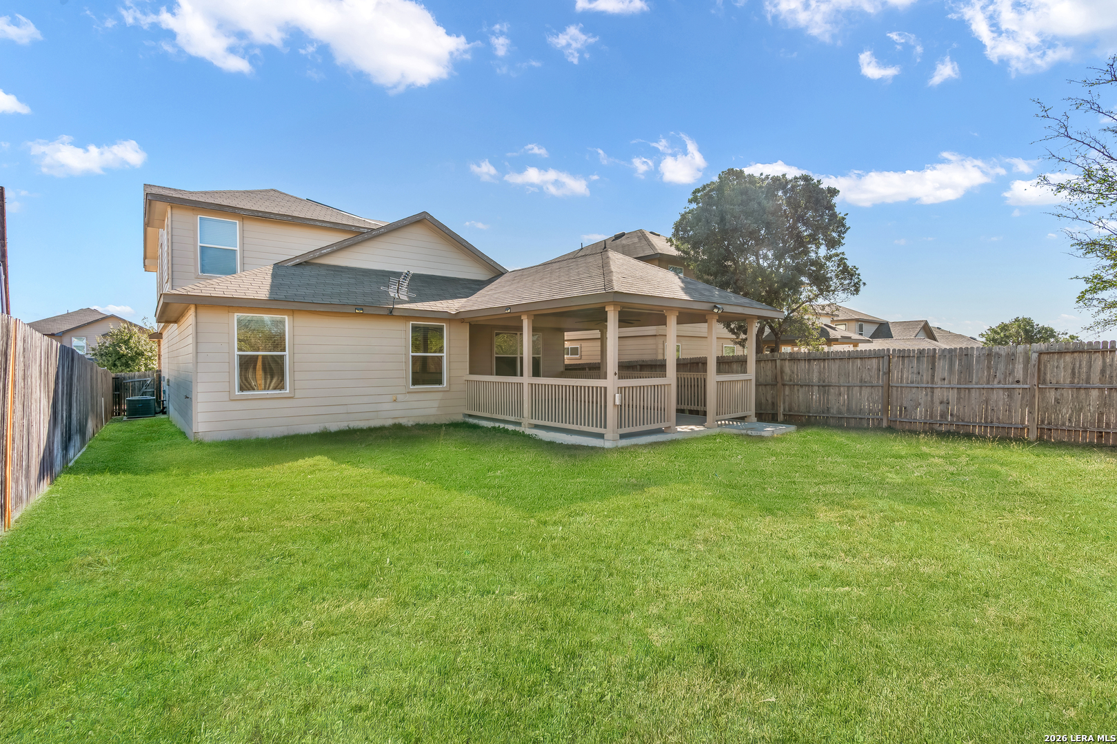 Spacious two-story home offering 4 bedrooms and 2.5 bathrooms, conveniently located near Lackland Air Force Base with easy access to major highways, shopping, and dining. The flexible floor plan features a generous living area, a functional kitchen with ample cabinet and counter space, and a dedicated dining area that works well for everyday living or entertaining. The primary suite includes a private bath and a walk-in closet, with additional bedrooms providing options for guests, home office, or hobby space. Enjoy a fully fenced backyard with room to relax, play, or host gatherings. A great opportunity to own a well-laid-out home in a sought-after San Antonio location. Upgrades Smart locks 16'x16' covered patio Smart appliances Whole home water system Glass storm doors with screen Additional cabinets in restrooms & laundry room. Solar panels(paid off) Must see!
