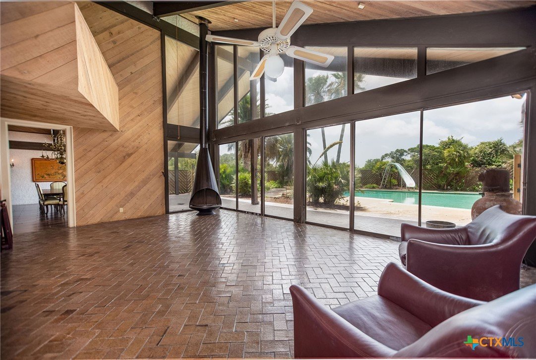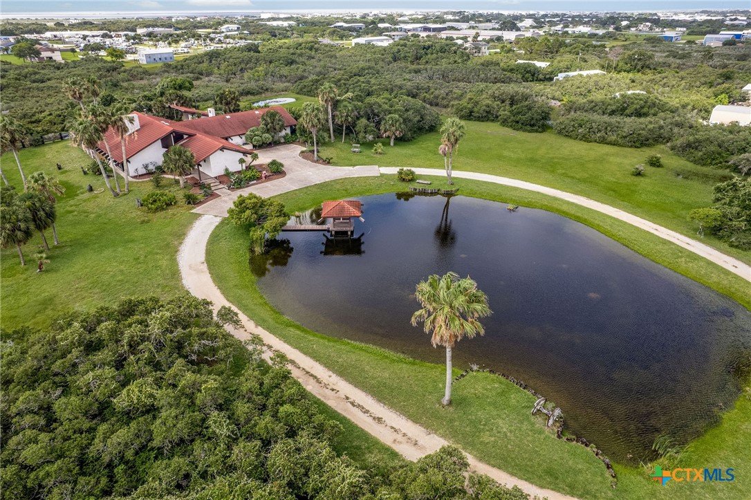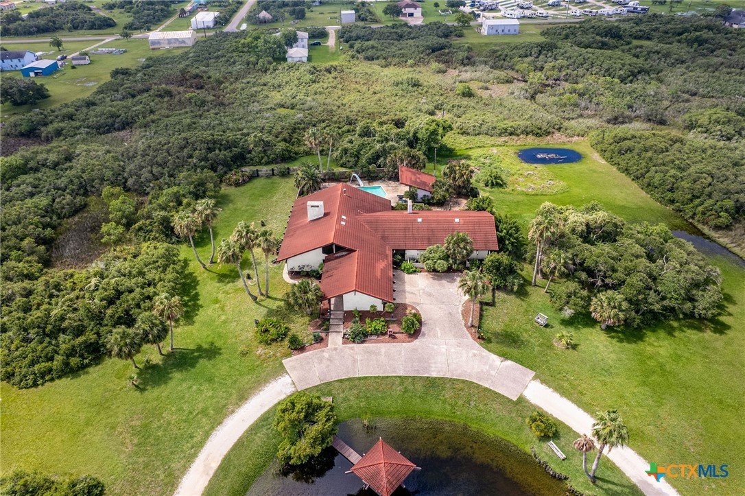 The Clark Estate: Stunning 3 bed, 3.5 bath Estate spanning over 6,000 sq ft, nestled on 5 beautifully landscaped acres with mature trees and numerous palms. This custom stucco home features soaring 30-ft beamed ceilings, 2x6 walls with spray foam insulation, and exquisite tile flooring. Designed and built to withstand the strongest hurricane winds and water. Sitting above historic flood water, constructed of oversized materials. Typical sheetrock constructed have been upgraded to unique exterior stucco walls and Cedar ceiling throughout. Massive double-sided fireplace in the living and dining rooms, with additional fireplaces in the family room and primary suite. Every bedroom boasts a private patio, offering serene views. Entertain family and quests with the quiet atmosphere and privacy of the back grounds. The pool house features a bar and guest bathroom. Make a splash in the half-Olympic-size pool! Relax beside the tranquil pond which feature a gazebo. This property is a rare blend of luxury and privacy. The Clark's vision of land, family, and faith is preserved in the property they cultivated and the lives they touched. Whether it was hosting neighbors for fish fries, supporting local efforts, or maintaining the natural elegance of their land with palms, ponds, and native flora, the Clarks’ presence was both steady and significant. Kenneth and Grady Jean Clark left an indelible mark on the heart of Port O’Connor, Texas—a coastal community known for its natural beauty, close-knit spirit, and enduring traditions. Through decades of dedication, hard work, and quiet leadership, the Clarks helped shape the fabric of this beloved town. This estate stands as a testament to their legacy—a place where hospitality, pride of ownership, and the tranquility of coastal life continue to flourish. More than just a home, it is a chapter in the story of Port O’Connor, written by two of its most respected residents. Great Investment Opportunities! Set Up your private tour