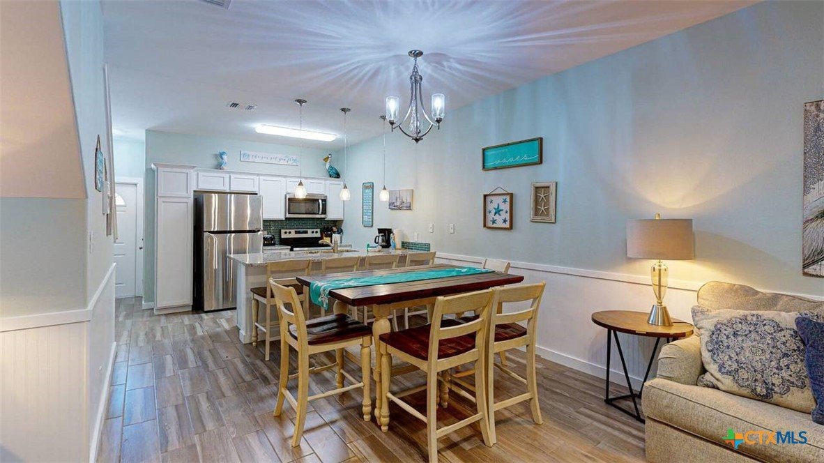 Awesome resort style pool area and steps away from the sand is unit 106 known as the “ Twisted Pelican “ . The pool is heated in the winter months, has a slide, palapas and a shared charcoal grilling area. This 3 BR/3BH Beachside Townhome, with stylist furnishing & coastal decor, has a Split-level floor plan which creates privacy among guests and is offered fully furnished. The kitchen has stainless appliances and a large island with seating for 4. Large Tv with cable & Wi-fi plus the game room is complete with an arcade game & air hockey table. The game rm has the flexibility to be used as more sleeping space along with downstairs sleeper sofa. Full sized washer and dryer are stacked in upstairs closet. Primary BR has access to the balcony with table and seating & has an ensuite bathroom for privacy. A garage & two parking spaces and private patio area is a plus! Floor plans in pictures. Enjoy privately, use it as an income-generating rental or a combination of both. Ask for income reports. Quick golf cart ride to restaurants & shopping. Port A is a great destination with 18 miles of golden beaches, warm Gulf waters and endless ways to relax or play. SF per Nueces County Appraisal District, Room sizes from floor plans in pictures. Beachside HOA.
