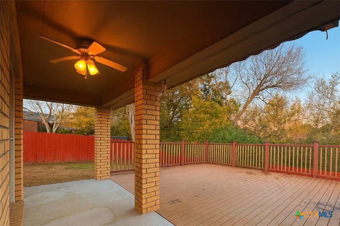 Nestled in Copperas Cove, Texas, this beautifully crafted 3BED/2BATH home offers approximately 1861sqft of comfortable living. This home is surrounded by mature trees and attractive landscaping and is backed-up to one of the cities finest walking trails. The exterior of this home includes a covered porch and patio as well as a large deck that is perfect for outdoor entertaining and relaxation. Inside, the thoughtful split floor-plan provides both space and privacy. The kitchen is a standout, offering granite countertops, stainless steel appliances to include a dishwasher, range and built-in microwave, an island and pantry. The dinning area opens seamlessly to the kitchen and living room, creating an inviting flow ideal for everyday living or entertaining. The spacious primary suite includes a large walk-in closet, separate vanities, a walk-in shower and large corner garden tub. Two additional bedrooms and a well appointed second bathroom provide ample room for family or guests. A dedicated laundry room adds extra convenience. With its prime location and attractive layout near community trails, this Copperas Cove home is one you won't want to miss. All new shingles to be installed December 2025.