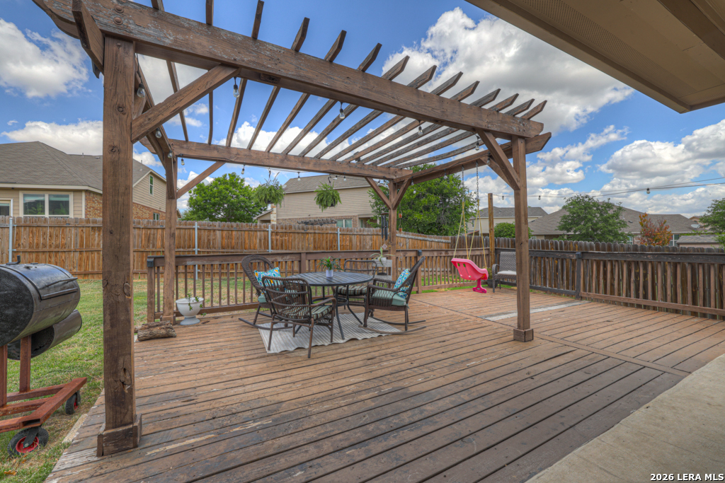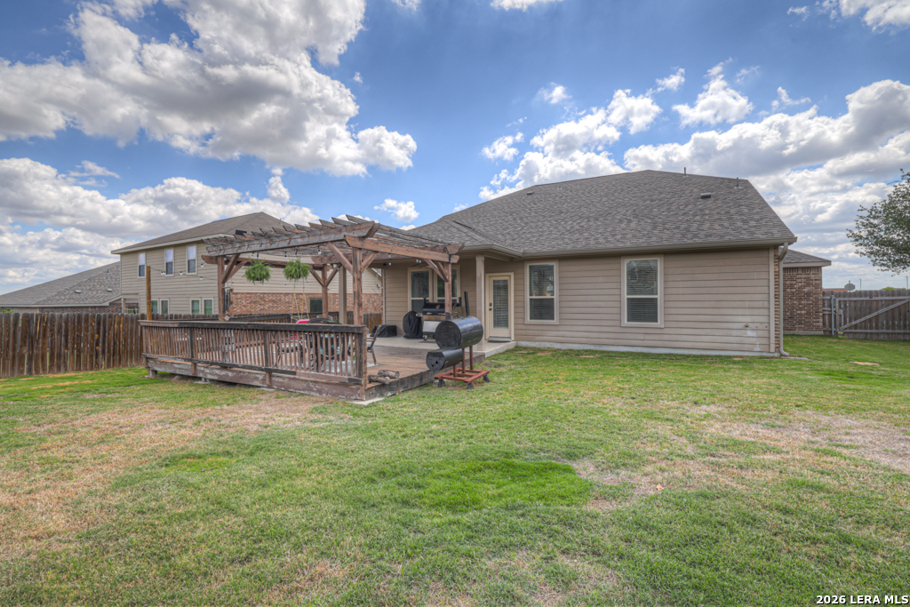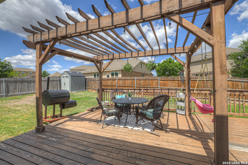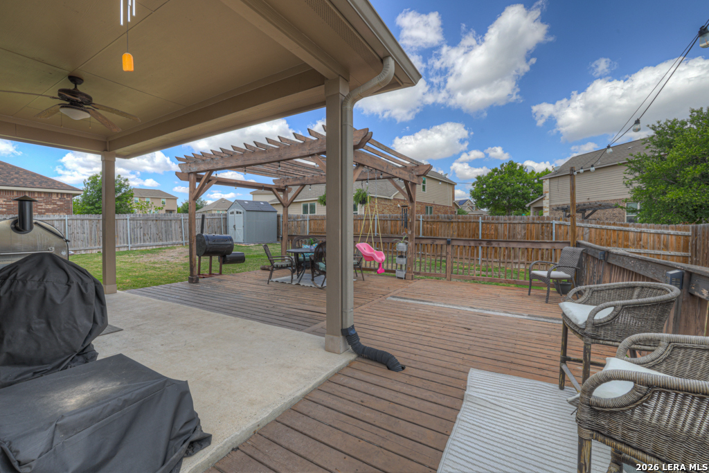 Welcome to 1814 Logan Trail in the highly sought-after Voss Farms community in New Braunfels! This spacious two-story home offers flexible living with 4-5 bedrooms, 2.5 bathrooms, and a layout designed to fit a variety of lifestyles. The optional 5th bedroom can easily serve as a second living area, media room, or private home office. Step inside to find a freshly painted interior complemented by brand new carpet in the living spaces and bedrooms. The dining and wet areas feature durable tile flooring and the kitchen shines with granite countertops, ample cabinetry, and an open flow into the dining and living spaces, perfect for everyday living and entertaining. The oversized primary suite located downstairs provides a comfortable retreat, while additional bedrooms upstairs offer plenty of space for family or guests. Outside, enjoy a generously sized .20-acre lot with a large backyard, complete with an expansive deck and pergola, ideal for relaxing evenings, weekend gatherings, or backyard barbecues. A storage shed adds extra convenience for tools and equipment. Car enthusiasts and hobbyists will appreciate the rare 3-car garage, offering plenty of room for parking, storage, workshop setup or even added entertainment space. Located in the vibrant Voss Farms community with amenities including a clubhouse, pool, and walking trails, and just minutes from schools, shopping, and everything New Braunfels has to offer-this home truly checks all the boxes.