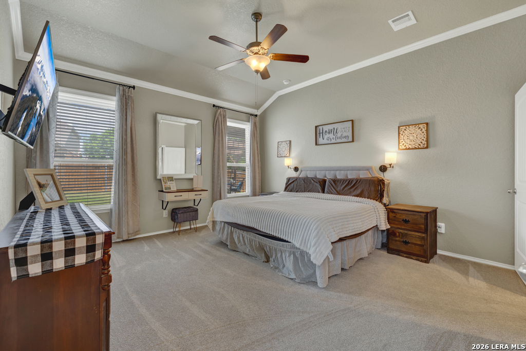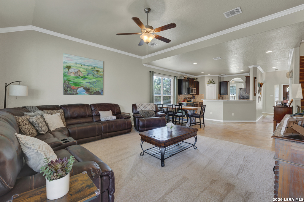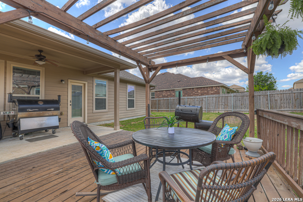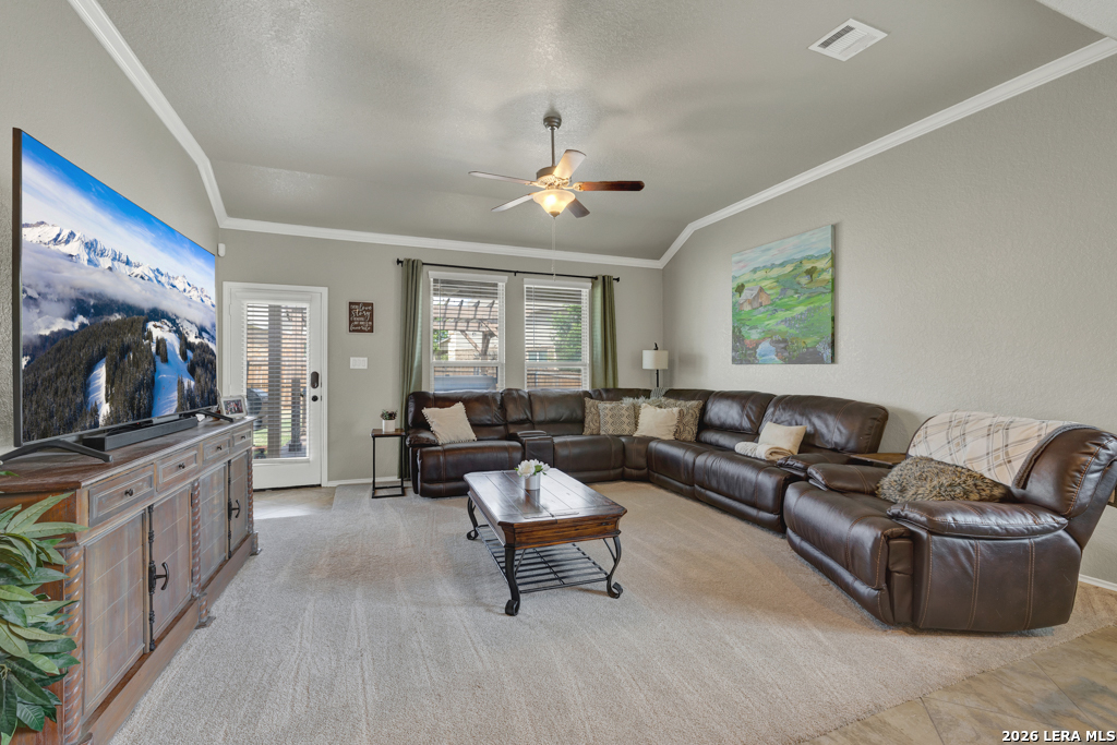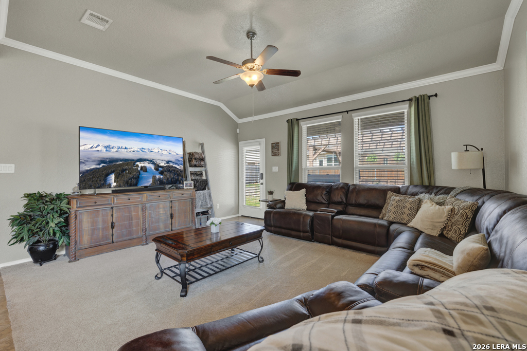Welcome to 1814 Logan Trail in the highly sought-after Voss Farms community in New Braunfels! This spacious two-story home offers flexible living with 4-5 bedrooms, 2.5 bathrooms, and a layout designed to fit a variety of lifestyles. The optional 5th bedroom can easily serve as a second living area, media room, or private home office. Step inside to find a freshly painted interior complemented by brand new carpet in the living spaces and bedrooms. The dining and wet areas feature durable tile flooring and the kitchen shines with granite countertops, ample cabinetry, and an open flow into the dining and living spaces, perfect for everyday living and entertaining. The oversized primary suite located downstairs provides a comfortable retreat, while additional bedrooms upstairs offer plenty of space for family or guests. Outside, enjoy a generously sized .20-acre lot with a large backyard, complete with an expansive deck and pergola, ideal for relaxing evenings, weekend gatherings, or backyard barbecues. A storage shed adds extra convenience for tools and equipment. Car enthusiasts and hobbyists will appreciate the rare 3-car garage, offering plenty of room for parking, storage, workshop setup or even added entertainment space. Located in the vibrant Voss Farms community with amenities including a clubhouse, pool, and walking trails, and just minutes from schools, shopping, and everything New Braunfels has to offer-this home truly checks all the boxes.