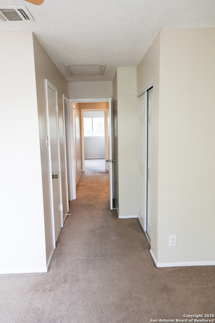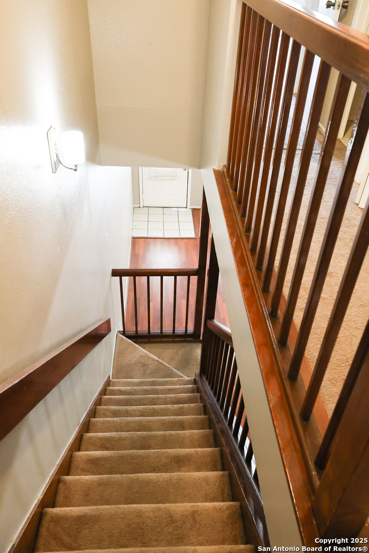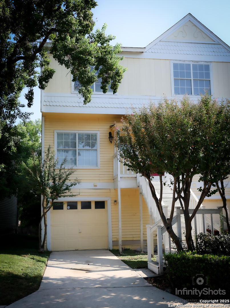 This townhome is located in a well established neighborhood with mature trees that has convenient accessibility to many different amenities. It is within minutes to the San Antonio International Airport, 1.1 miles to McAllister Park, minutes access to a wide variety of shopping centers and restaurants, 0.7 miles to the NE SAPD substation, access to clubhouse, swimming pool, and minutes to several major hospitals. This three level townhome features 3 bedrooms, 3.5 baths, living room, dining room, kitchen, kitchen nook, one car garage, and one car private driveway directly in front of the townhome. Interior entry can be accessed by both the Garage entry on level one and main entry door on level two. On level one, there is direct access to the one car garage which includes washer/dryer connection, one bedroom, full bathroom, patio access with privacy fence. It can be used as a potential primary bedroom, guest room, mother-in-law suite, home gym, etc. On the main level two, enjoy an open floor plan that includes a living room, fireplace, dining room, half bath, kitchen, kitchen nook, and an outside deck sitting area. On level three, the primary bedroom includes a full bathroom along with a walk-in closet and a secondary closet. Bedroom two includes a dual door closet and full bathroom with closet. Please verify and measure room sizes. This is a Go and Show through ShowingTime. $2000 in sellers concessions.
