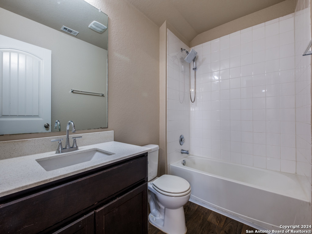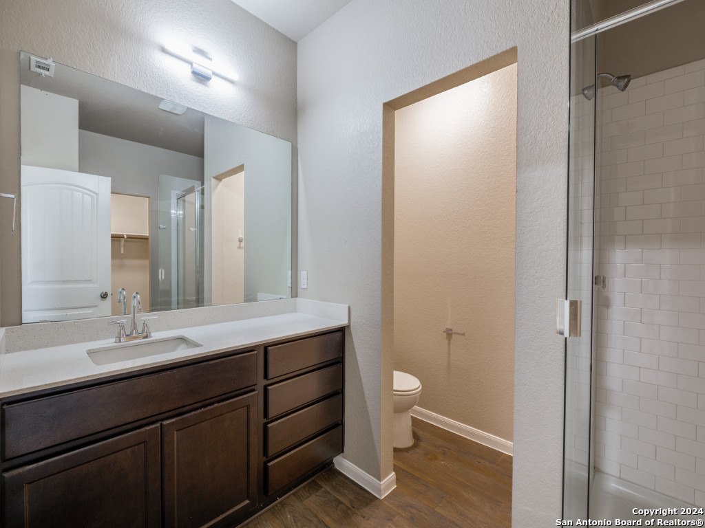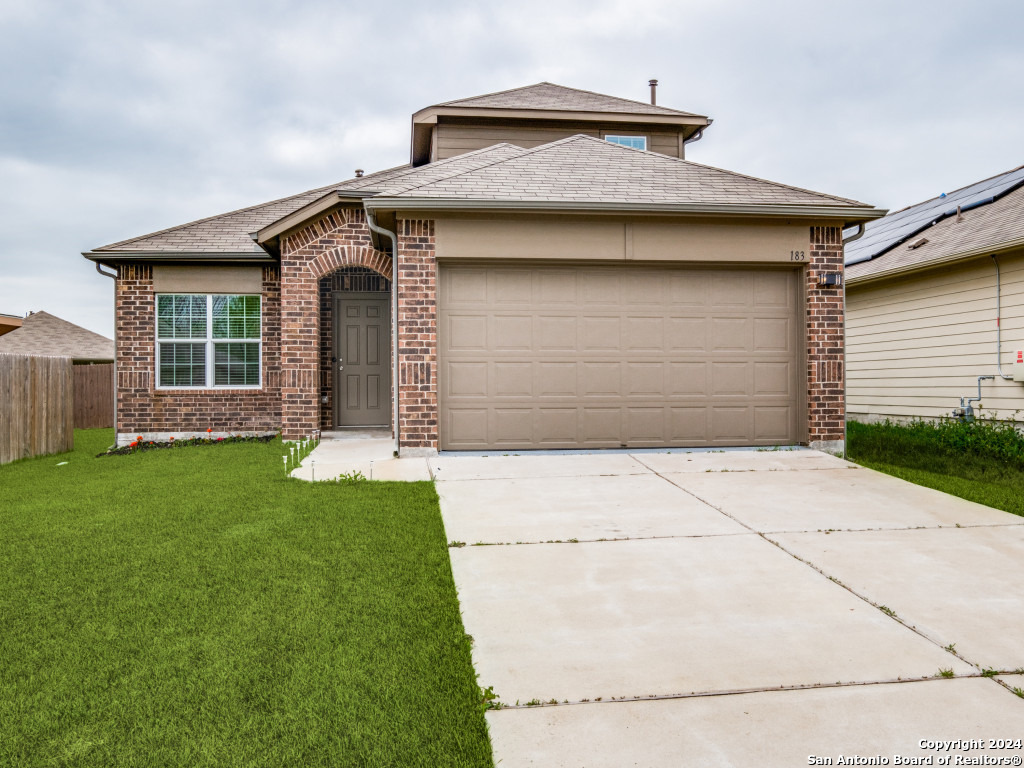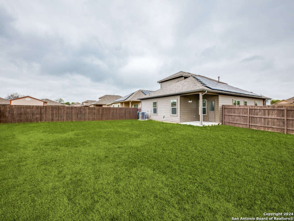 Nicely updated 2 story home on a corner lot that and move in ready and energy efficient with solar panels. Primary bedroom is downstairs with two additional bedroom downstairs. Large game room upstairs with a 4th bedroom and full bath. Wood vinyl flooring in living/main areas. Recently interior paint and new carpet. Kitchen has stainless steel appliance, an island with space for bar stools, tiled backsplash, gas cooking and granite countertops. Great sized backyard with a covered patio. Exterior has gutters, solar panels (over 24k value) conveys with the property. Water softener conveys. Just 3 minutes to Kyle crossing shopping malls, HEB and many other shops. Easy access to major highways. A must see!