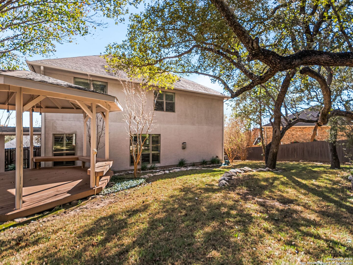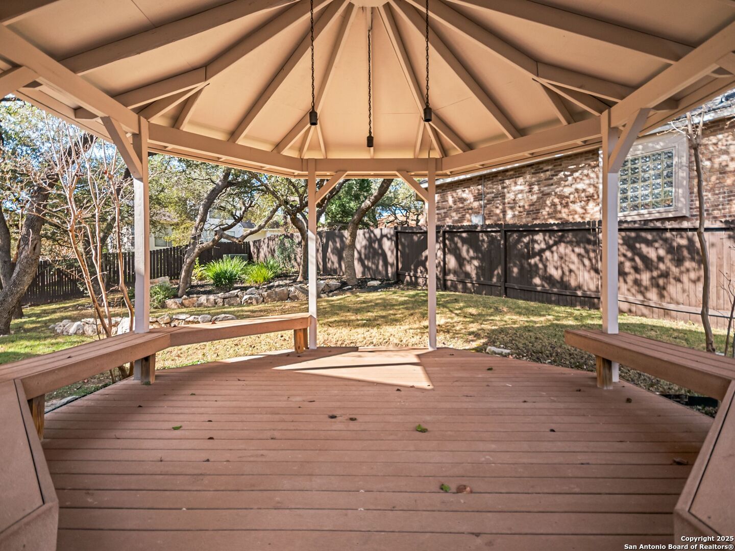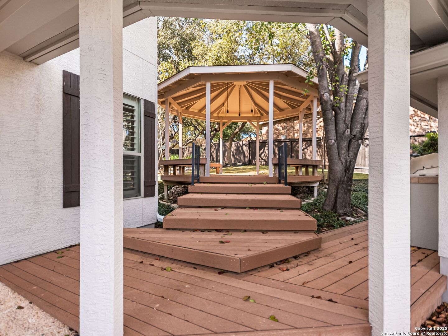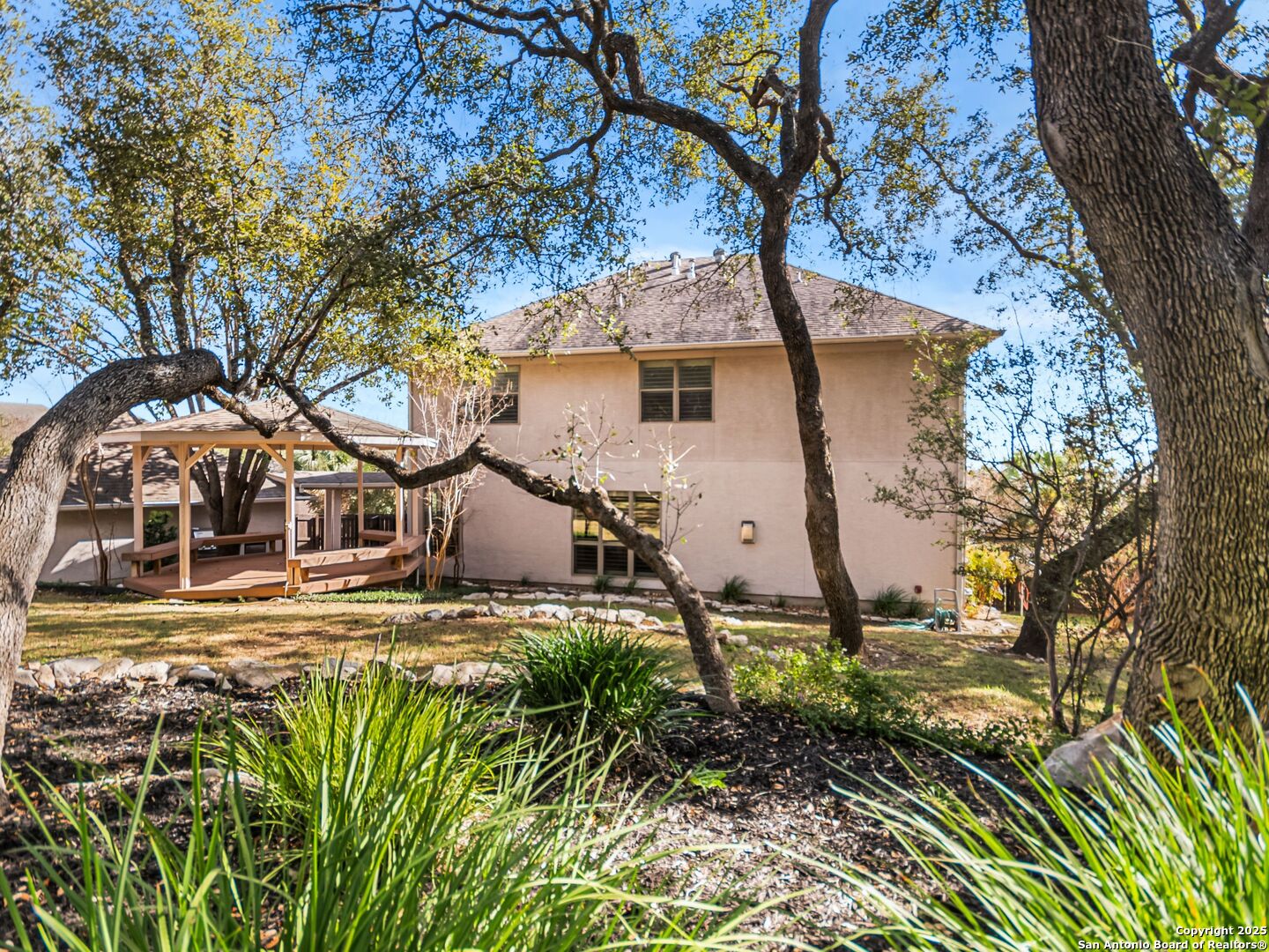This stunning 2-story Sitterle home, located in the prestigious, guarded community of Emerald Forest, boasts breathtaking views. The home features 4 spacious bedrooms, 3.5 bathrooms, and an open-concept kitchen with granite countertops, an island, stainless steel appliances, a walk-in pantry, and a Butler's pantry for extra storage. All bedrooms and the media room come with ample walk-in closets. The master suite is conveniently located downstairs, with a luxurious master bath offering a whirlpool tub and a separate shower. Upstairs, you'll find a media and game room, plus 3 additional bedrooms and 2 baths. Outside, enjoy the peaceful front balcony and covered patio with spectacular views, a side-entry detached garage, a charming gazebo, and an outdoor kitchen perfect for entertaining. This home combines comfort, elegance, and practicality in a prime location.
