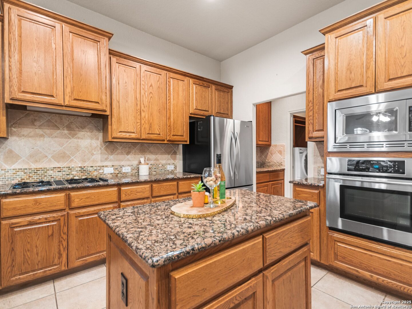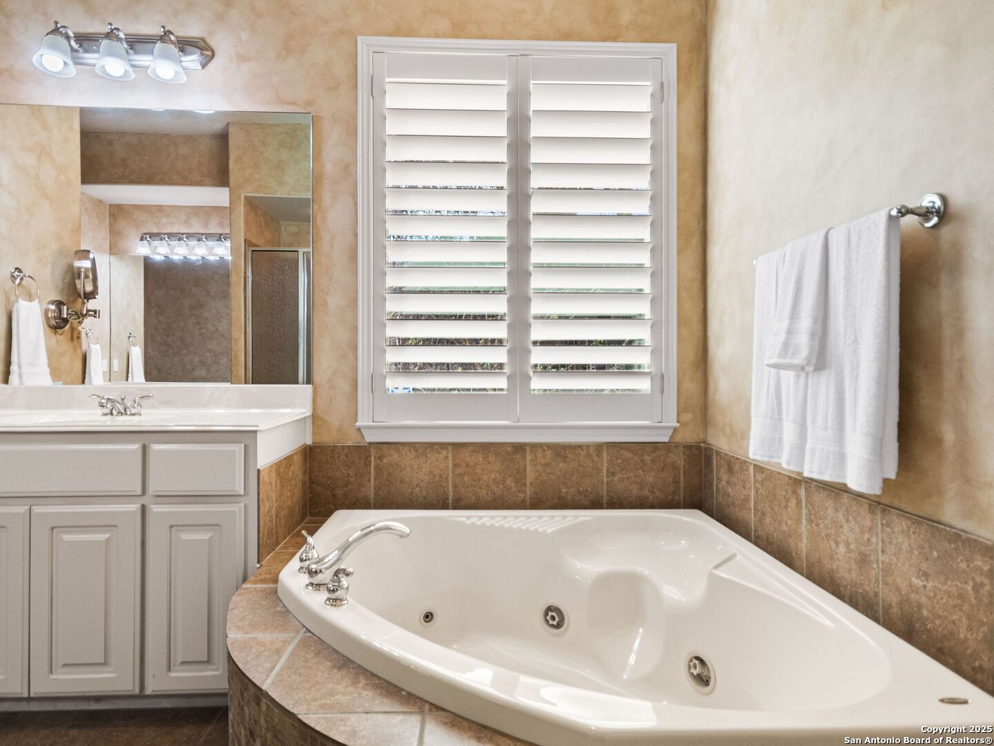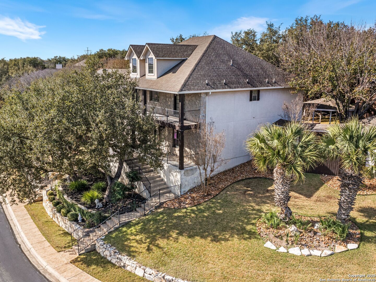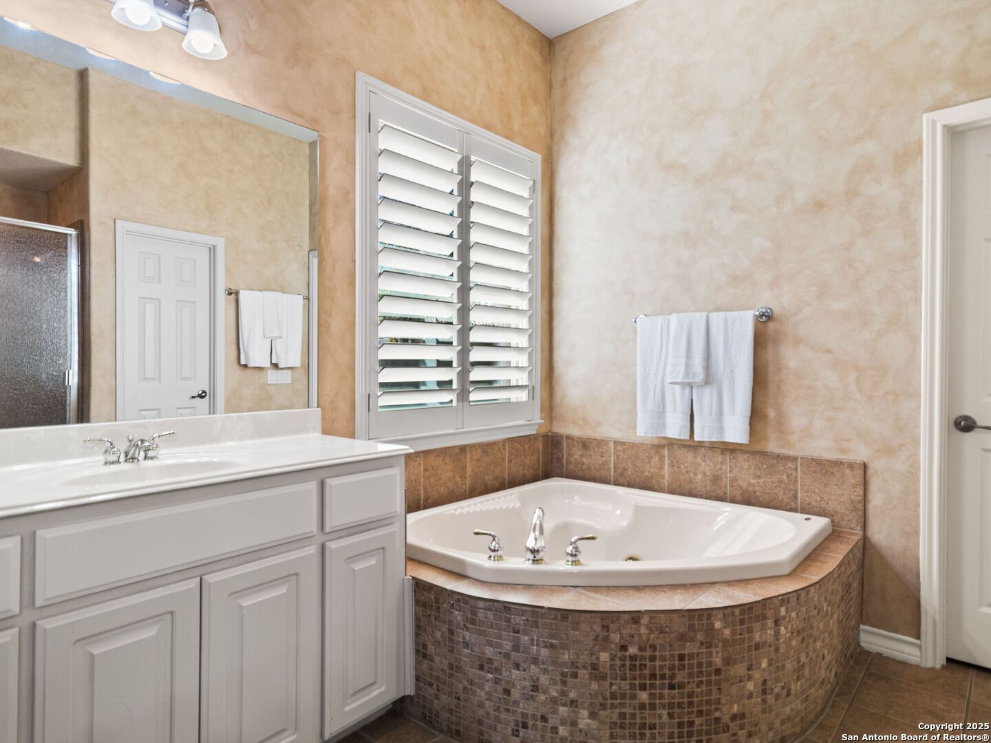 This stunning 2-story Sitterle home, located in the prestigious, guarded community of Emerald Forest, boasts breathtaking views. The home features 4 spacious bedrooms, 3.5 bathrooms, and an open-concept kitchen with granite countertops, an island, stainless steel appliances, a walk-in pantry, and a Butler's pantry for extra storage. All bedrooms and the media room come with ample walk-in closets. The master suite is conveniently located downstairs, with a luxurious master bath offering a whirlpool tub and a separate shower. Upstairs, you'll find a media and game room, plus 3 additional bedrooms and 2 baths. Outside, enjoy the peaceful front balcony and covered patio with spectacular views, a side-entry detached garage, a charming gazebo, and an outdoor kitchen perfect for entertaining. This home combines comfort, elegance, and practicality in a prime location.