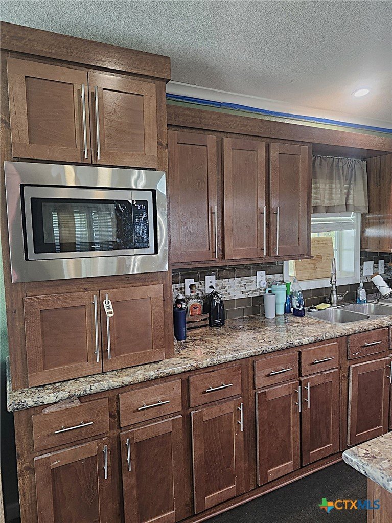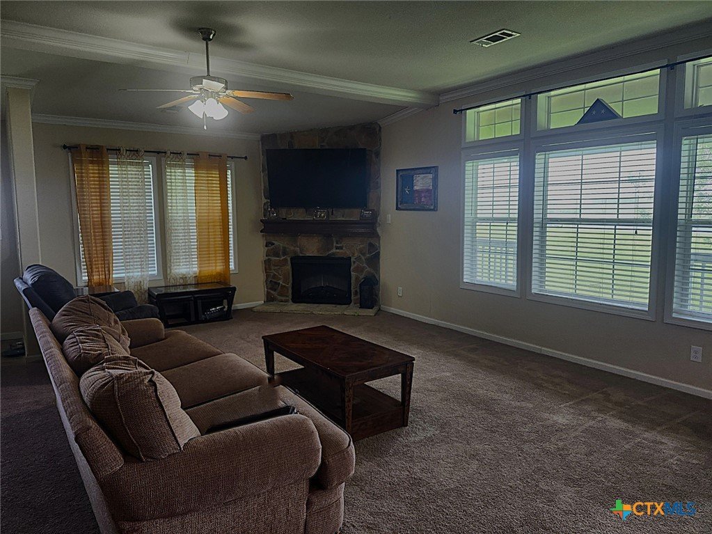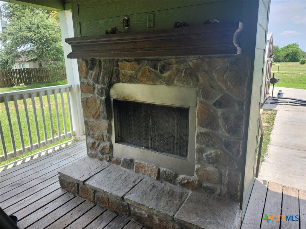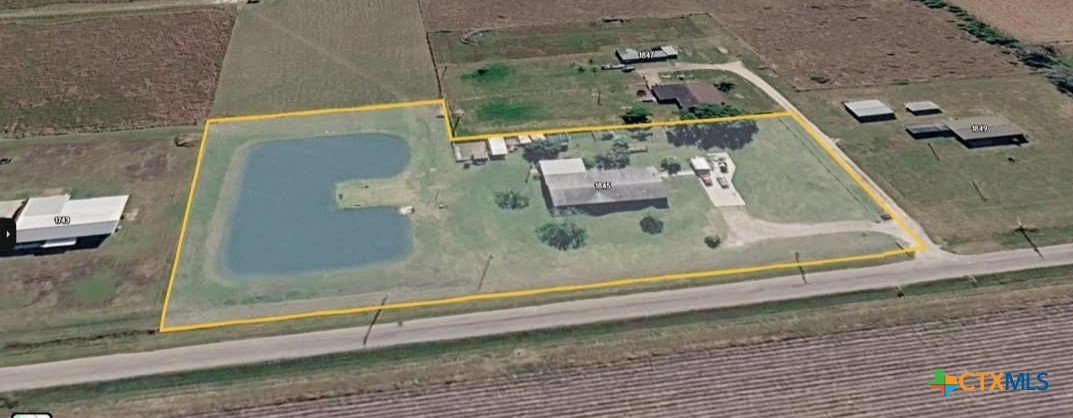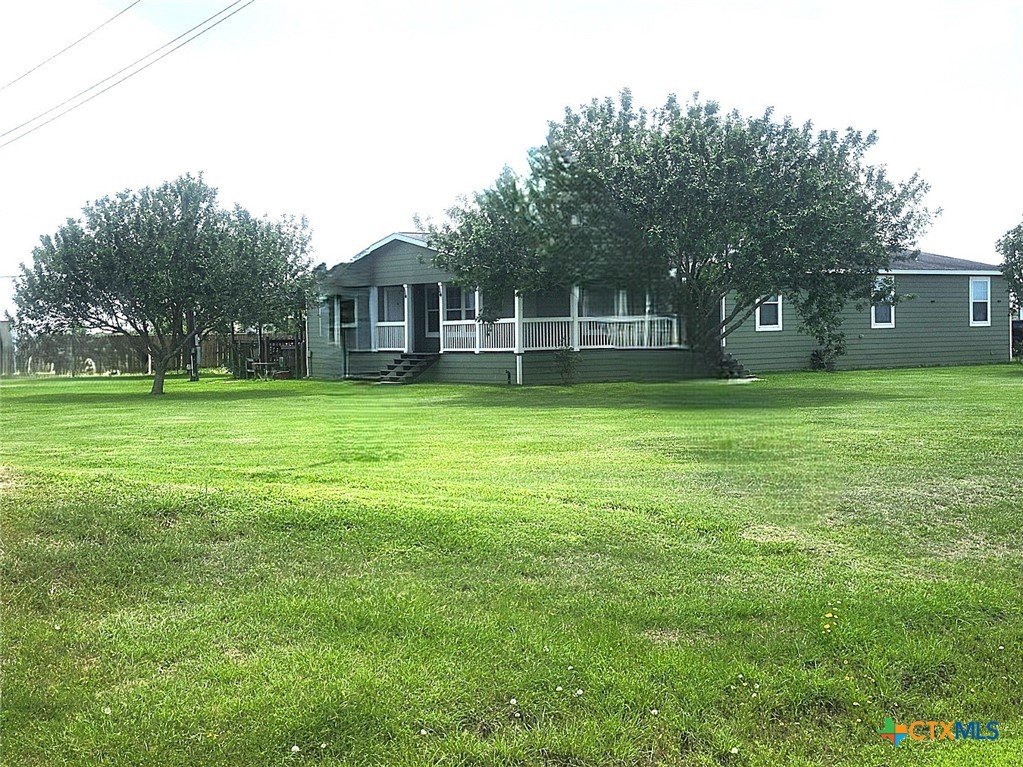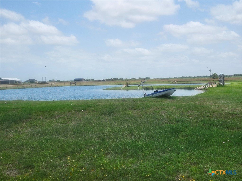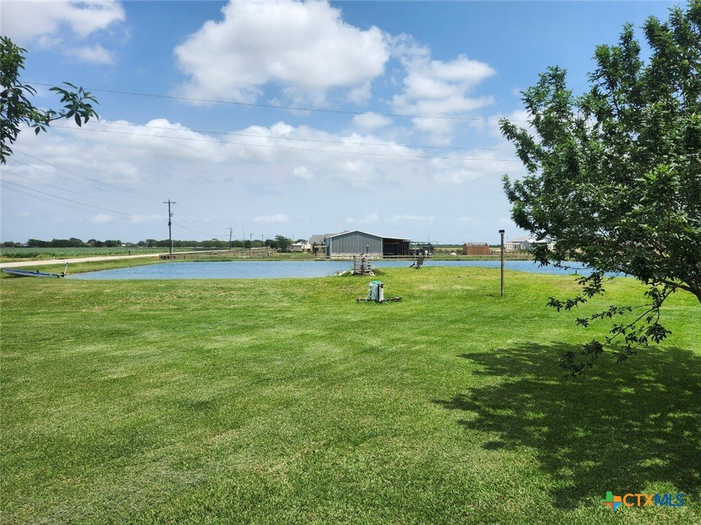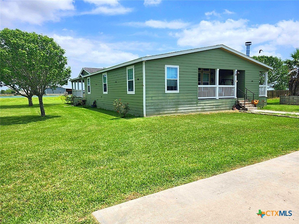 Spacious 4-bedroom, 3-bath modular home situated on approximately 3 acres (sale includes CAD 77966) with a private stocked horseshoe-style lake. This beautifully designed home features an open-concept living, kitchen, and dining area with island bar seating, a mudroom, and pantry for added convenience. The split primary suite offers a private retreat with an electric fireplace, walk-in closet, spa-like bath with dual-head walk-in shower, garden tub, private water closet, and sliding barn door entry. Additional fireplaces are in the main living area (electric) and covered outdoor porch (wood). Enjoy outdoor living with covered porches and a large covered back deck, perfect for entertaining or relaxing while overlooking the property. Additional improvements include two storage/workshop buildings, privacy cedar fencing along the rear property line, and established outdoor utility features including GBRA water service for the home plus a private well servicing the lake and irrigation needs. The stocked private lake includes largemouth bass, crappie, redfish, and multiple catfish species, creating a unique recreational feature right in your backyard.
