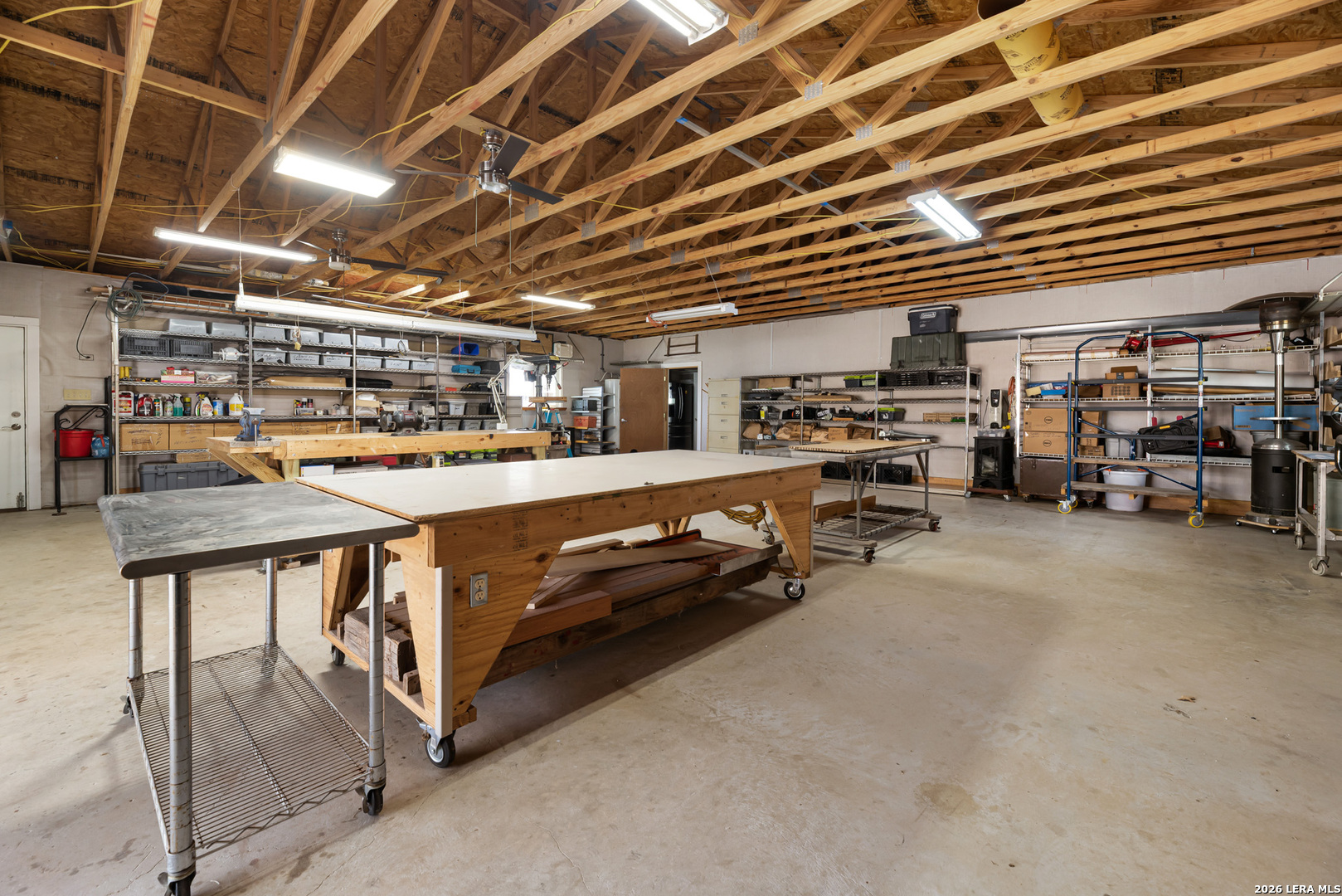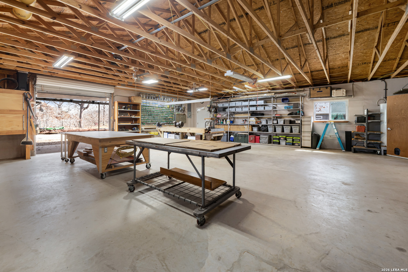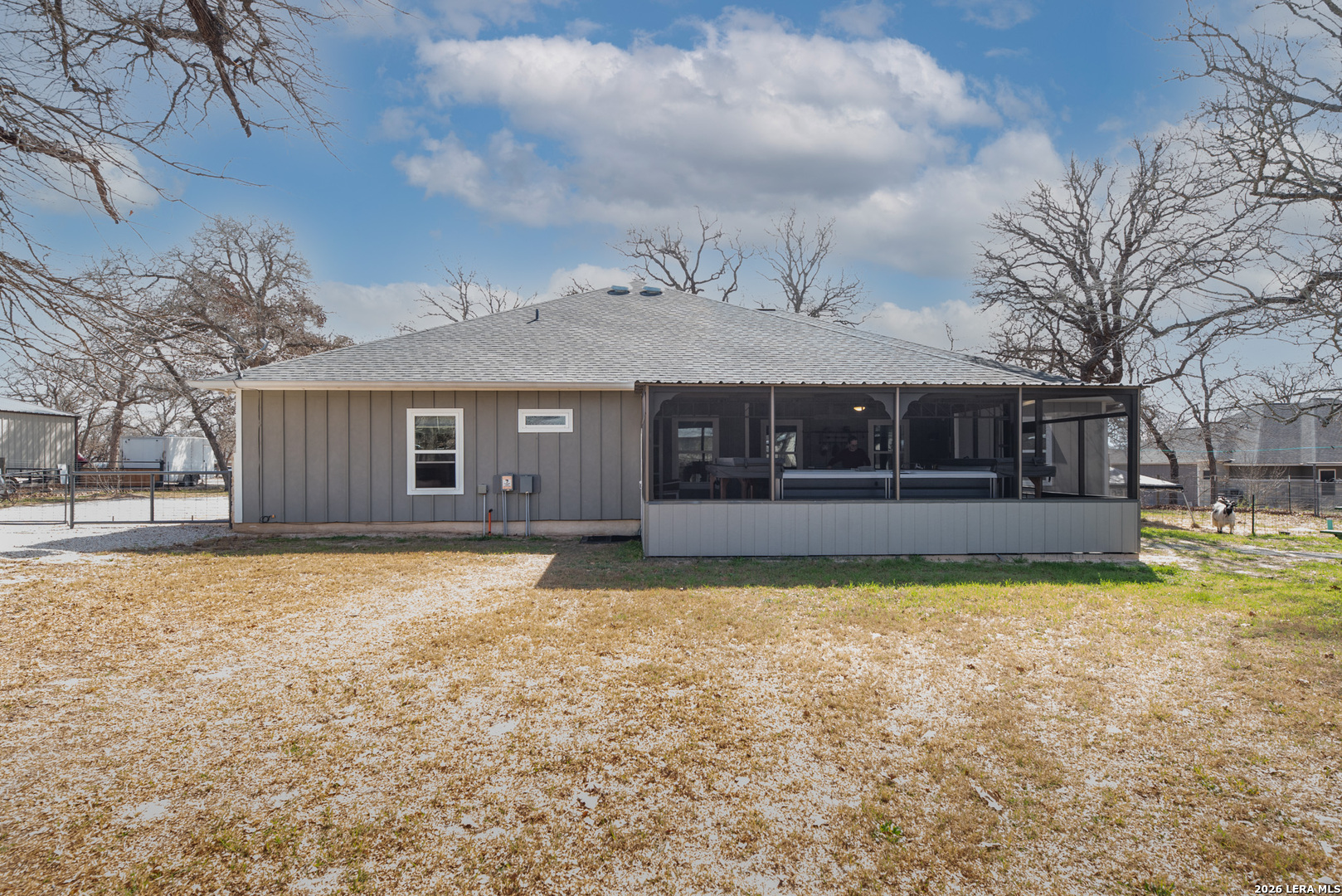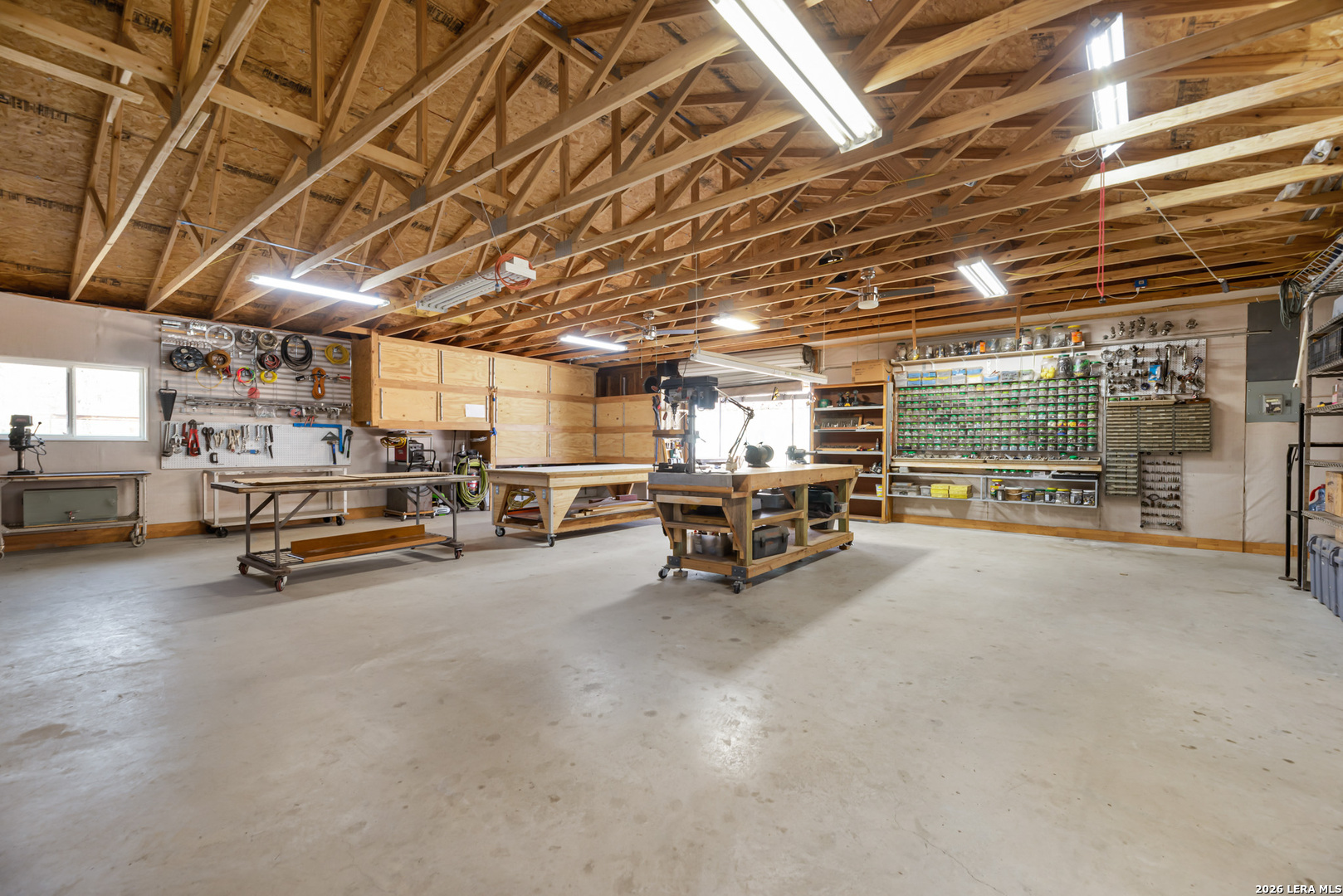 This La Vernia, TX property has it all! Stunning single level 3bd, 2.5 bath home on 1.29 acres with a 1740 sq ft shop that has a 300 sq ft garage apartment with full bath. Wonderful open floor plan layout with formal dining area that could also be a flex space for a home office or gym/playroom. Wood look ceramic tile throughout the home makes cleaning a breeze. Gourmet kitchen with a gas cooktop, upgraded stone countertops, custom wood cabinets with soft closing hinges and drawers, large pantry, lots of cabinets and storage, built-in oven, breakfast bar and a breakfast nook. Giant living space with propane heated freestanding fireplace. Large primary suite with plenty of room for a king-sized bed and sitting area, walk-in closet that you have been dreaming of with room for all of your things and a custom built-in dresser. Primary bath with double vanity, separate shower and tub and lots of storage. Secondary bedrooms are over-sized and offer plenty of closet space. Dream laundry room with tons of storage, cabinets and counter space. HVAC system was fully replaced by Jon Wayne and come with a warranty that includes annual servicing and filter replacement. The exterior features of this home with have you feeling like you are on vacation year round...HUGE screened in porch with a top of the line swim spa and hot tub!! Rain gutters installed by Lowe's with transferable warranty. Perfect front porch for all your seasonal decorating! Property is fenced and cross fenced with plenty of room for chickens or other farm animals. Chicken coop, almost new 8x12 Tuff Shed for all of your gardening equipment or animal feed. 1740 sq foot insulated shop with a 300 sq foot heated and cooled garage apartment with full bath and kitchenette, perfect for guests, teens or multi-generational living. Shop is fully setup with floor to ceiling shelving and two roll up doors, carport, LP gas, water heater and so much more! Conex storage container for more storage! The 1.29 acre lot is level and has mature trees. Plenty of room to park your RV, boat and other toys. Established neighborhood with NO HOA in La Vernia ISD. This home has been well maintained and is a must see!! Call today for more info!