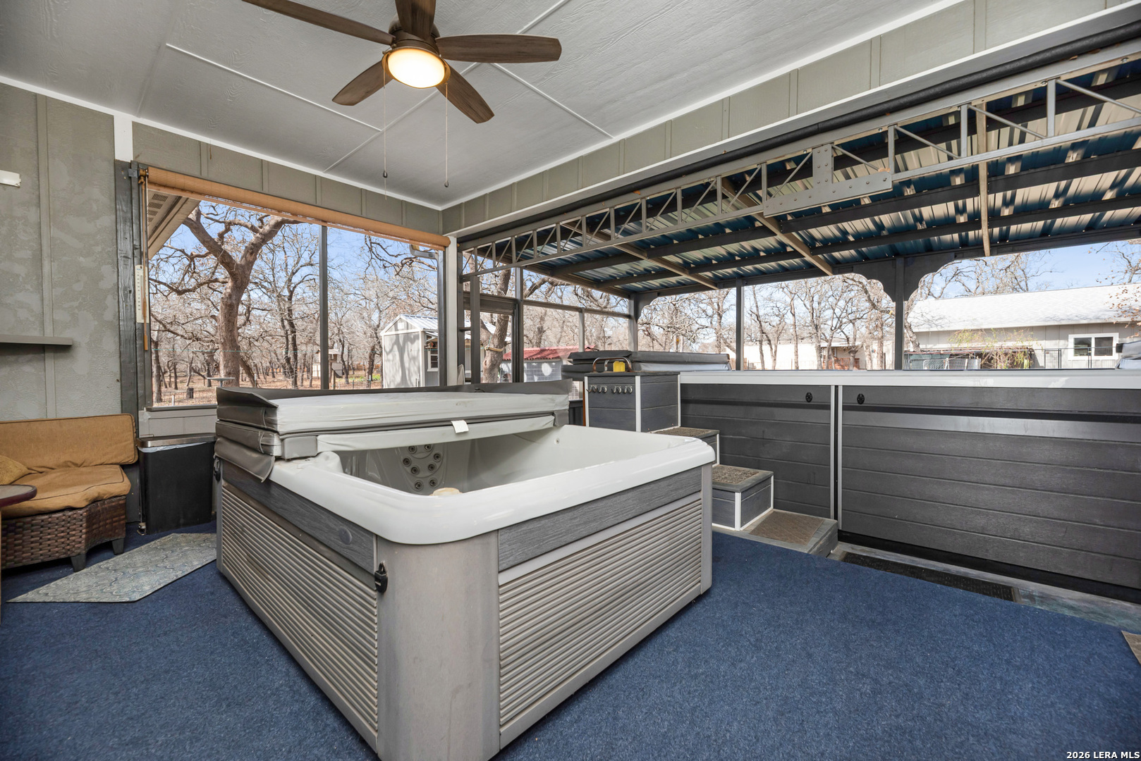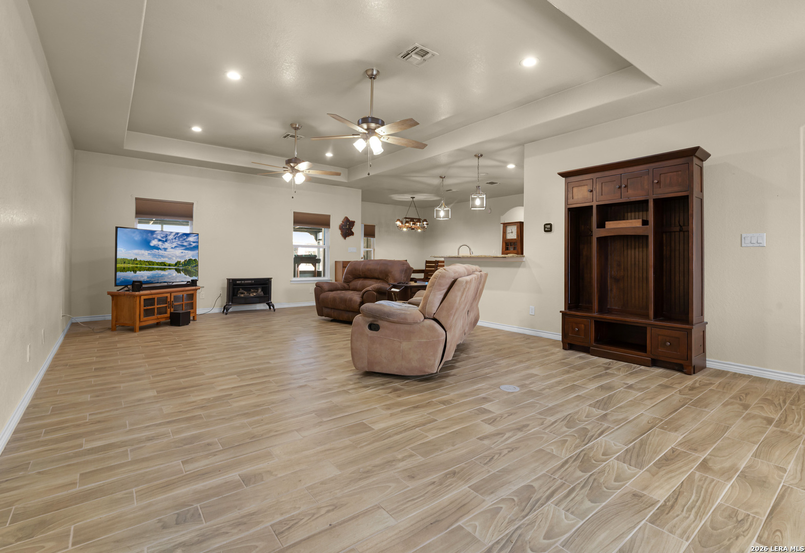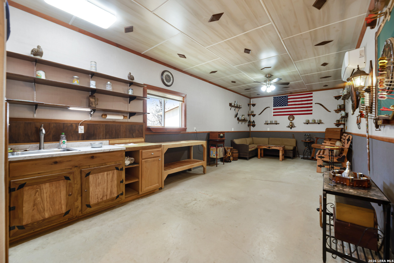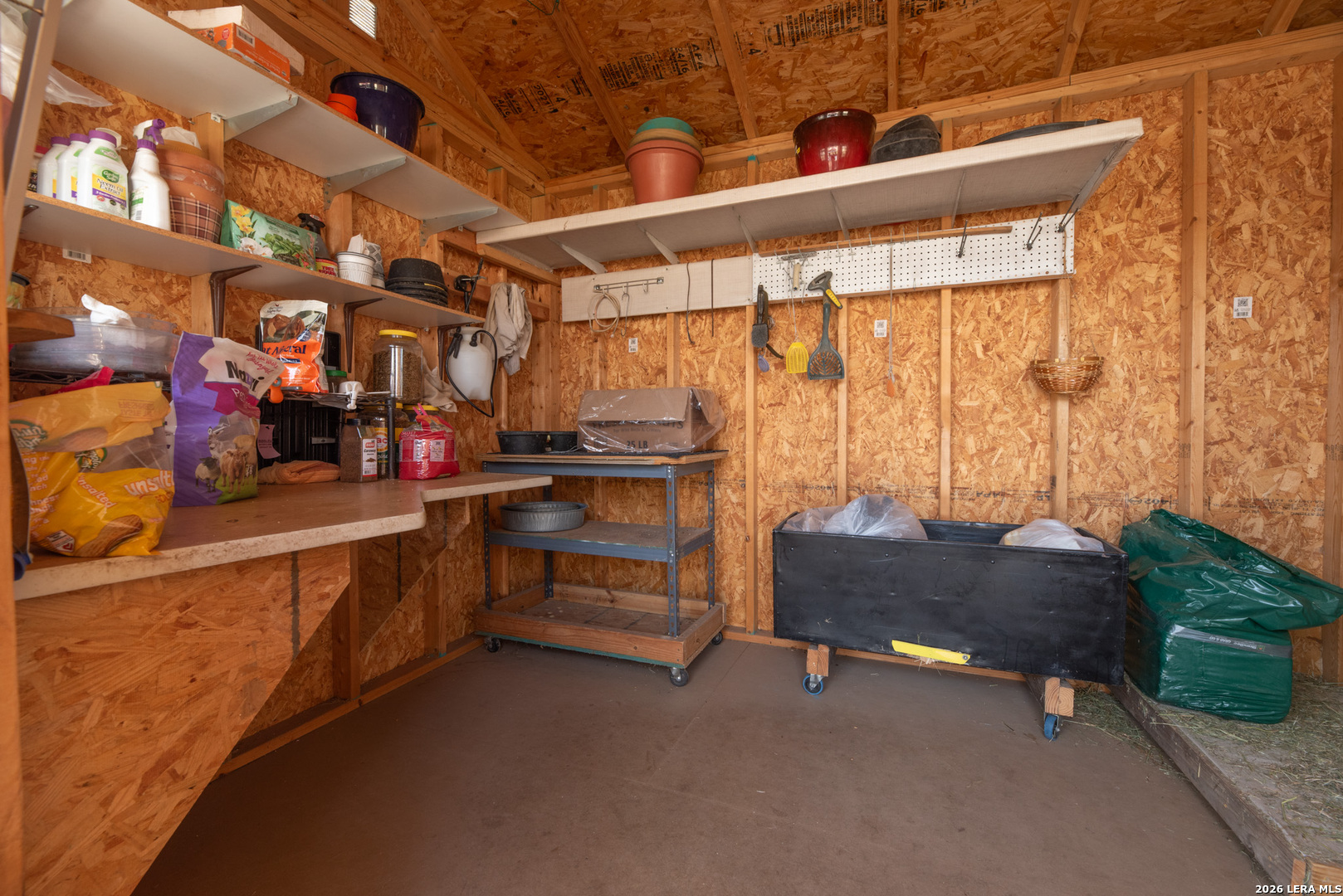 This La Vernia, TX property has it all! Stunning single level 3bd, 2.5 bath home on 1.29 acres with a 1740 sq ft shop that has a 300 sq ft garage apartment with full bath. Wonderful open floor plan layout with formal dining area that could also be a flex space for a home office or gym/playroom. Wood look ceramic tile throughout the home makes cleaning a breeze. Gourmet kitchen with a gas cooktop, upgraded stone countertops, custom wood cabinets with soft closing hinges and drawers, large pantry, lots of cabinets and storage, built-in oven, breakfast bar and a breakfast nook. Giant living space with propane heated freestanding fireplace. Large primary suite with plenty of room for a king-sized bed and sitting area, walk-in closet that you have been dreaming of with room for all of your things and a custom built-in dresser. Primary bath with double vanity, separate shower and tub and lots of storage. Secondary bedrooms are over-sized and offer plenty of closet space. Dream laundry room with tons of storage, cabinets and counter space. HVAC system was fully replaced by Jon Wayne and come with a warranty that includes annual servicing and filter replacement. The exterior features of this home with have you feeling like you are on vacation year round...HUGE screened in porch with a top of the line swim spa and hot tub!! Rain gutters installed by Lowe's with transferable warranty. Perfect front porch for all your seasonal decorating! Property is fenced and cross fenced with plenty of room for chickens or other farm animals. Chicken coop, almost new 8x12 Tuff Shed for all of your gardening equipment or animal feed. 1740 sq foot insulated shop with a 300 sq foot heated and cooled garage apartment with full bath and kitchenette, perfect for guests, teens or multi-generational living. Shop is fully setup with floor to ceiling shelving and two roll up doors, carport, LP gas, water heater and so much more! Conex storage container for more storage! The 1.29 acre lot is level and has mature trees. Plenty of room to park your RV, boat and other toys. Established neighborhood with NO HOA in La Vernia ISD. This home has been well maintained and is a must see!! Call today for more info!