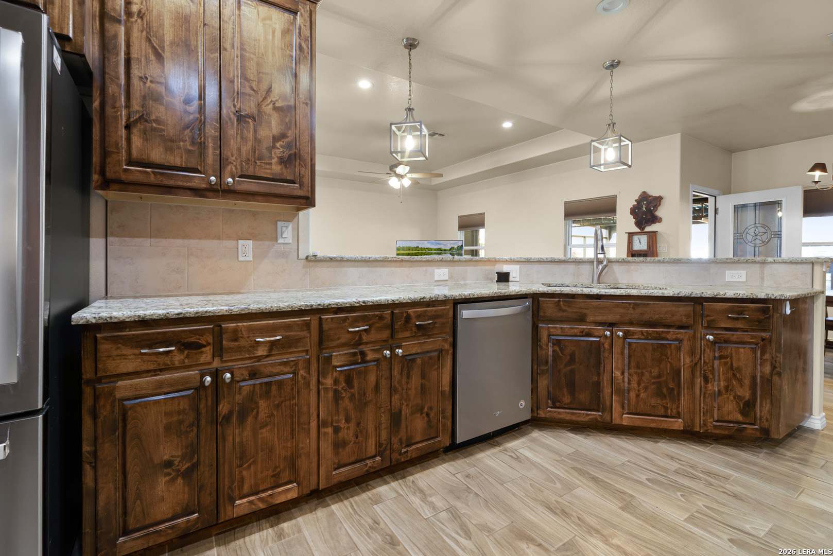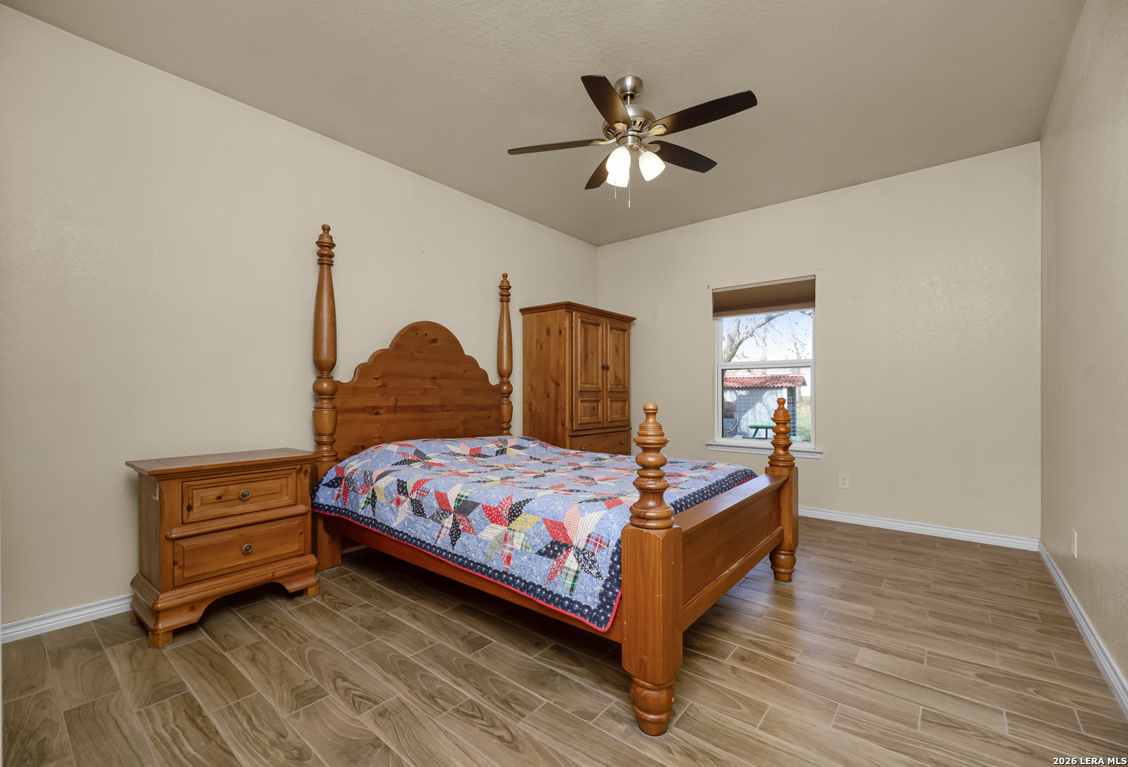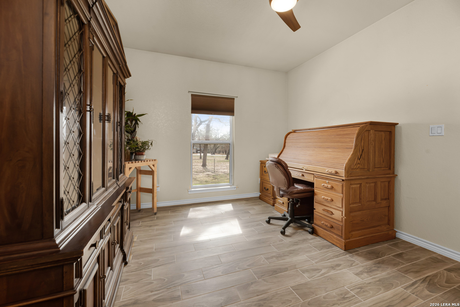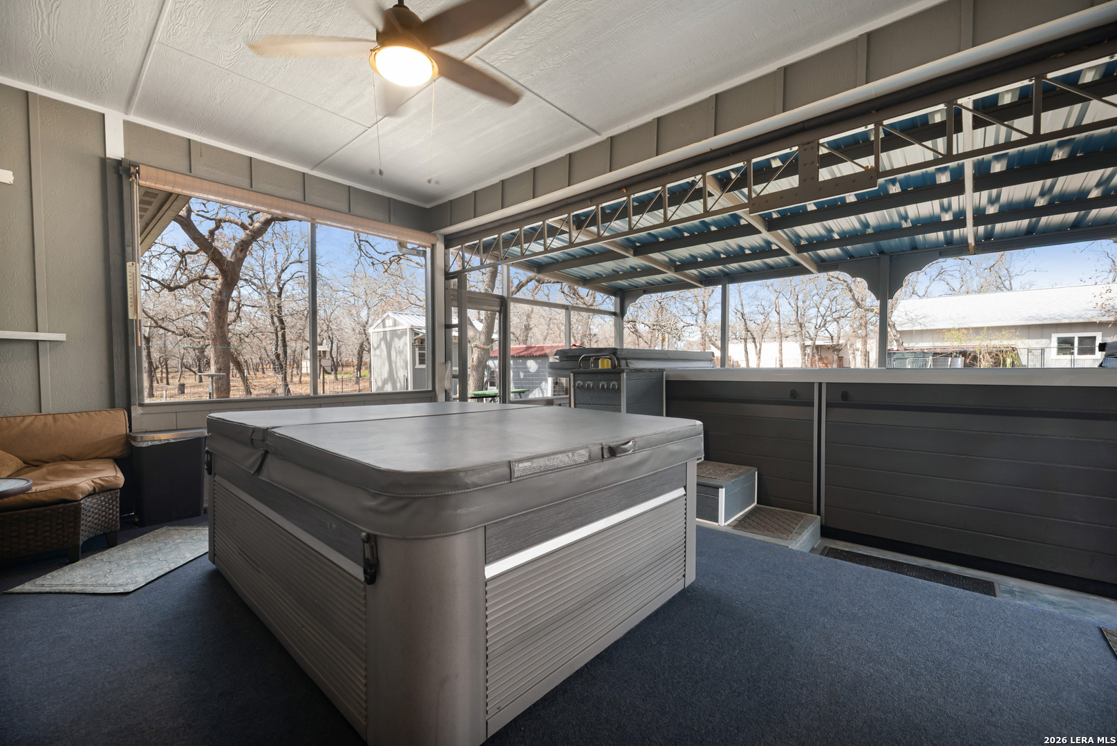 This La Vernia, TX property has it all! Stunning single level 3bd, 2.5 bath home on 1.29 acres with a 1740 sq ft shop that has a 300 sq ft garage apartment with full bath. Wonderful open floor plan layout with formal dining area that could also be a flex space for a home office or gym/playroom. Wood look ceramic tile throughout the home makes cleaning a breeze. Gourmet kitchen with a gas cooktop, upgraded stone countertops, custom wood cabinets with soft closing hinges and drawers, large pantry, lots of cabinets and storage, built-in oven, breakfast bar and a breakfast nook. Giant living space with propane heated freestanding fireplace. Large primary suite with plenty of room for a king-sized bed and sitting area, walk-in closet that you have been dreaming of with room for all of your things and a custom built-in dresser. Primary bath with double vanity, separate shower and tub and lots of storage. Secondary bedrooms are over-sized and offer plenty of closet space. Dream laundry room with tons of storage, cabinets and counter space. HVAC system was fully replaced by Jon Wayne and come with a warranty that includes annual servicing and filter replacement. The exterior features of this home with have you feeling like you are on vacation year round...HUGE screened in porch with a top of the line swim spa and hot tub!! Rain gutters installed by Lowe's with transferable warranty. Perfect front porch for all your seasonal decorating! Property is fenced and cross fenced with plenty of room for chickens or other farm animals. Chicken coop, almost new 8x12 Tuff Shed for all of your gardening equipment or animal feed. 1740 sq foot insulated shop with a 300 sq foot heated and cooled garage apartment with full bath and kitchenette, perfect for guests, teens or multi-generational living. Shop is fully setup with floor to ceiling shelving and two roll up doors, carport, LP gas, water heater and so much more! Conex storage container for more storage! The 1.29 acre lot is level and has mature trees. Plenty of room to park your RV, boat and other toys. Established neighborhood with NO HOA in La Vernia ISD. This home has been well maintained and is a must see!! Call today for more info!