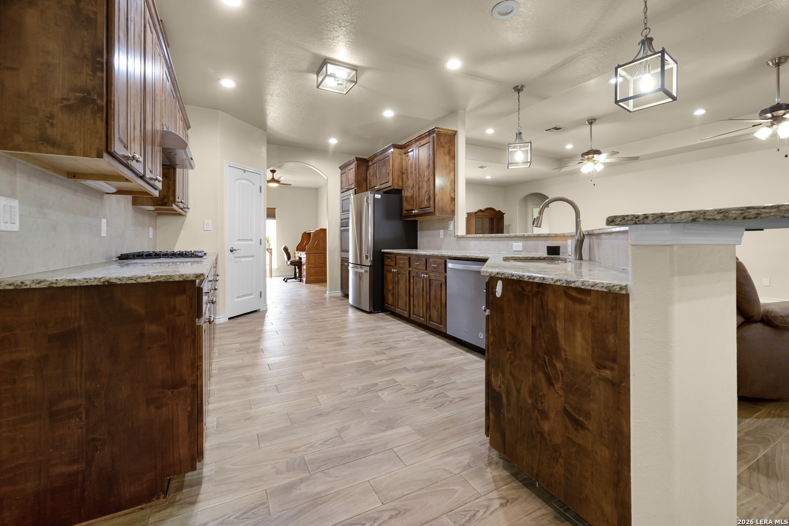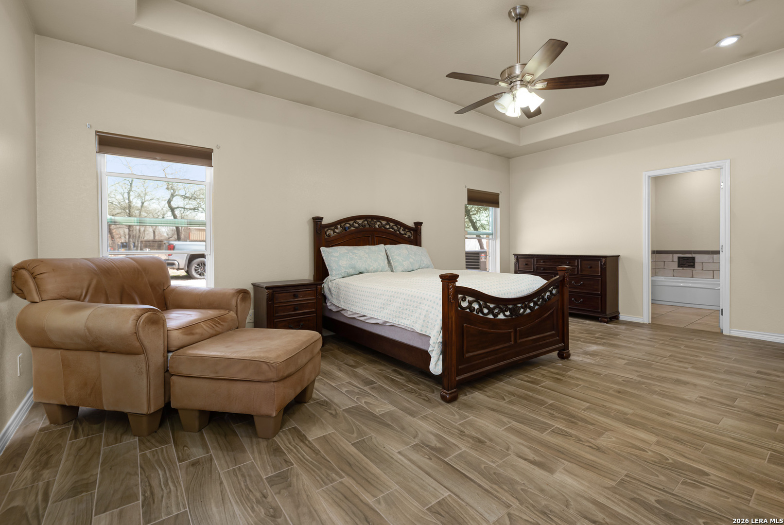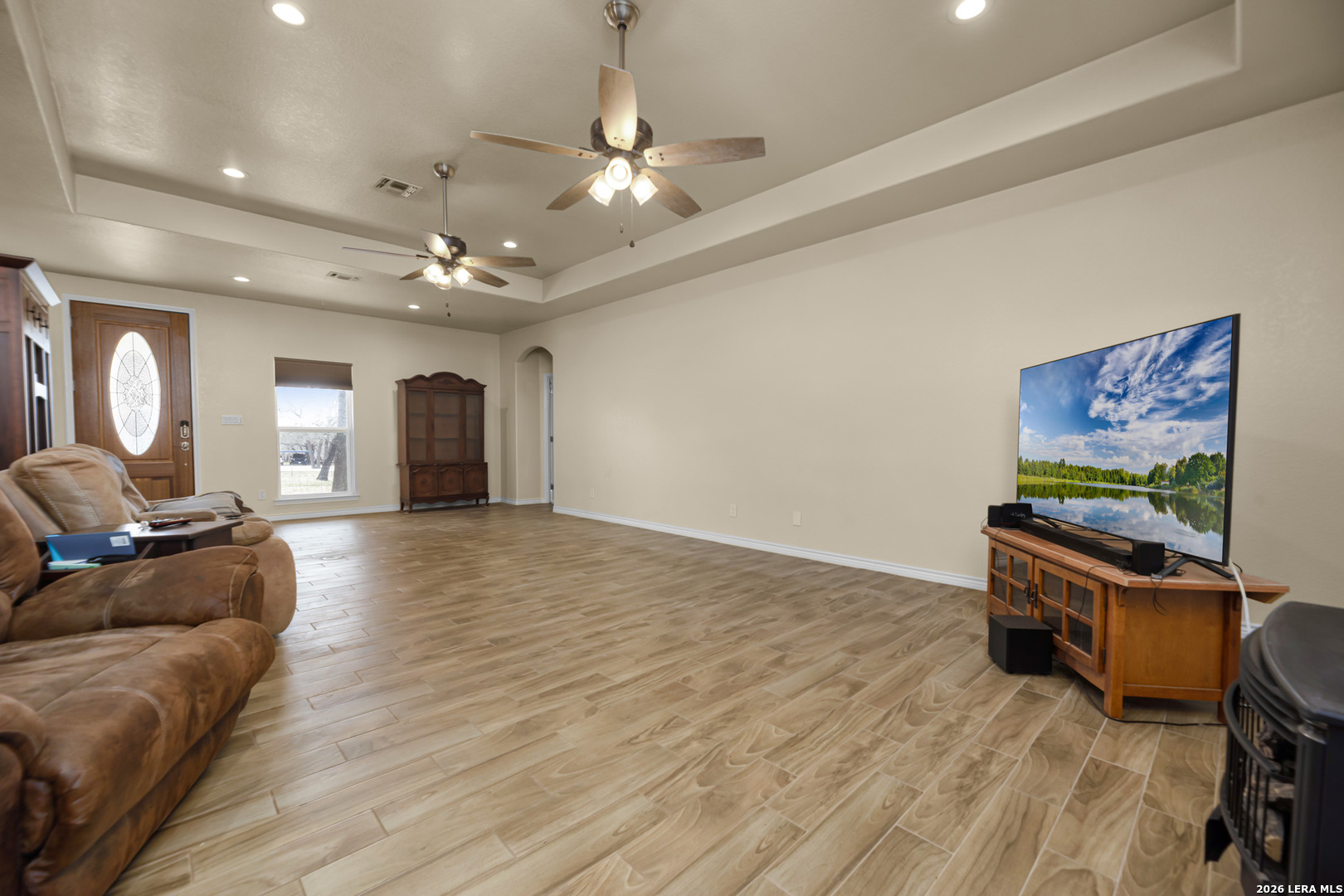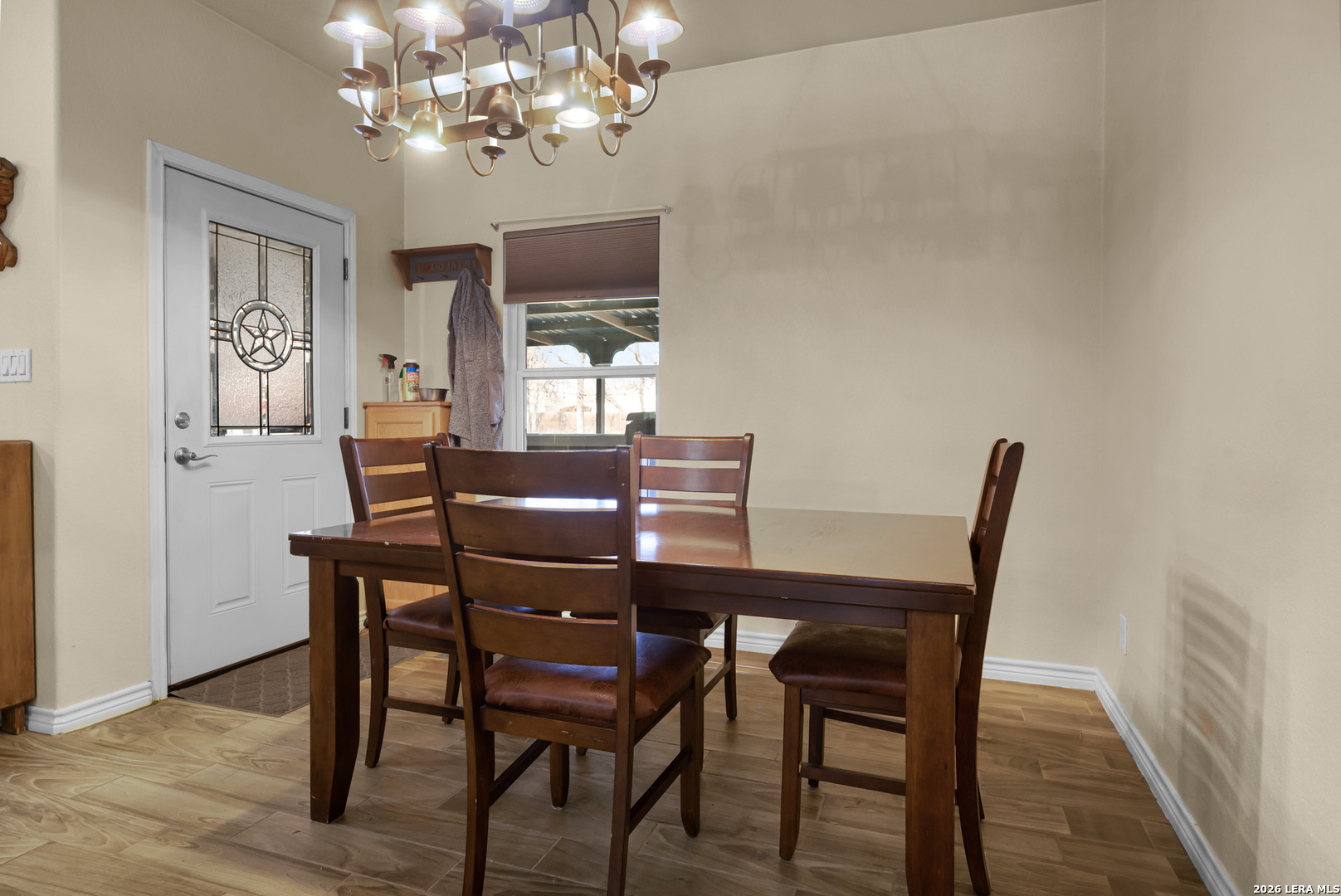 This La Vernia, TX property has it all! Stunning single level 3bd, 2.5 bath home on 1.29 acres with a 1740 sq ft shop that has a 300 sq ft garage apartment with full bath. Wonderful open floor plan layout with formal dining area that could also be a flex space for a home office or gym/playroom. Wood look ceramic tile throughout the home makes cleaning a breeze. Gourmet kitchen with a gas cooktop, upgraded stone countertops, custom wood cabinets with soft closing hinges and drawers, large pantry, lots of cabinets and storage, built-in oven, breakfast bar and a breakfast nook. Giant living space with propane heated freestanding fireplace. Large primary suite with plenty of room for a king-sized bed and sitting area, walk-in closet that you have been dreaming of with room for all of your things and a custom built-in dresser. Primary bath with double vanity, separate shower and tub and lots of storage. Secondary bedrooms are over-sized and offer plenty of closet space. Dream laundry room with tons of storage, cabinets and counter space. HVAC system was fully replaced by Jon Wayne and come with a warranty that includes annual servicing and filter replacement. The exterior features of this home with have you feeling like you are on vacation year round...HUGE screened in porch with a top of the line swim spa and hot tub!! Rain gutters installed by Lowe's with transferable warranty. Perfect front porch for all your seasonal decorating! Property is fenced and cross fenced with plenty of room for chickens or other farm animals. Chicken coop, almost new 8x12 Tuff Shed for all of your gardening equipment or animal feed. 1740 sq foot insulated shop with a 300 sq foot heated and cooled garage apartment with full bath and kitchenette, perfect for guests, teens or multi-generational living. Shop is fully setup with floor to ceiling shelving and two roll up doors, carport, LP gas, water heater and so much more! Conex storage container for more storage! The 1.29 acre lot is level and has mature trees. Plenty of room to park your RV, boat and other toys. Established neighborhood with NO HOA in La Vernia ISD. This home has been well maintained and is a must see!! Call today for more info!