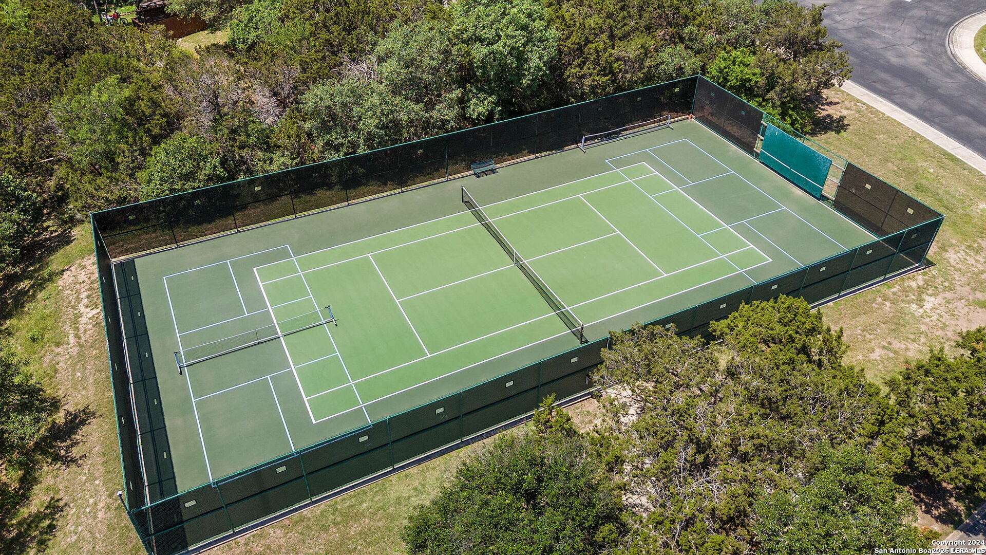 OPEN HOUSE 4/11 1-4PM. This is the home you've been waiting for! Stunning David Weekley home in the coveted Rogers Ranch Crosstimber community, zoned to award-winning NEISD schools. Situated on a beautifully landscaped 0.19-acre lot, the stately curb appeal and mature trees immediately capture your attention. Step inside to discover a thoughtfully updated home that is fresh, inviting, and perfectly designed for modern family living. High-end details throughout include plantation shutters, rich wood & tile flooring, crown molding, custom millwork, updated lighting, and a cozy gas fireplace. The beautifully renovated kitchen is a showpiece, featuring quartzite countertops, a herringbone backsplash, island, stainless steel appliances, double ovens, a gas cooktop, and an oversized breakfast bar. The open-concept floor plan offers seamless flow for everyday living and effortless entertaining. A guest bedroom and full bath on the main level provide the perfect setup for multigenerational living or visiting guests. Upstairs, enjoy an oversized family room, dedicated theater room, and four additional generously sized bedrooms with three full bathrooms. Privately tucked at the back of the home, the primary suite is a true retreat with a fully renovated spa-inspired bath featuring a large walk-in shower, freestanding soaking tub, dual vanities, and an expansive walk-in closet with center island. Outside, relax or entertain on the composite deck and spacious patio overlooking the lush backyard with mature trees and beautiful landscaping. Car enthusiasts and families alike will love the tandem 3-car garage with plenty of room for vehicles, storage, and all the toys. Residents enjoy world-class HOA amenities including a junior Olympic pool, basketball court, tennis and pickleball courts, clubhouse, playgrounds, and soccer field, plus direct access to the Salado Creek Greenway extension with miles of walking, jogging, and biking trails. Conveniently located near premier shopping, dining, and entertainment, this home truly has it all.