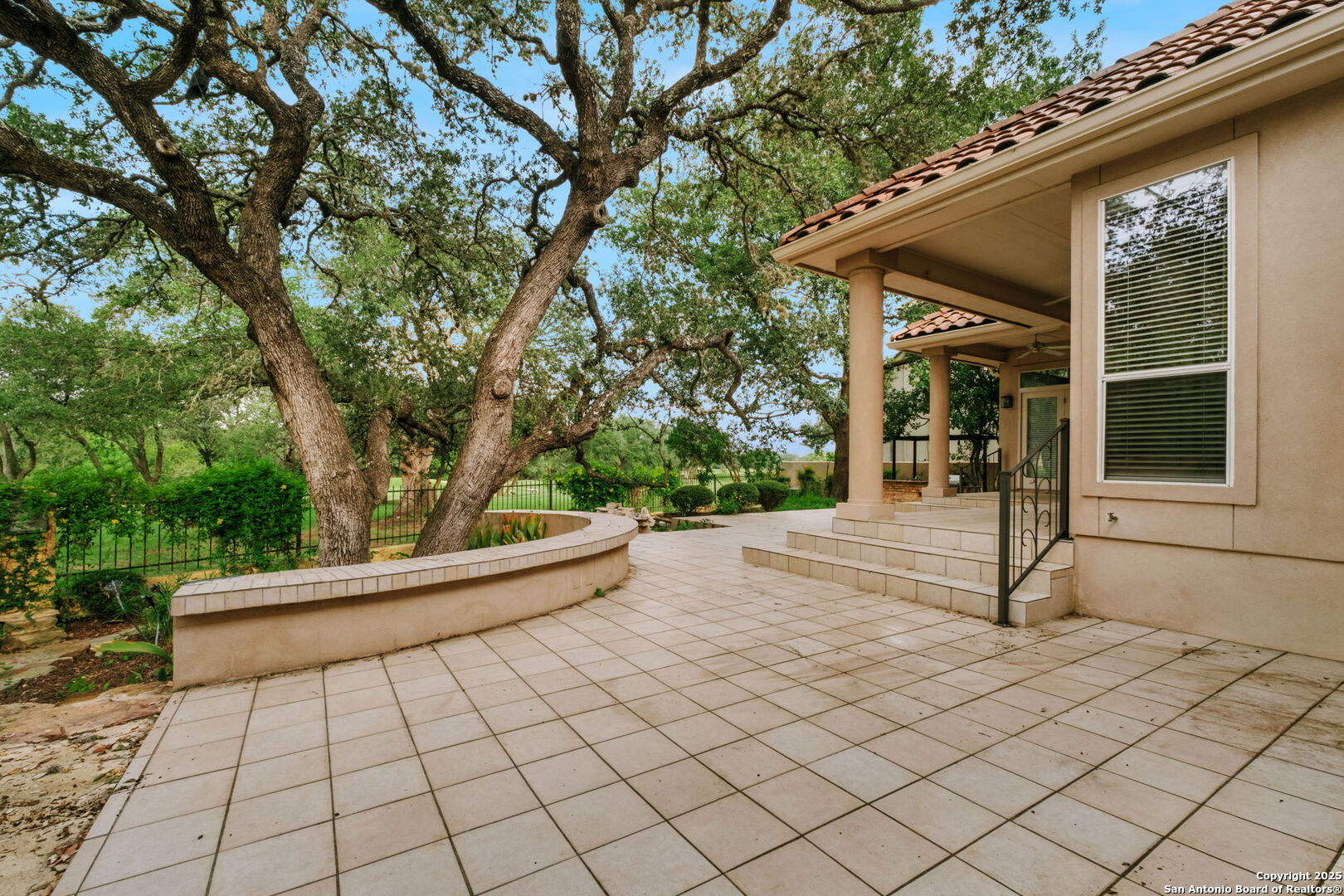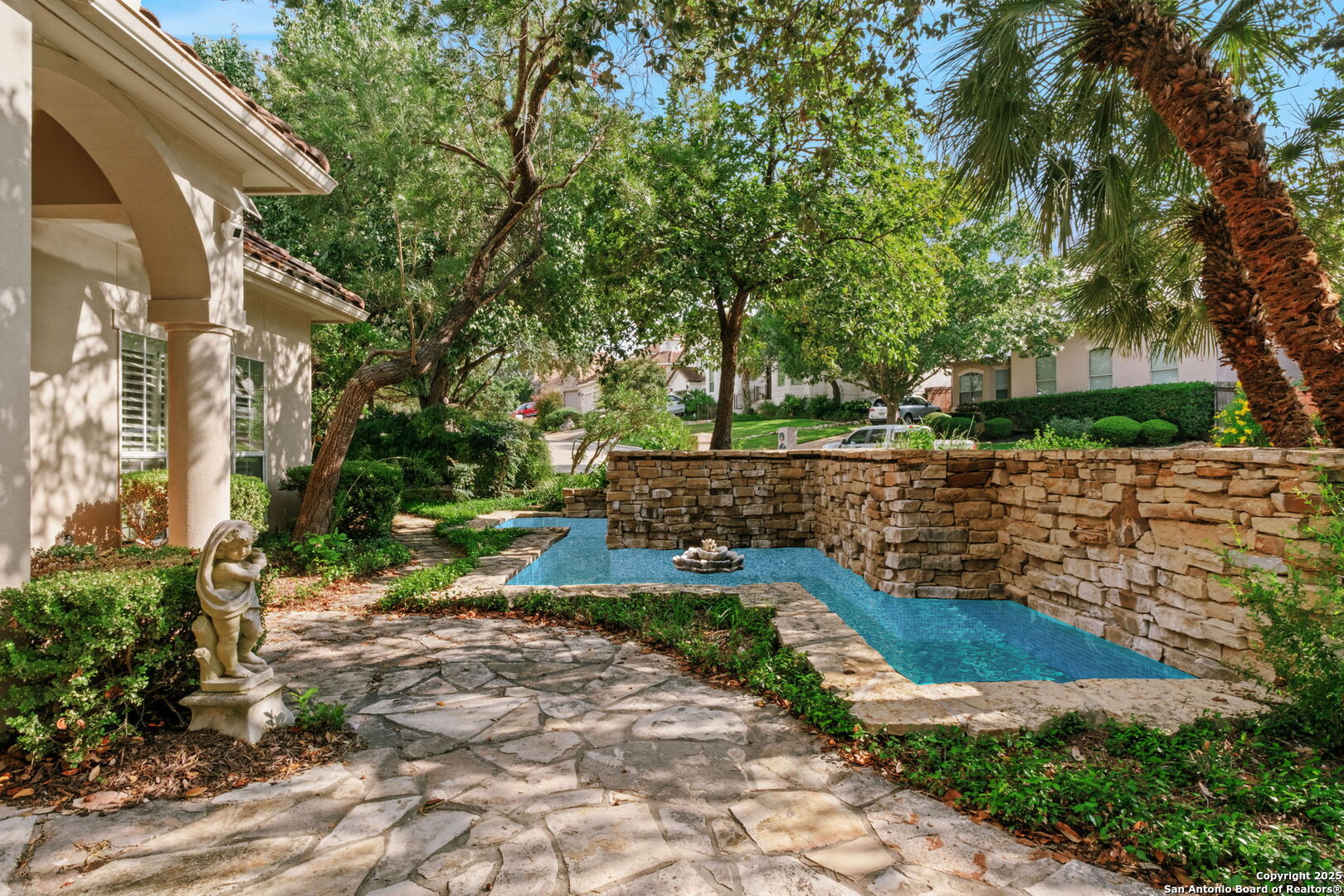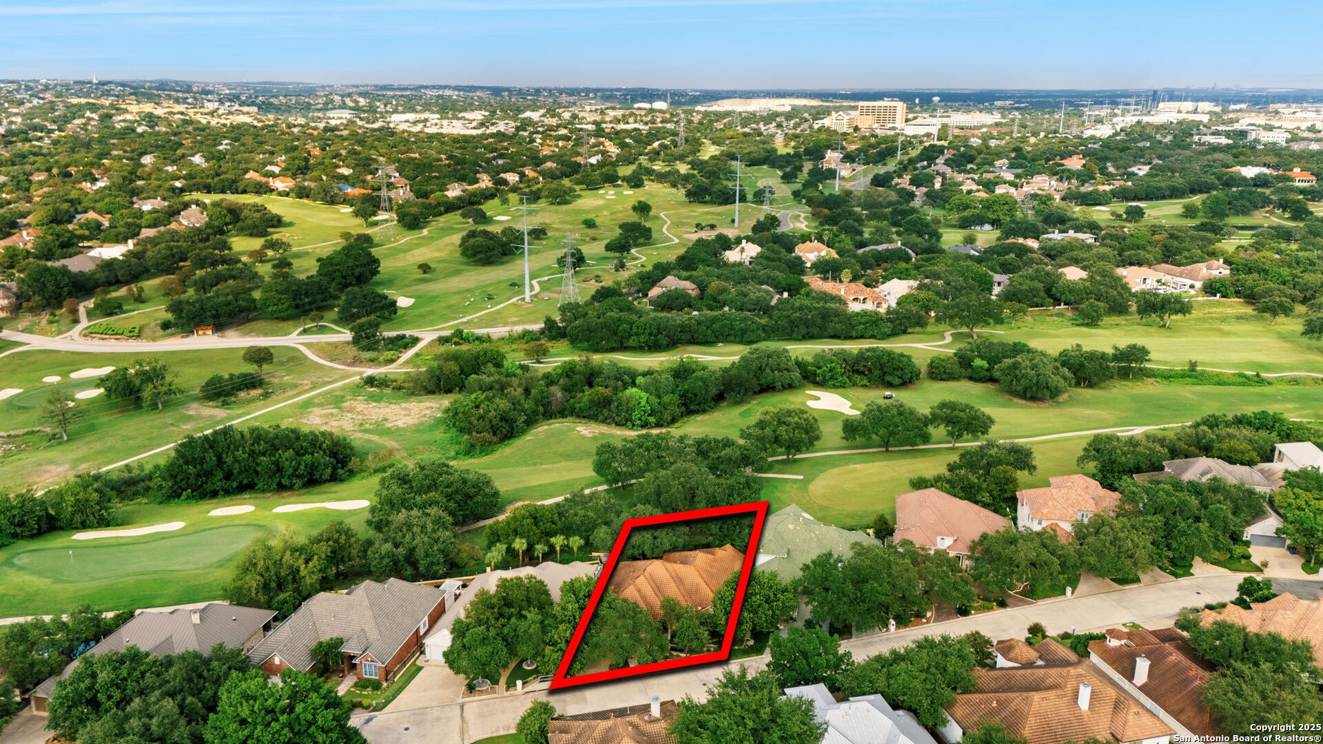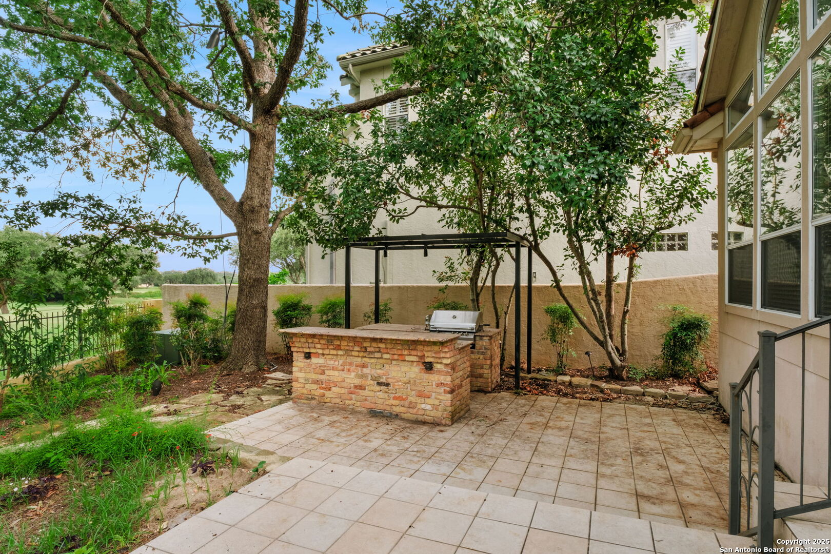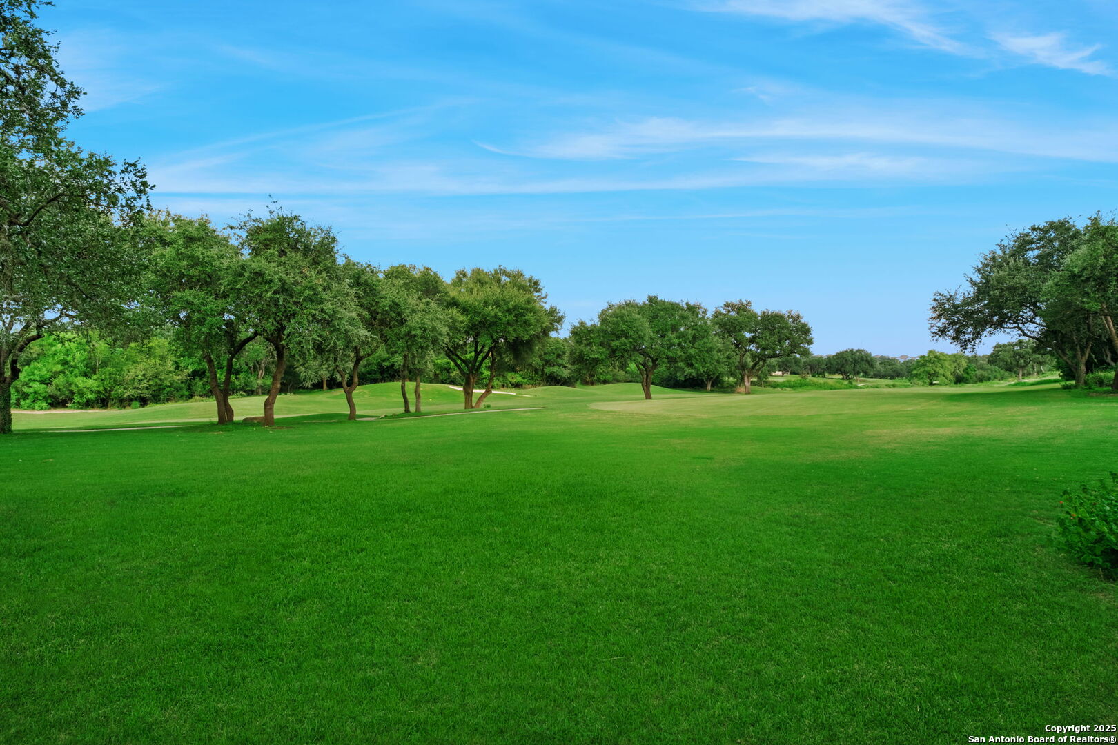 Exquisite single-story residence with 3 bedrooms, 3.5 baths, and over 3,400 sq. ft. in the prestigious gated community of La Cierra at Sonterra. Mediterranean influence paired with thoughtful enhancements throughout creates a warm yet refined atmosphere, highlighted by soaring ceilings, a glass-detailed entry, and an open, flowing floor plan designed for both entertaining and everyday living. The gourmet kitchen offers granite counters, double ovens, and abundant cabinetry, opening seamlessly into the family room with fireplace and custom built-ins. A private study with wood accents enhances functionality, while formal and casual dining areas provide flexibility for gatherings. The serene primary suite features a spa-inspired bath with dual vanities, jetted tub, and glass block shower. Each secondary bedroom offers an en-suite bath, ensuring comfort and privacy. Designed with minimal yard maintenance in mind, the property's outdoor living space includes a tiled terrace shaded by mature trees and overlooking the Sonterra golf course-a tranquil setting for outdoor dining or quiet relaxation. A front water feature, arched windows, and fine millwork further elevate the home's character. Ideally located just north of San Antonio, residents enjoy the exclusivity of Sonterra with close proximity to The Shops at La Cantera, The RIM, and Stone Oak Village, as well as convenient access to major highways. This rare single-level home presents an exceptional opportunity in one of the area's most desirable gated communities.