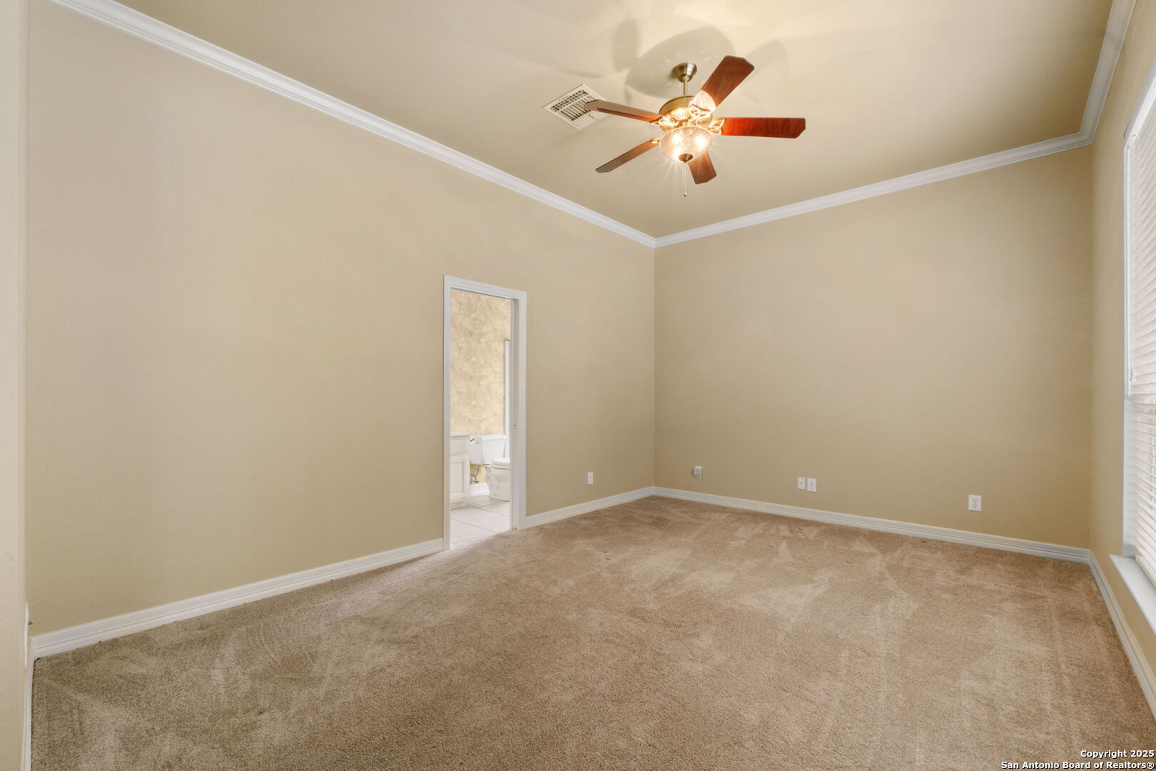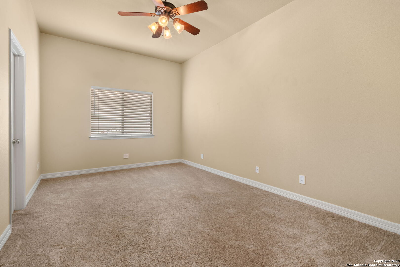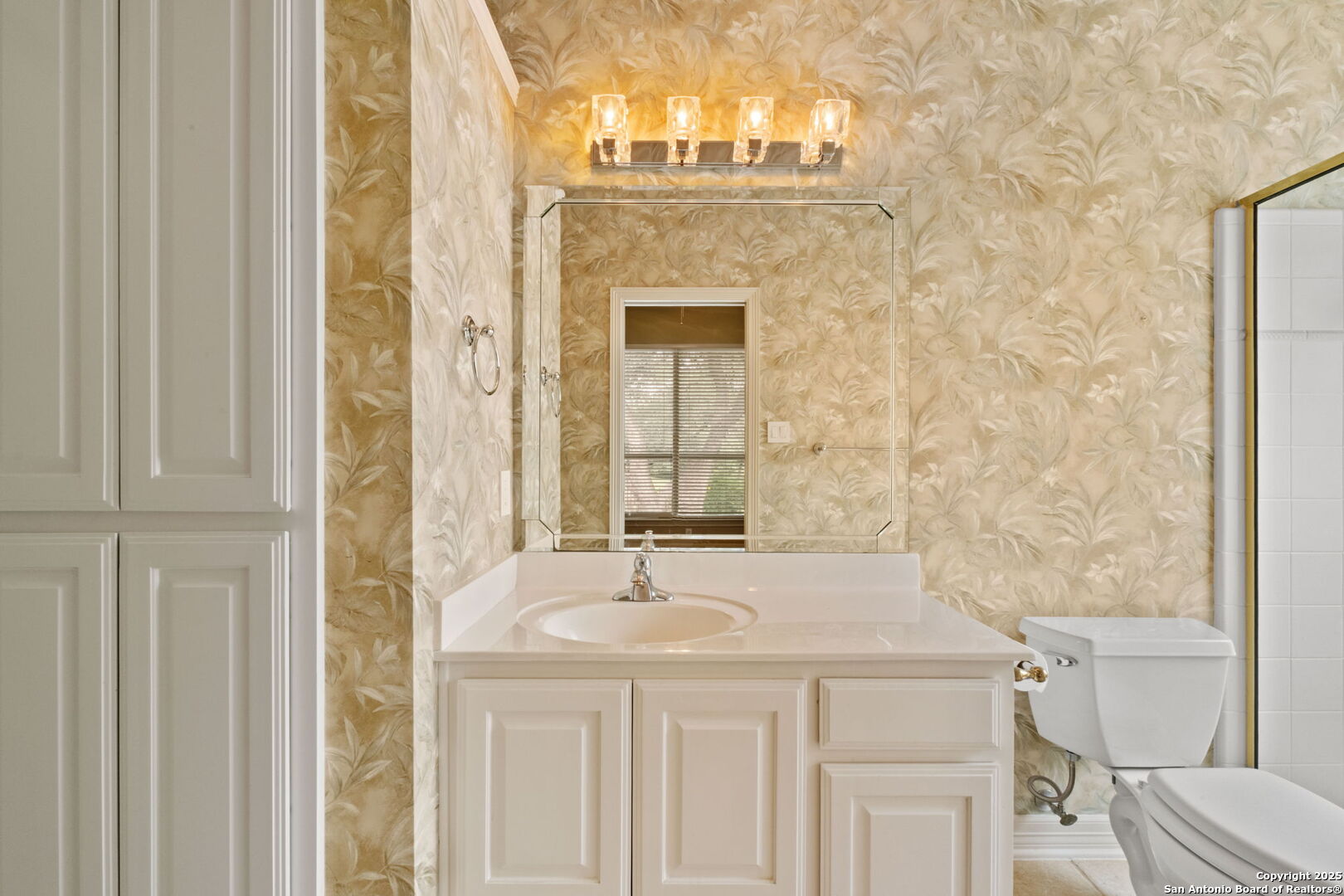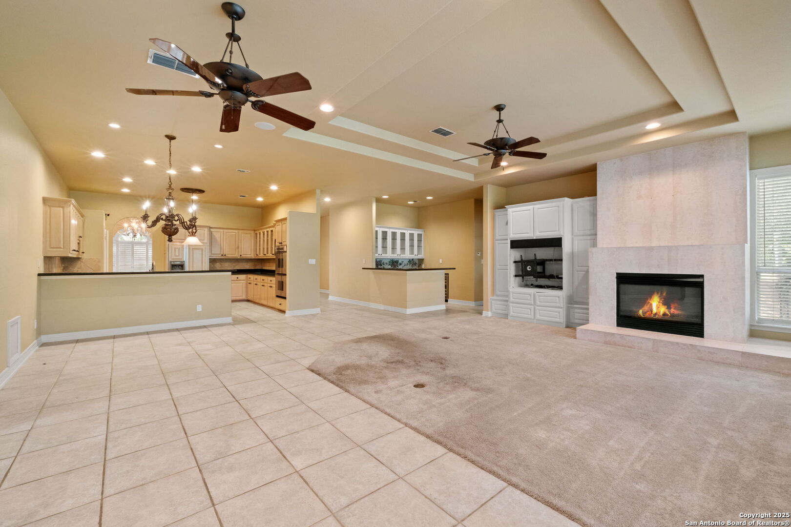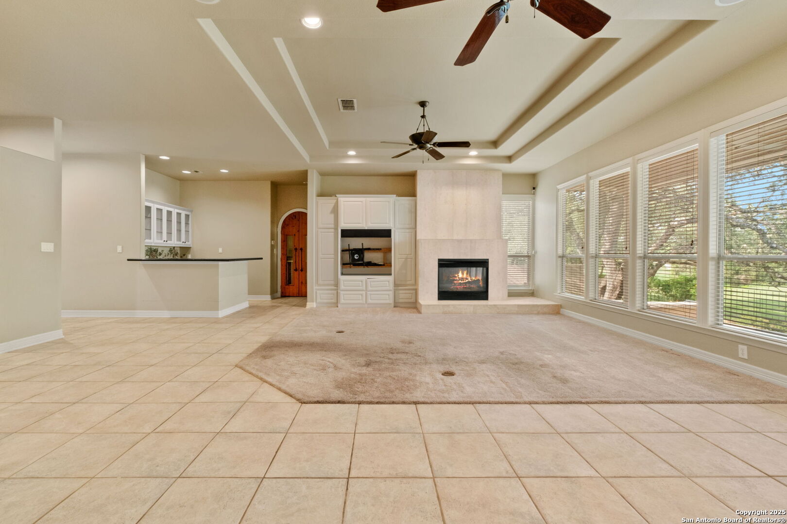 Exquisite single-story residence with 3 bedrooms, 3.5 baths, and over 3,400 sq. ft. in the prestigious gated community of La Cierra at Sonterra. Mediterranean influence paired with thoughtful enhancements throughout creates a warm yet refined atmosphere, highlighted by soaring ceilings, a glass-detailed entry, and an open, flowing floor plan designed for both entertaining and everyday living. The gourmet kitchen offers granite counters, double ovens, and abundant cabinetry, opening seamlessly into the family room with fireplace and custom built-ins. A private study with wood accents enhances functionality, while formal and casual dining areas provide flexibility for gatherings. The serene primary suite features a spa-inspired bath with dual vanities, jetted tub, and glass block shower. Each secondary bedroom offers an en-suite bath, ensuring comfort and privacy. Designed with minimal yard maintenance in mind, the property's outdoor living space includes a tiled terrace shaded by mature trees and overlooking the Sonterra golf course-a tranquil setting for outdoor dining or quiet relaxation. A front water feature, arched windows, and fine millwork further elevate the home's character. Ideally located just north of San Antonio, residents enjoy the exclusivity of Sonterra with close proximity to The Shops at La Cantera, The RIM, and Stone Oak Village, as well as convenient access to major highways. This rare single-level home presents an exceptional opportunity in one of the area's most desirable gated communities.
