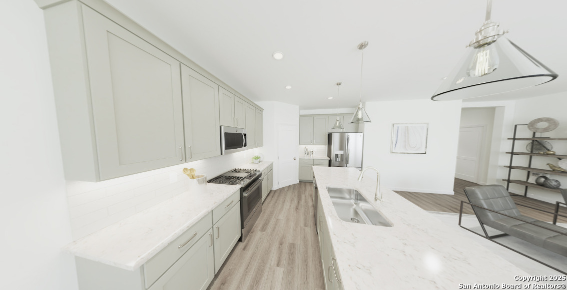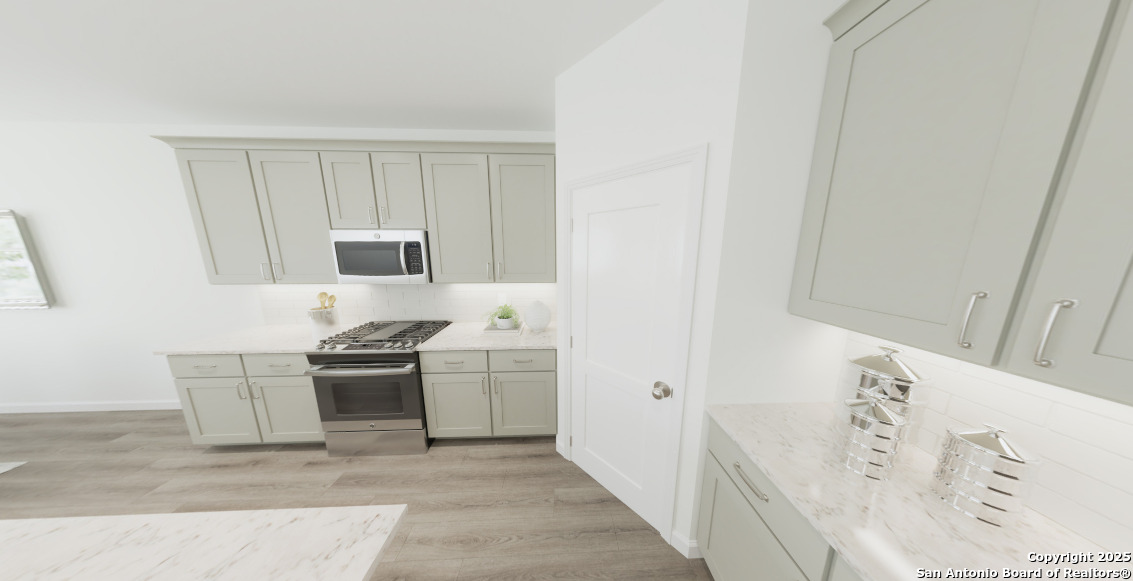 This thoughtfully designed two-story home effortlessly blends modern style with everyday functionality, creating a space that feels both elegant and inviting from the moment you enter. Every detail has been carefully planned to support a lifestyle that balances comfort, connection, and convenience. At the heart of the home, the gourmet kitchen serves as a hub for family life and entertaining. Featuring a spacious center island, built-in appliances, and a walk-in pantry, the kitchen provides the perfect setting for meal prep, casual dining, or hosting gatherings. It flows seamlessly into the family room, where expansive windows fill the space with natural light and frame serene views of the backyard, creating a bright and welcoming environment for both quiet evenings and lively celebrations. A private bedroom and full bath on the first floor offer a comfortable retreat for guests, providing privacy and convenience. Upstairs, the primary suite is designed as a personal sanctuary, featuring a spa-inspired bath with an oversized shower, double vanities, and a generous walk-in closet. Three additional bedrooms and a loft provide plenty of space for a growing family, hobbies, or study areas, ensuring everyone has room to relax and thrive. With its thoughtful layout, modern finishes, and adaptable spaces, this home is designed to grow with you while providing a warm and inviting atmosphere. From quiet mornings to lively gatherings, every corner of this home is built to support everyday living while offering the comfort, style, and functionality your family deserves. This home is part of our Milan Collection-effortlessly chic with a modern European edge. Cool grays, smooth ceramics, and bold decorative accents create a gallery-like feel for artful living. It's sleek yet warm, refined yet welcoming, and always ready for quiet evenings or vibrant gatherings. Milan is where contemporary design meets everyday comfort in perfect harmony. This home is located in The Wilder, a community perfectly positioned with direct access to Loop 1604 and minutes from I-10. Enjoy easy commutes to major employers like Randolph Air Force Base, Amazon, and Brooke Army Medical Center. Planned amenities include a refreshing pool, playground, and cabana-ideal spots to relax and connect. The Wilder offers the perfect blend of convenience, lifestyle, and modern living.