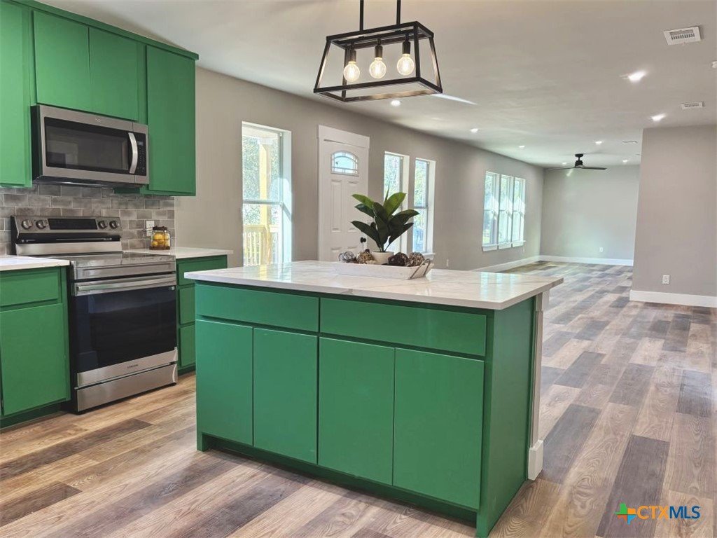 This beautiful 3 bedroom, 2 bath home with approximately 1,520sf of living space has been completely remodeled and offers a seamless blend of style and functionality that is sure to impress! From the sleek fixtures to the high-quality finishes, every detail has been carefully selected to create a space that's both beautiful and functional. New metal roof, central HVAC system, cabinets, flooring, appliances, light fixtures, interior and exterior paint, porches, electrical, plumbing, spray foam insulation, and a huge primary bedroom. The home sits on a large corner lot with a fenced in back yard perfect for family gatherings and relaxation. Come check it out!
