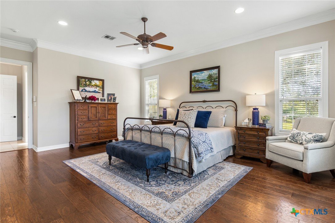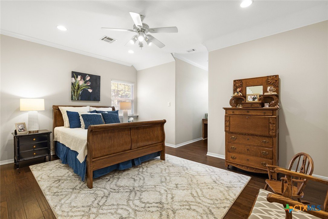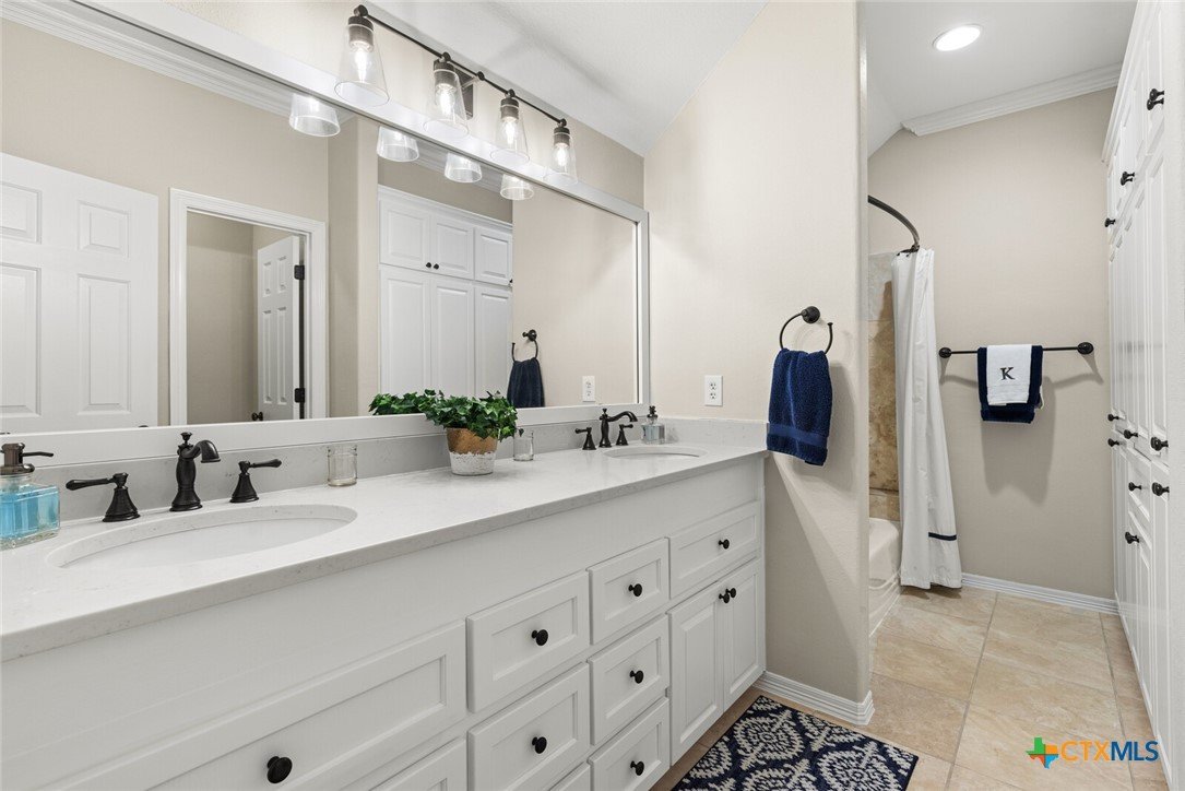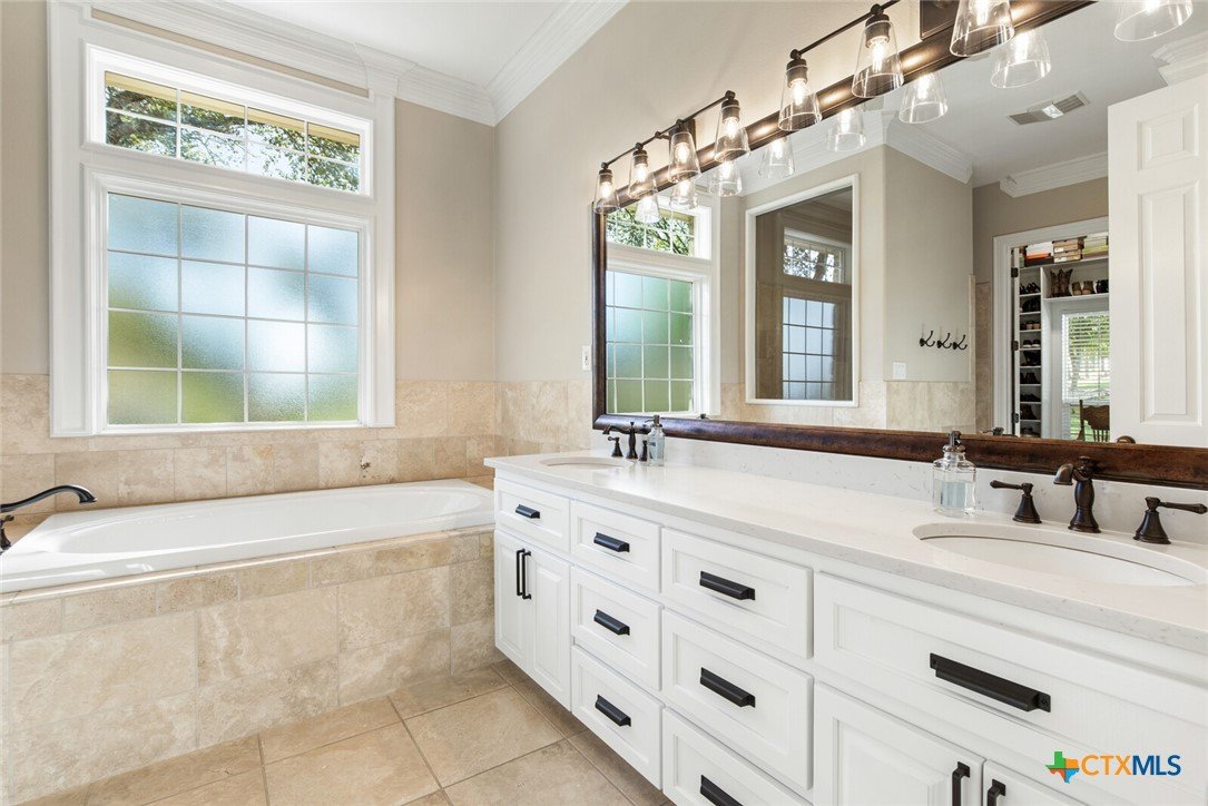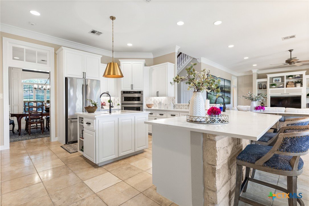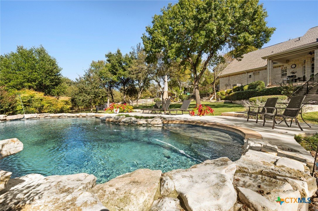 A RARE OPPORTUNITY TO OWN A BEAUTIFULLY UPDATED HOME ON THE LARGEST LOT IN RIVER PLACE ESTATES! This stunning 4-bedroom, 3.5-bath residence offers a timeless design featuring luxurious finishes & modern functionality resting on a very private 4+ acre lot! The spacious layout includes 2 living areas, 2 dining spaces, & a wealth of high-end finishes including deep crown molding, wainscoting, elegant trim work, transom windows over doorways, & plantation shutters all under 10-foot ceilings downstairs & 9-foot ceilings upstairs & over travertine & wood floors. The spectacular formal dining room flows seamlessly into the kitchen where quartz countertops, a stunning tile backsplash, 2 sinks, & stainless steel appliances including gas cooktop & warming drawer, make cooking a pleasure. This open-concept plan creates an inviting atmosphere as the kitchen, dining, & family room share tranquil backyard views, complemented by the cozy warmth of a gas fireplace & a custom-built entertainment center w/decorative shelves & storage. The master suite serves as a true retreat w/backyard views & access & opens into a master bath w/quartz countertops, soaking tub, separate shower, & ample built-ins along w/walk-in closet. 3 secondary bedrooms, including 1 downstairs currently used as a study/flex room, provide generous space for family & guests. The 2 upstairs bedrooms share a double vanity bath & enjoy access to a large game room w/French doors. The game room also includes a kitchenette w/convenient countertop prep/serving bar. The laundry room is a standout, w/dedicated desk space, 1/2-bath, sink, built-in ironing board, & mudroom area w/cubbies & hooks. The deep back porch overlooks a manicured lawn under mature trees, a 15,000-gallon saltwater pool w/waterfall feature, & paved fire pit area w/seating. Both the home & pool are equipped w/a Generac generator for backup power. This extraordinary property offers a rare blend of elegance, comfort, & outdoor living that is hard to beat!