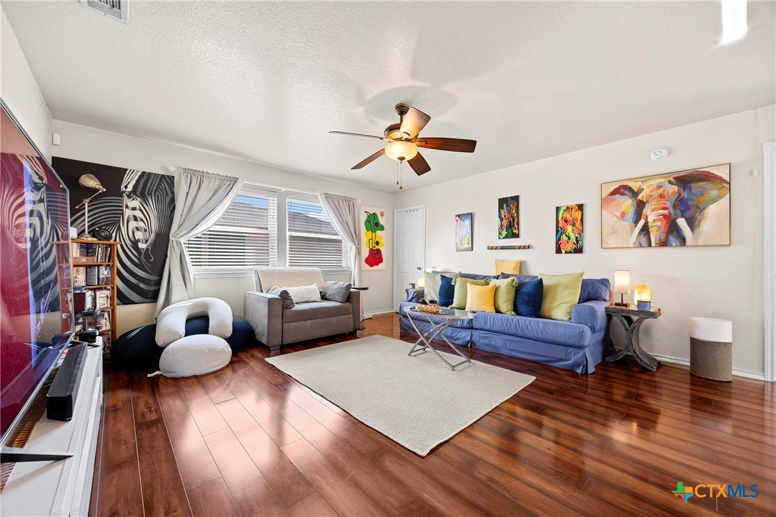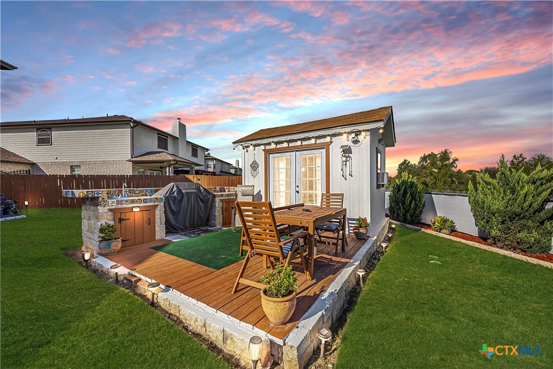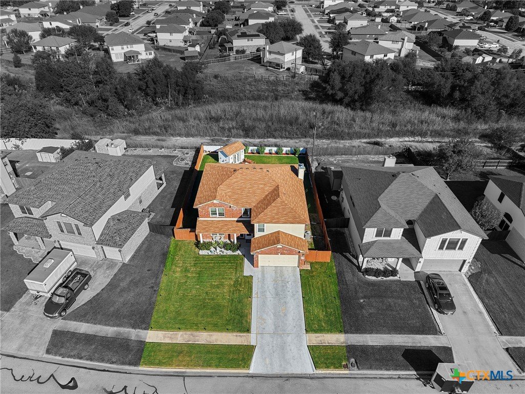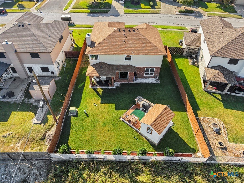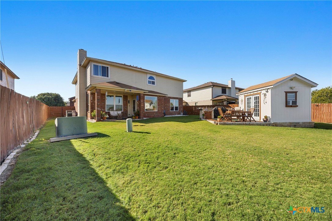 Enjoy your Zen in this spacious family home on a 0.25-acre lot in a quiet, established community near Lions Club Park, with quick access to 195 and I-14 for a mix of shopping/food/, and entertainment. The exterior boasts a charming red brick facade, a covered front porch, and a manicured lawn with a sprinkler system. Inside, the open and functional layout features a formal living room, a family room with a cozy fireplace, and a kitchen with granite counters, stainless steel appliances, and a bright dining area. The main floor also includes a flex room (ideal for an office or guest room), a half bath, and a laundry room. Upstairs, you'll find a massive primary suite with an oversized closet and a bath with a walk-in shower and soaking tub. Two additional oversized bedrooms, each with a walk-in closet, and a large game room complete the second level. The private backyard is a true retreat with a covered porch, a casita (perfect for a studio), and a stone-lined deck—all with no rear neighbors. Recent updates include a new HVAC (2024), roof (2022), new windows, and upgraded floors throughout, offering modern comfort and peace of mind.
