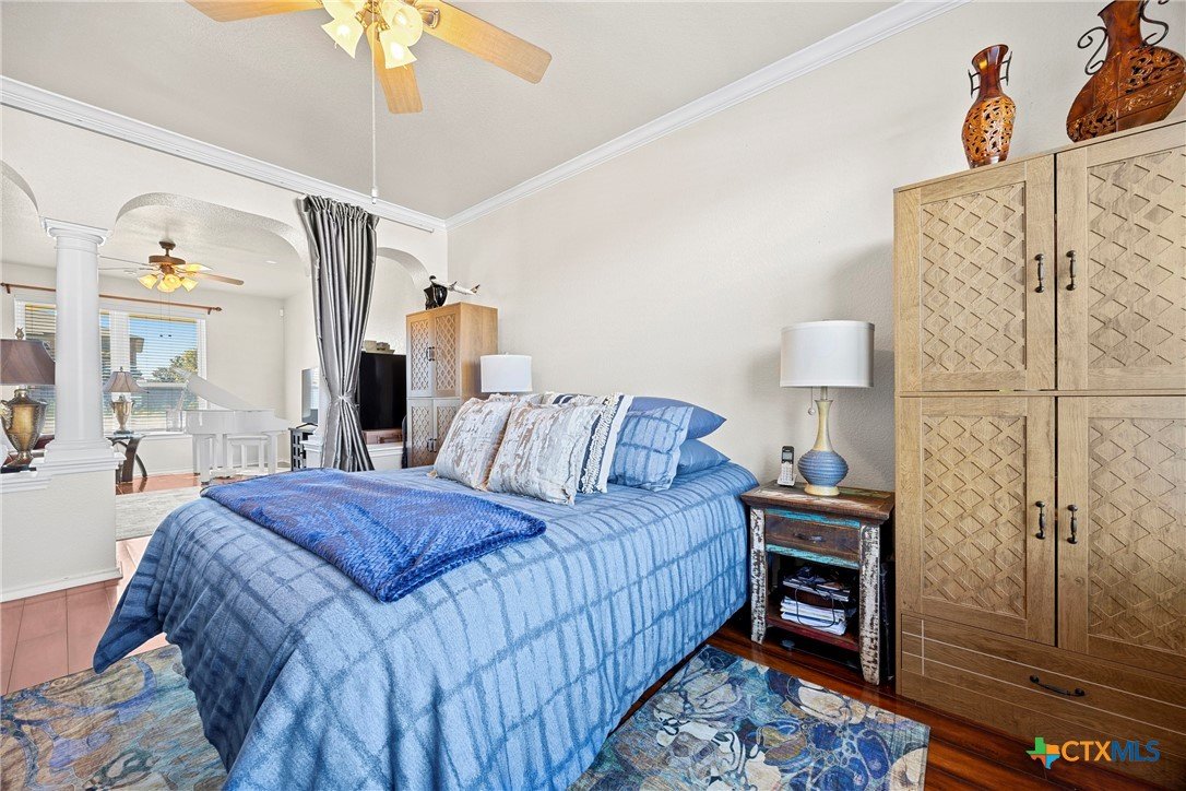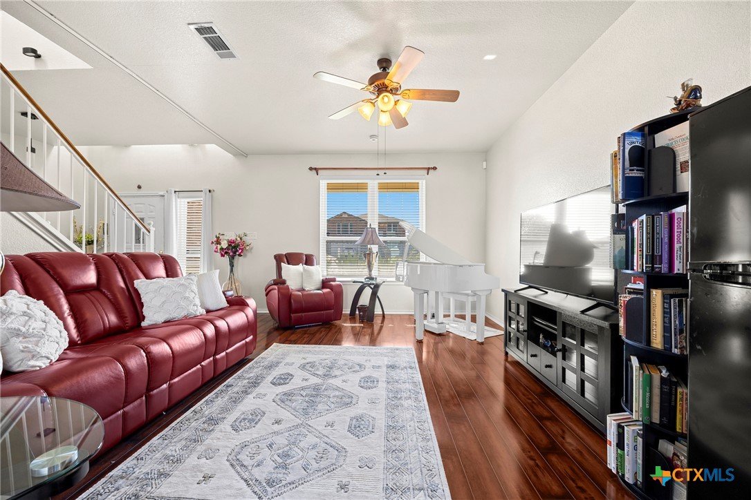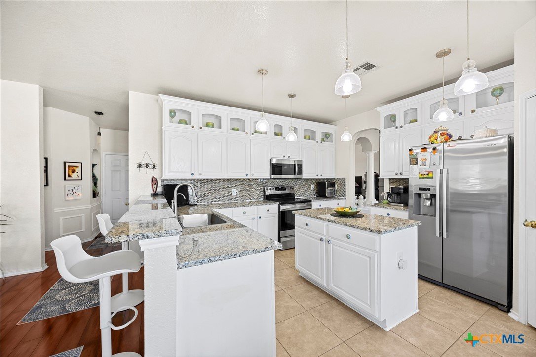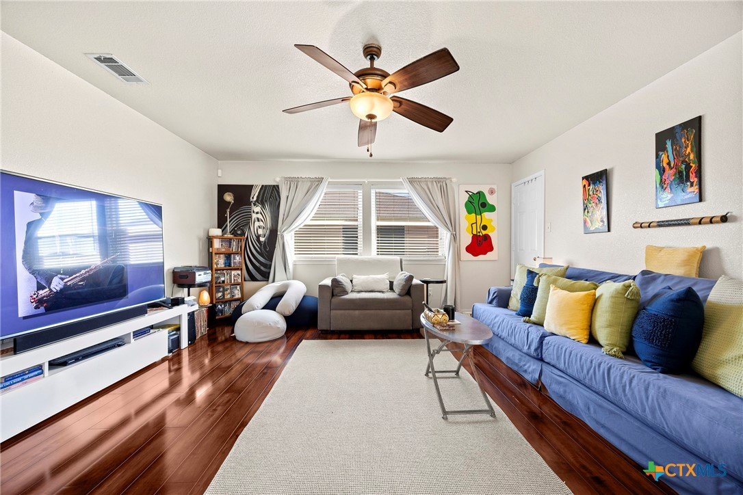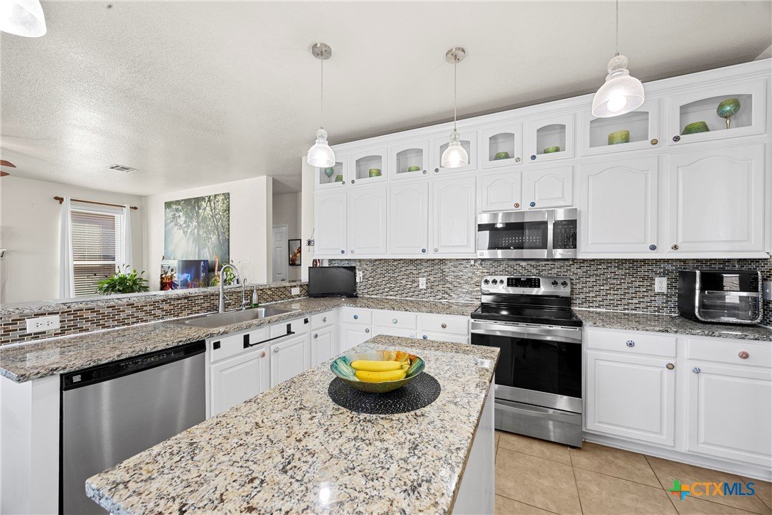 Enjoy your Zen in this spacious family home on a 0.25-acre lot in a quiet, established community near Lions Club Park, with quick access to 195 and I-14 for a mix of shopping/food/, and entertainment. The exterior boasts a charming red brick facade, a covered front porch, and a manicured lawn with a sprinkler system. Inside, the open and functional layout features a formal living room, a family room with a cozy fireplace, and a kitchen with granite counters, stainless steel appliances, and a bright dining area. The main floor also includes a flex room (ideal for an office or guest room), a half bath, and a laundry room. Upstairs, you'll find a massive primary suite with an oversized closet and a bath with a walk-in shower and soaking tub. Two additional oversized bedrooms, each with a walk-in closet, and a large game room complete the second level. The private backyard is a true retreat with a covered porch, a casita (perfect for a studio), and a stone-lined deck—all with no rear neighbors. Recent updates include a new HVAC (2024), roof (2022), new windows, and upgraded floors throughout, offering modern comfort and peace of mind.