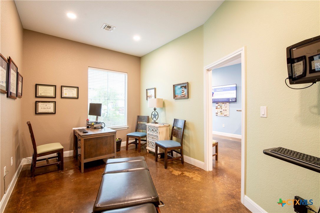 Suite 405 at 1913 Dutton Dr offers a well-designed and professional workspace. It includes a waiting area, four private offices, a spacious media/storage closet, and a private restroom. Features include beautiful stained concrete and soaring ceilings. Located in a thriving Business Condominium Complex, it is 0.5 miles from I-35 and 0.25 miles from the Hays County Government Center, directly across from Christus Santa Rosa Hospital and multiple medical complexes. This suite has a current lease in place for the next 5 years with a tenant that has been occupying the space for the previous decade. Base rent is $20,472/yr with $5.76/yr pass through. Contact listing agent for more details.