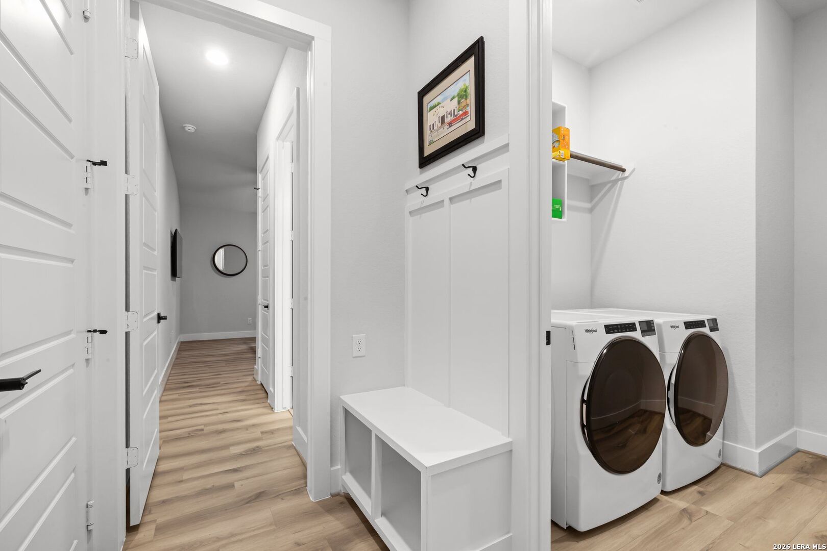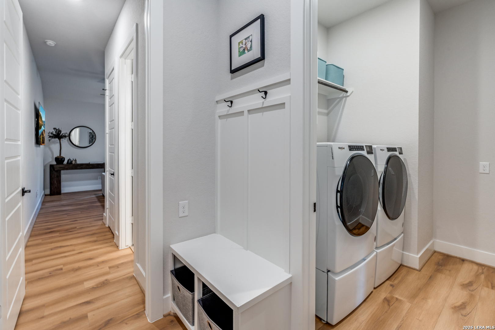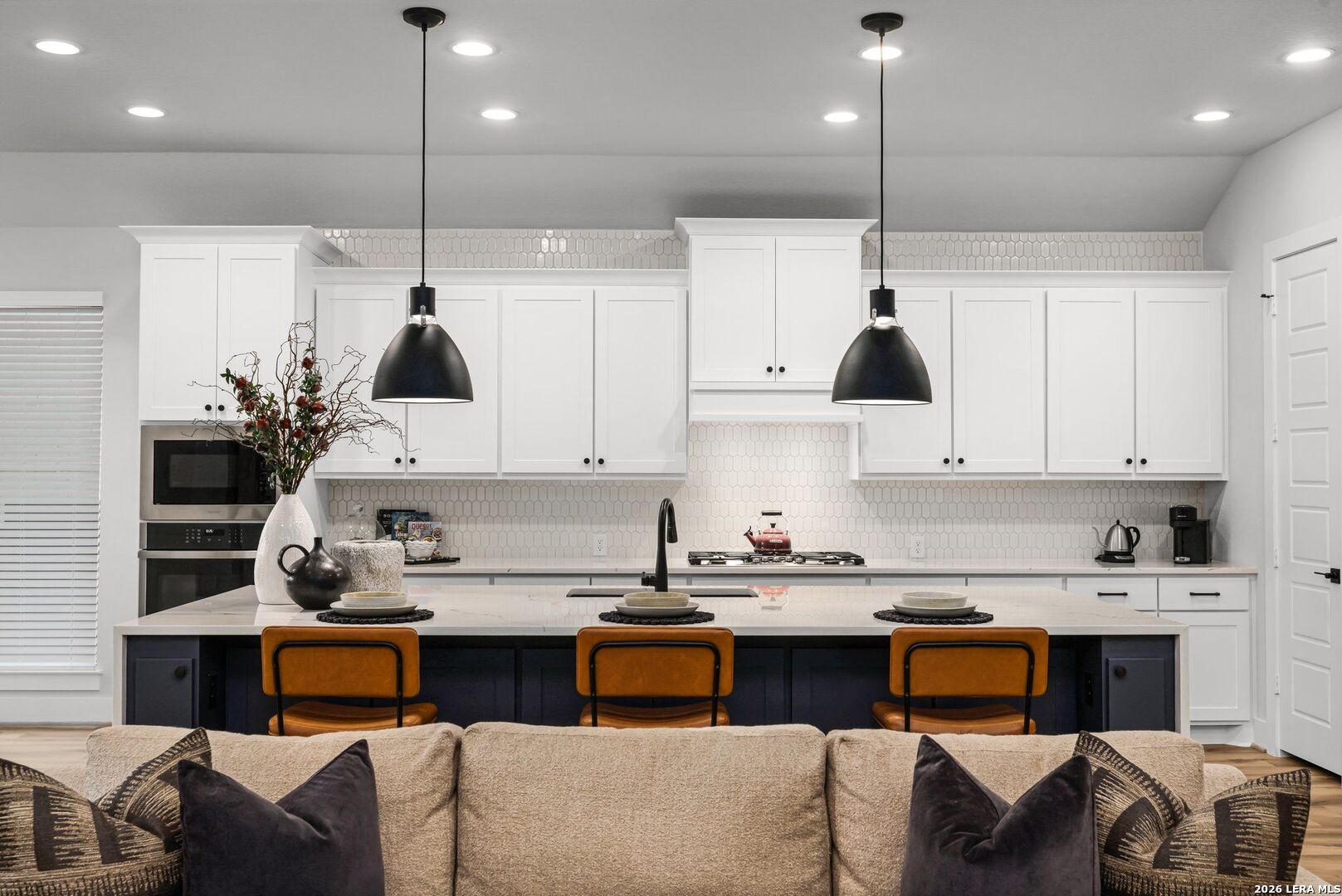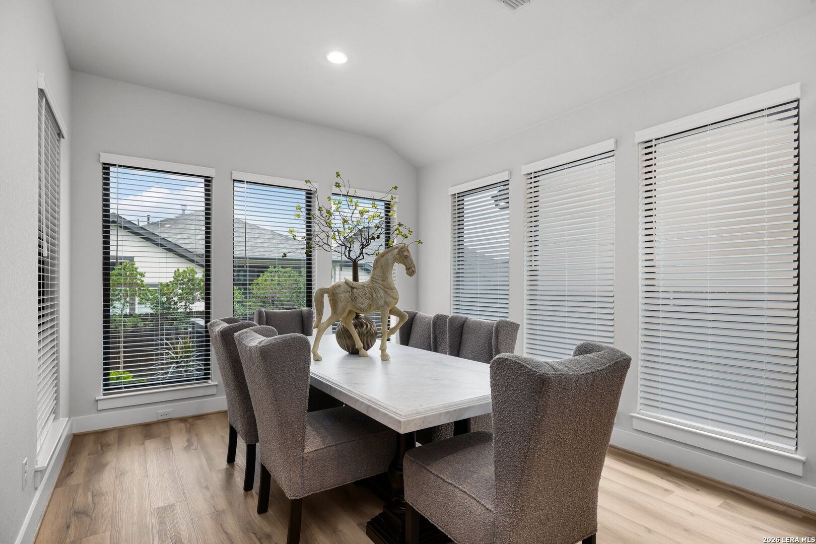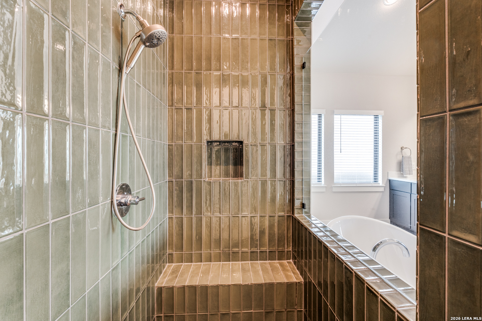 This stunning Perry Homes-built residence, completed in 2023, offers 2,894 sq.ft. of meticulously maintained, single-story living space with remarkable upgrades throughout. The thoughtfully designed floor plan features 4 bedrooms, 3 full baths, 1 half bath, a game room, and an oversized 3-car garage. The rear covered patio has been screened in, seamlessly extending the living area when the multi-slide glass doors are open. The chef-inspired kitchen boasts a large quartz waterfall island and a tile backsplash that reaches the ceiling. The living room is highlighted by a sleek, modern gas linear fireplace with a tile facade extending to the ceiling. In the spacious primary suite, you'll find soaring vaulted ceilings. The primary bath is a true standout, with dual vanities, a full tile wall, a freestanding soaking tub, and a custom-tiled walk-in shower. Two separate walk-in closets with custom built-ins ensure ample storage. Upgrades include professional-grade epoxy garage floors, full gutters, a complete home alarm and automation system, a water softener, ceiling fans throughout, and much more. The home is ideally located with a greenbelt in front and within walking distance to the community swimming pool and restaurant. Don't miss the chance to make this exceptional home in the prestigious Veramendi community yours!