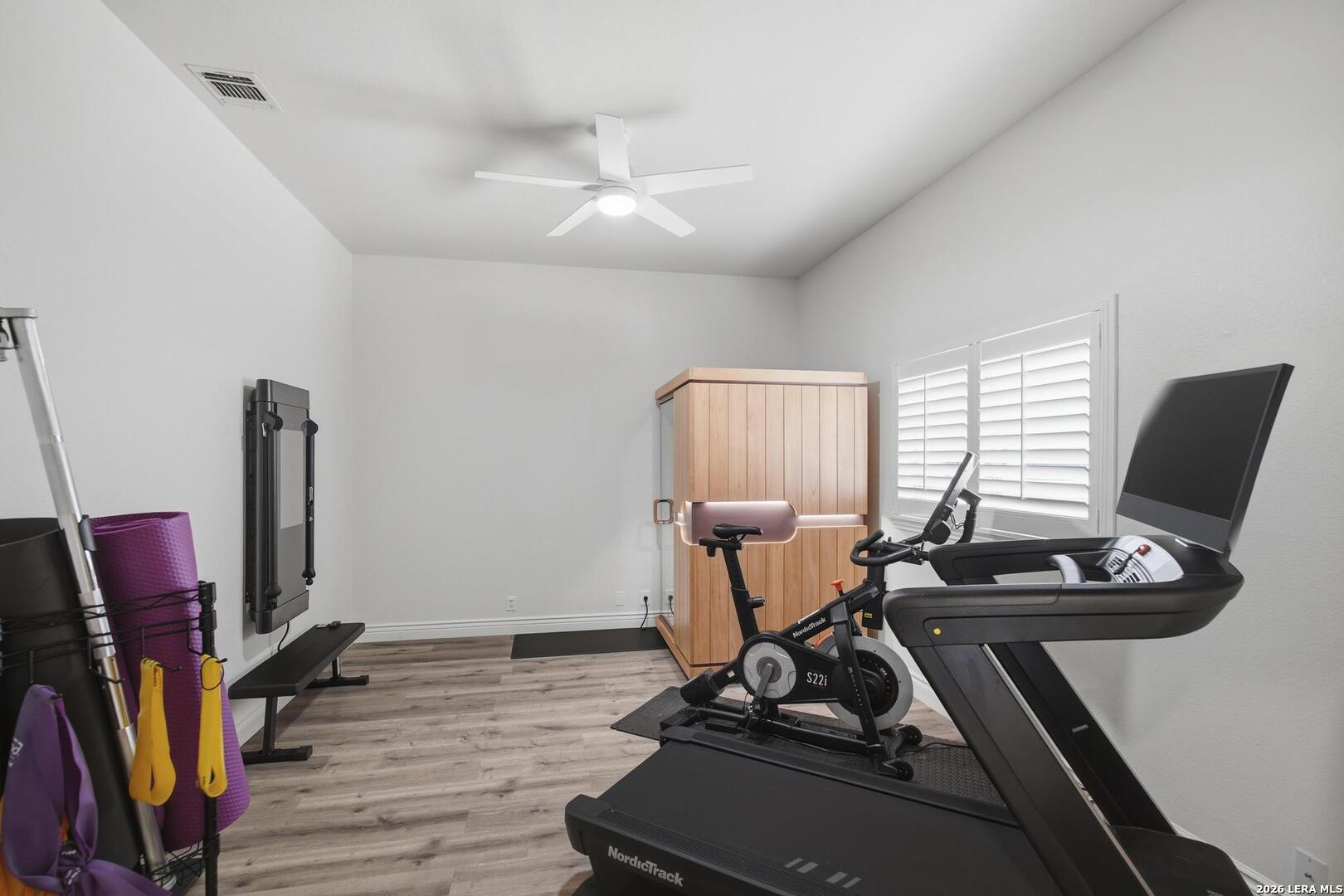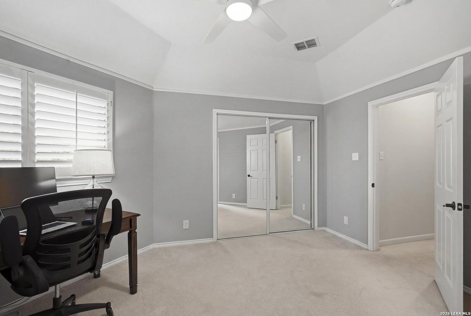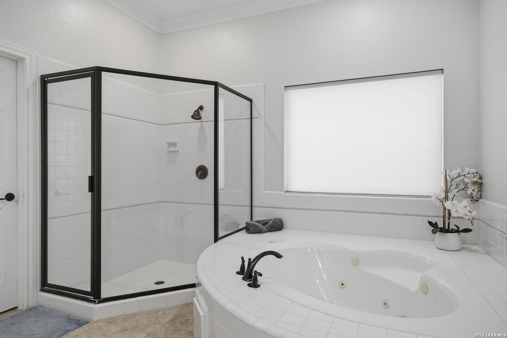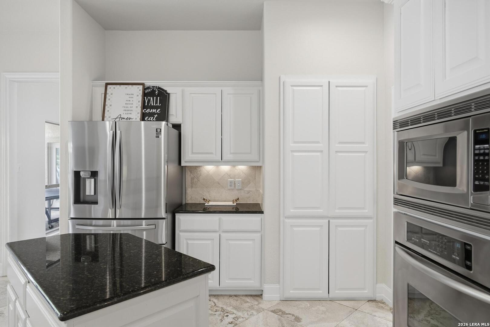 Welcome to this captivating, custom-built Burdick home located in The Fairways of Sonterra. This meticulously maintained 5-bedroom, 4.5-bath property blends timeless sophistication with a neutral color palette and natural materials, creating a welcoming ambiance throughout. The main floor features an exquisite primary suite, a secondary bedroom with a full bath (which could make an excellent office/study), formal dining and formal living room - all enhanced with elegant Plantation Shutters. Enjoy an open-concept layout with a dream kitchen, complete with stainless steel appliances, a spacious island, and abundant counter space, perfect for entertaining. The breakfast area and great room offer a warm, corner fireplace and large, sparkling windows that let natural light flow in throughout this home. Upstairs, discover three generously sized bedrooms, including one with its own private bath. The oversized garage provides ample space for vehicles and a golf cart, ensuring convenience for golf enthusiasts. Step outside to the expansive, private backyard designed for both relaxation and recreation. Enjoy cool breezes on the covered patio, a sparkling heated pool with spa and tranquil waterfall, and a private sport court/pickleball court for endless fun. Recent updates include a new main floor Water Heater, a new High Efficiency Water Softener system, a new Garage Door, Epoxy flooring in the garage, new Carpet in the master bedroom, LED lights, new Ceiling Fans, and more. This exceptional home offers the perfect blend of luxury and comfort - making it a place you may want to make your own.