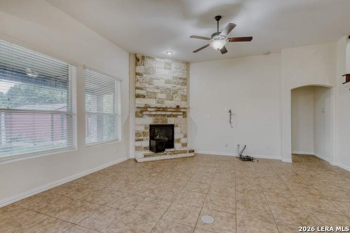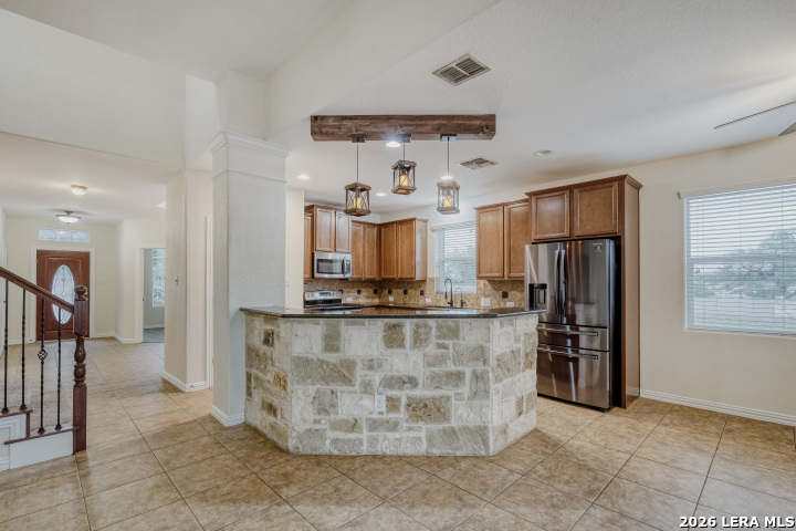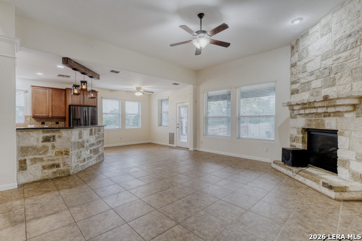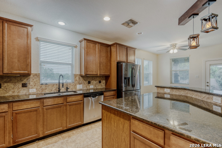 This home truly checks all the boxes. The primary suite and laundry room are conveniently located downstairs, along with a quiet office featuring a tray ceiling-perfect for working from home. The living area offers a stunning gas fireplace with floortoceiling stone, and the spacious kitchen provides ample cabinet storage for effortless everyday living. Upstairs, enjoy a prewired movie theater room and a separate game room, giving you dedicated spaces for entertainment and play. The extended back patio offers plenty of room for outdoor dining and comes equipped with water and gas lines, ready for the outdoor kitchen or BBQ setup of your dreams. Families will appreciate the unbeatable convenience of having both the elementary and middle schools located right within the community. A fantastic blend of comfort, function, and lifestyle.
