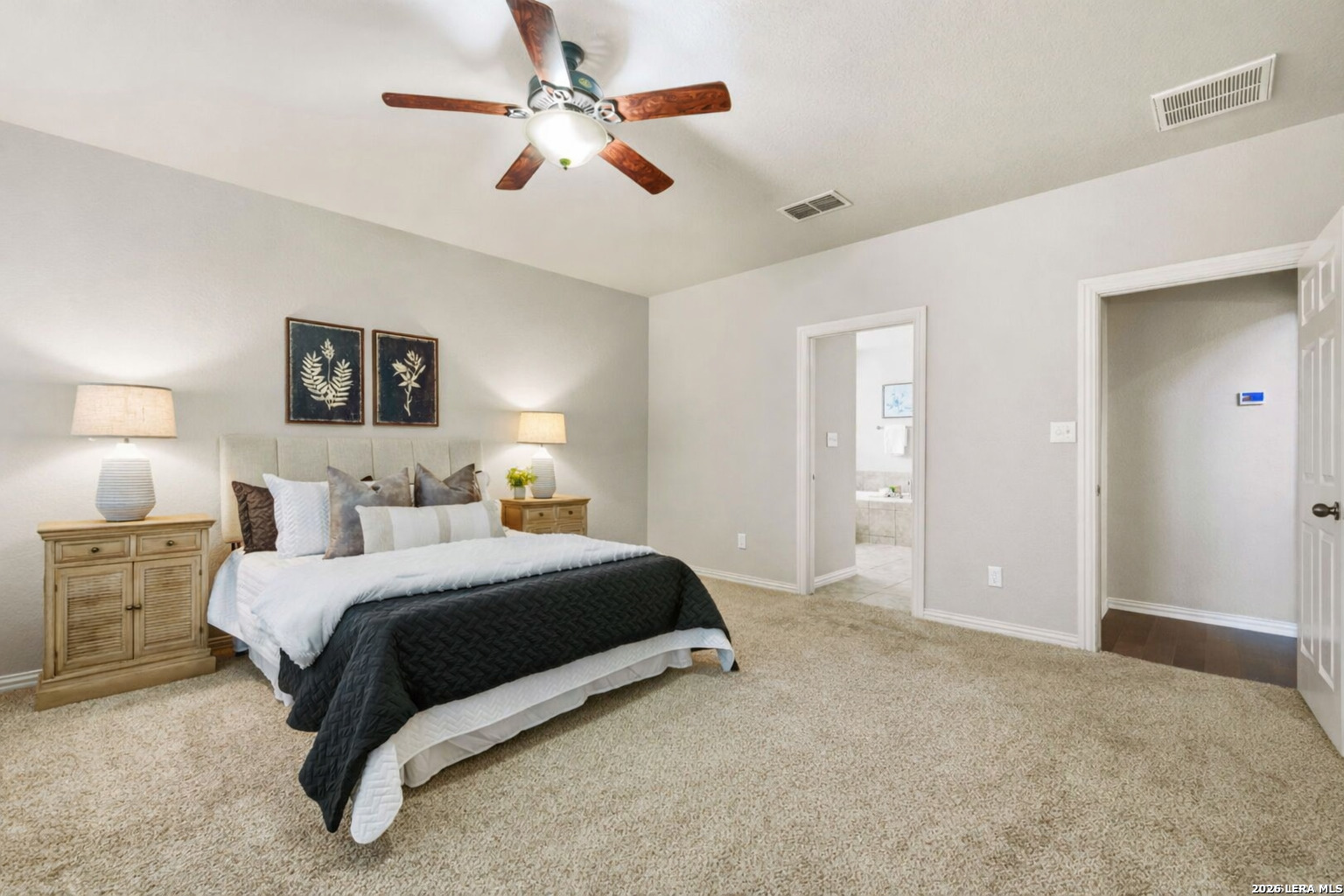 Exceptional opportunity in the gated community of Kinder Ranch-offering a rare advantage in today's market with a VA assumable loan at an incredible 2.75% interest rate (for qualified buyers). Situated on a generously sized lot, this beautifully maintained David Weekley home delivers the space, upgrades, and value buyers are searching for-without the wait or added expense of new construction. Step inside through a custom iron door into a grand foyer featuring rich bamboo flooring and a light-filled interior. The impressive two-story family room showcases soaring ceilings, plantation shutters, and an open-concept design ideal for both everyday living and entertaining. The thoughtfully designed kitchen offers a breakfast bar, eat-in dining space, and seamless flow into the main living areas, complemented by surround sound throughout the downstairs. A separate dining room provides flexibility for formal gatherings or could be used as a flex room. Enjoy outdoor living at its finest with an expansive covered patio, basketball pad, and a spacious backyard-perfect for entertaining or relaxing in your own private retreat. Located within highly sought-after Comal ISD, this home combines lifestyle, value, and location-making it a standout option in a neighborhood where homes are competing with new construction. Motivated seller-bring your buyers.
