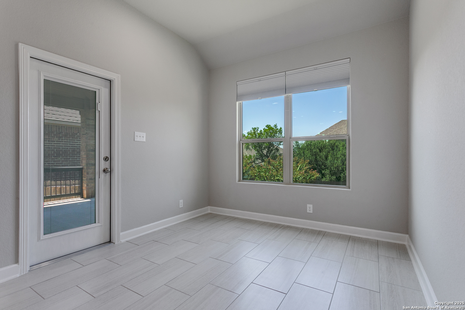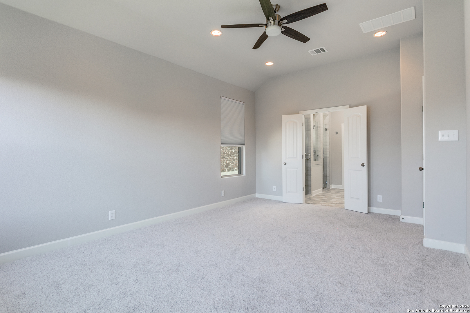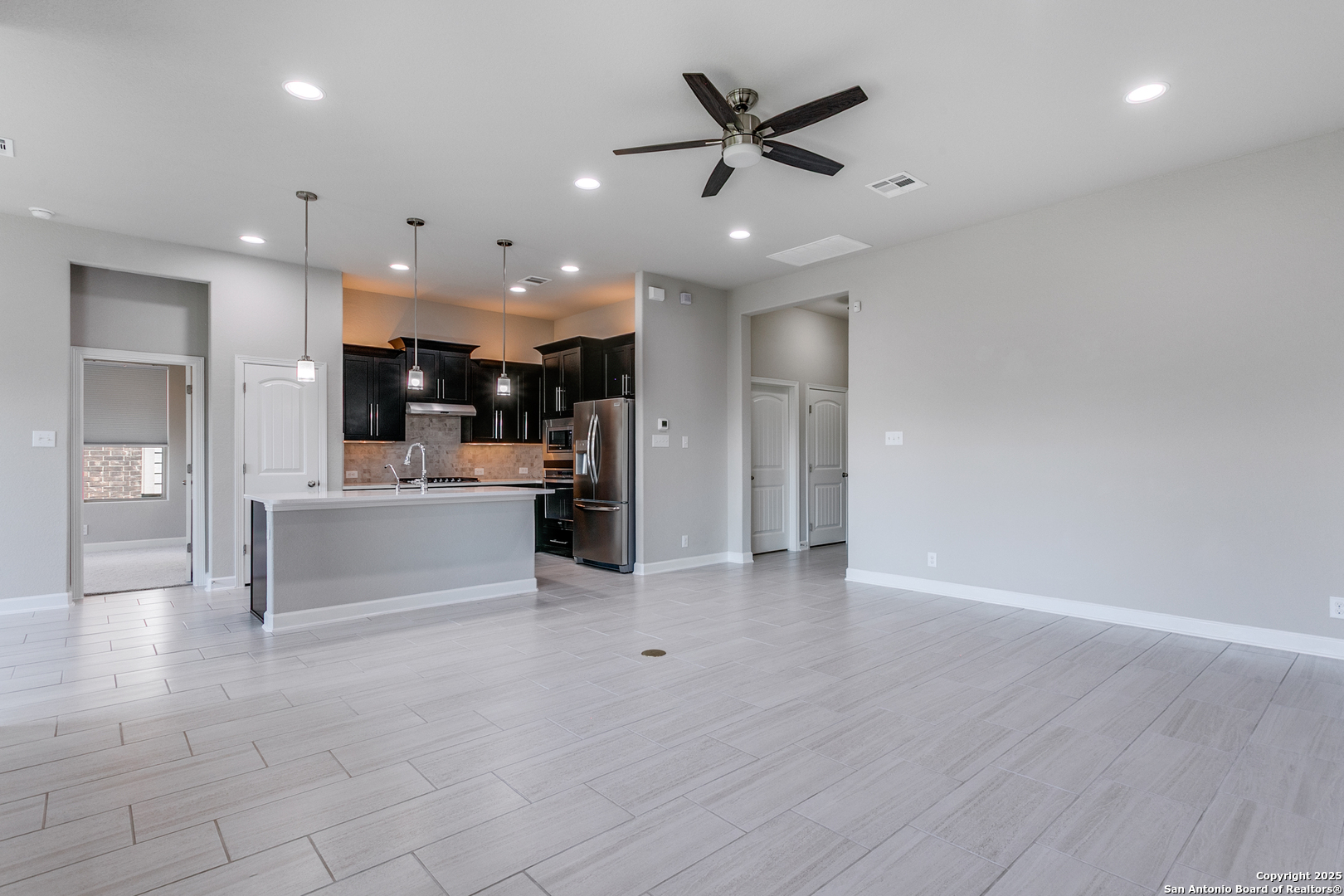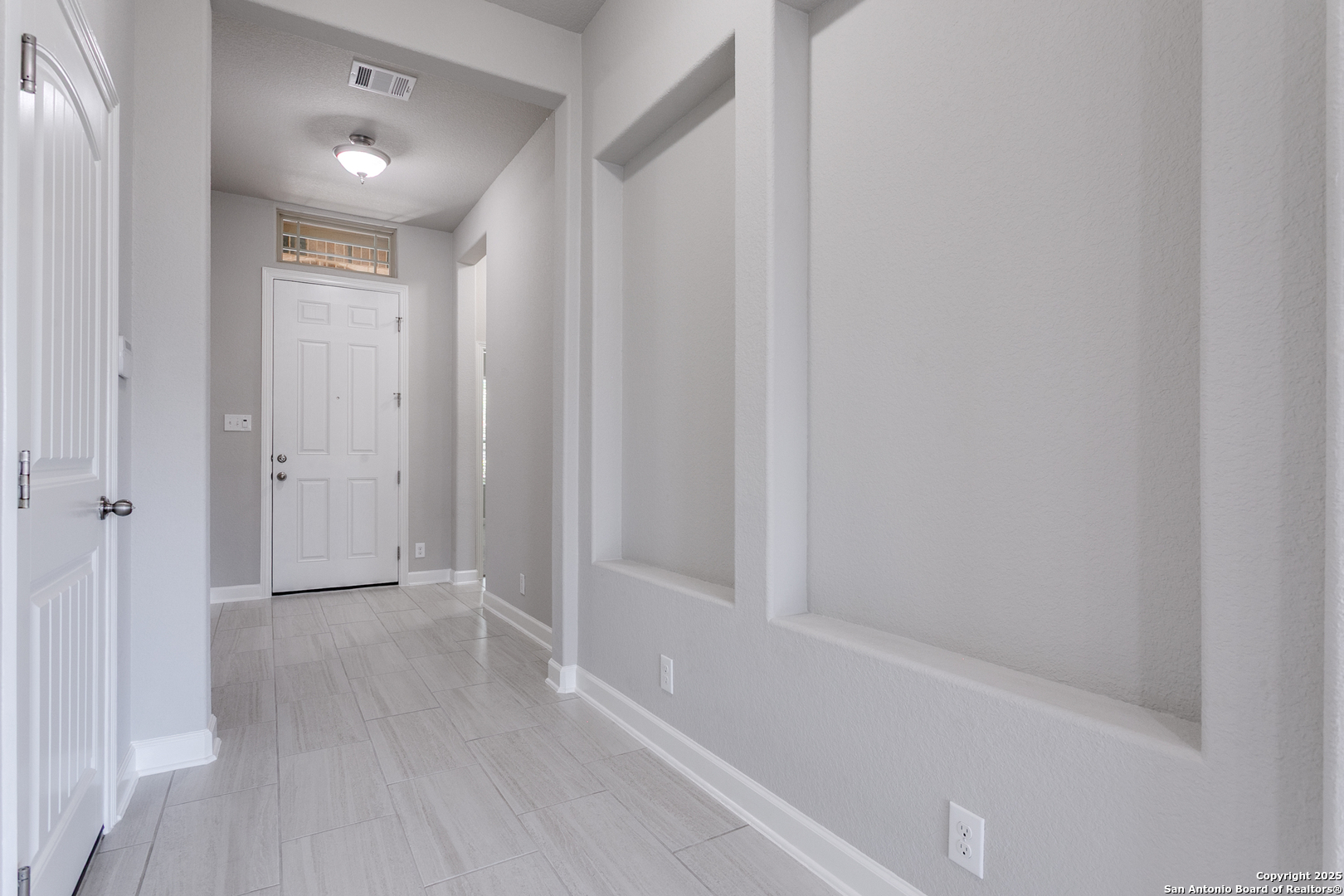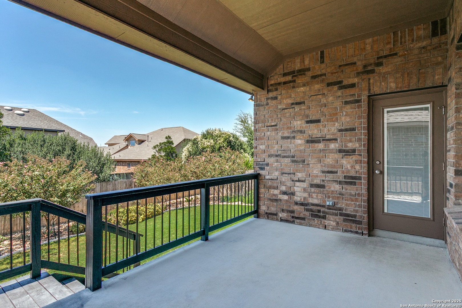 Beautiful Ashton Woods all-brick 1-story offering 1,760 sq.ft. of stylish living space in popular Arcadia Ridge. This thoughtfully designed 3-bedroom, 2-bath home lives better than new, showcasing numerous upgraded designer touches throughout. An inviting entry hallway with large art niches and offset tile floors sets the tone, with brand new carpet only in the bedrooms for added comfort. Custom top-down/bottom up window coverings add both elegance & functionality. The open, airy floor plan is filled with natural light, drawing your eye to the beautifully landscaped backyard from the family room. The gourmet island kitchen is a true centerpiece, complete with gas cooking, sleek solid-surface countertops, an eye-catching tile backsplash, stainless steel appliances (refrigerator included), and abundant cabinetry. The spacious primary suite is a private retreat, featuring a spa-like bath with dual vanities, gorgeous 2-sided entry frameless glass shower with dual shower heads, built-in bench seating, and elegant floor-to-ceiling tile complemented with its lovely designer tiled floor. A generous walk-in closet offers plenty of space for wardrobe needs. Split secondary bedrooms provide privacy and flexibility. Step outside to the covered patio, perfect for entertaining or relaxing while enjoying the lush landscaping and serene evening views. Full sprinkler system, gutters & H2O softener included. Unbeatable location with highly regarded NISD schools, quick access to major highways, shopping, dining, employment centers, and Lackland AFB.