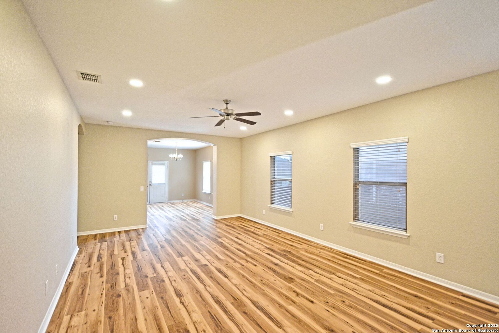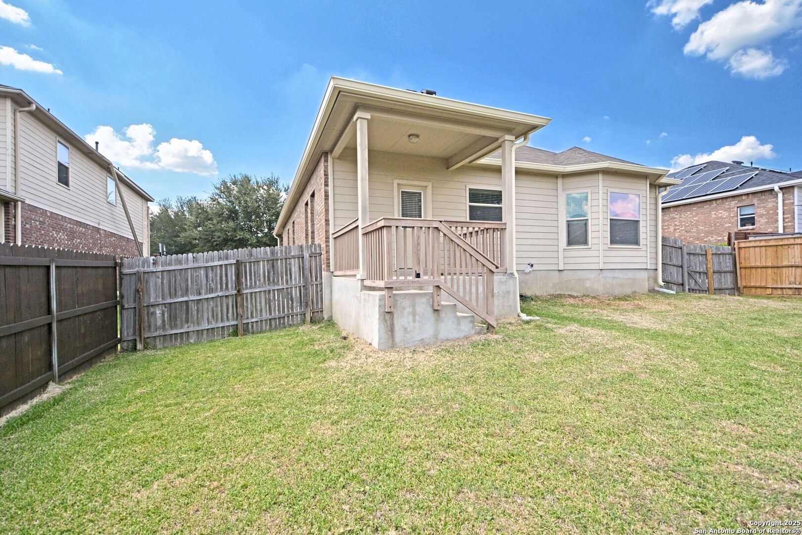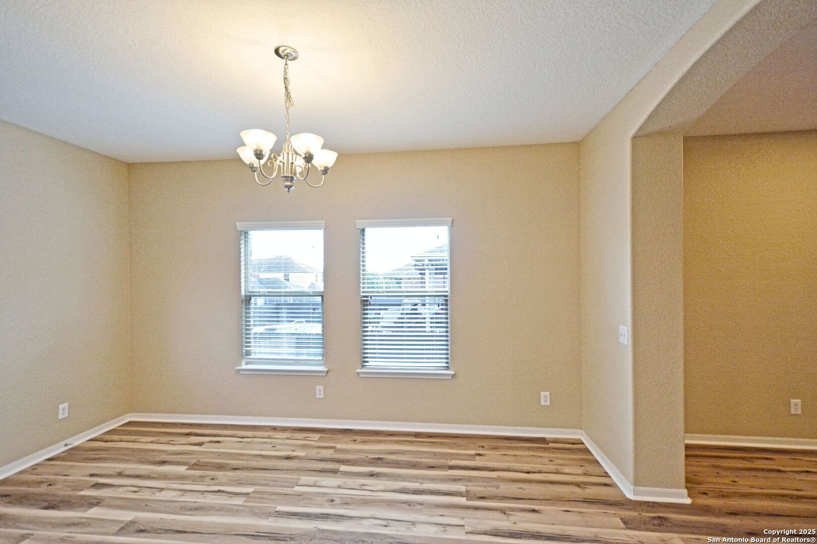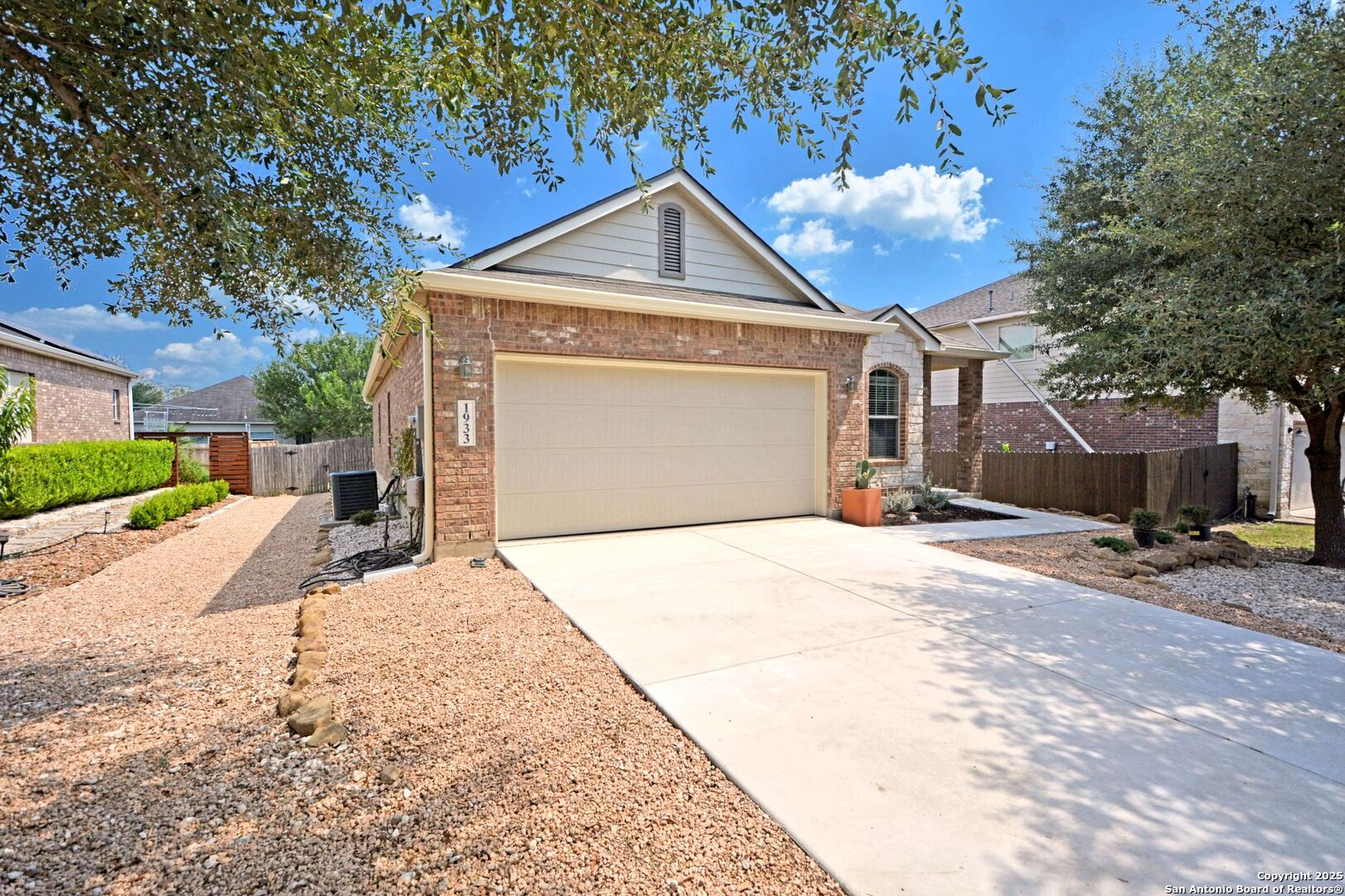 Witness this stylish 3 bed/2 bath stone veneer home with a well shaded front yard that is thoughtfully xeriscaped. Enter into the spacious living room arched entryways and wood-style vinyl flooring that guides you to each room. The island kitchen features dark granite countertops, pantry, and dining area. Check out the primary bedroom with bay windows. Melt your cares away in the primary bathroom suite with garden tub, tiled stand-up shower, and dual sinks. Kick off your shoes and relax underneath the covered porch overlooking the private backyard.