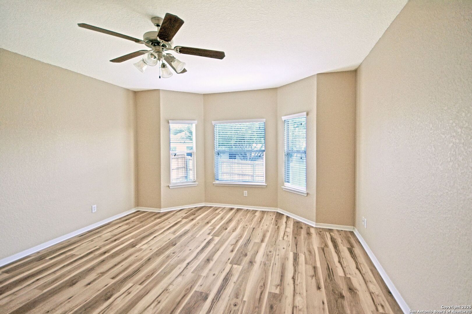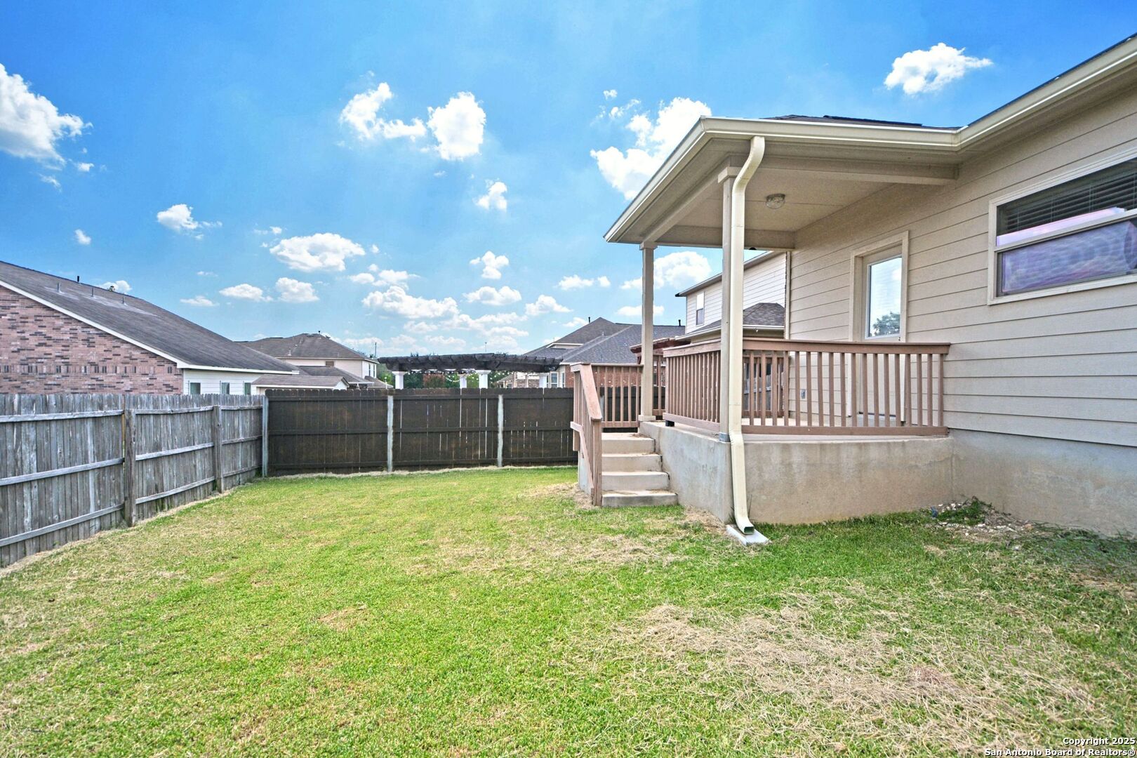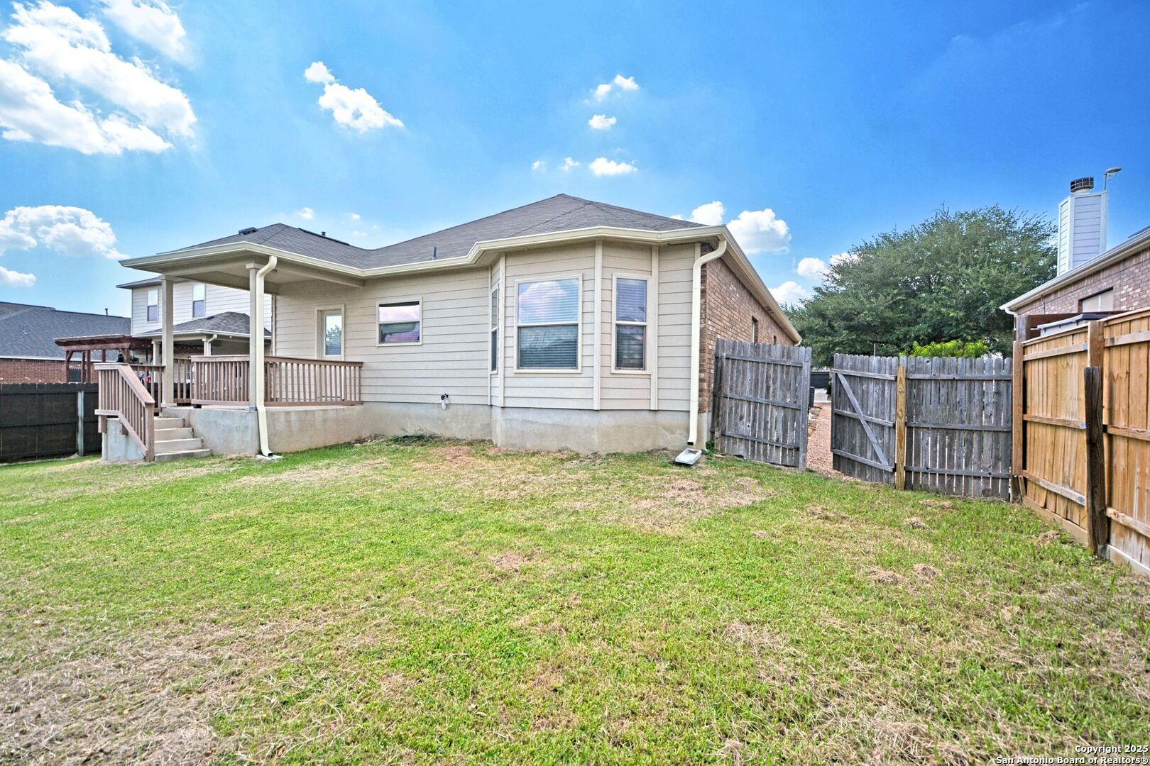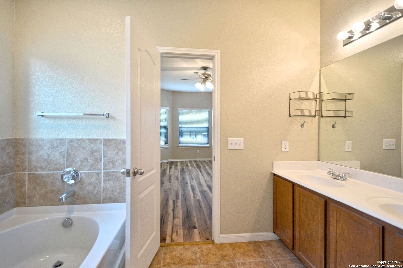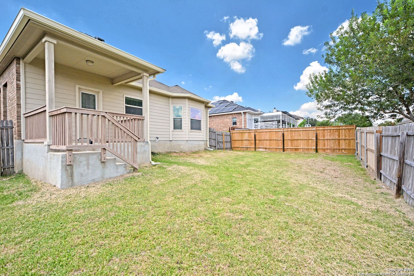 Witness this stylish 3 bed/2 bath stone veneer home with a well shaded front yard that is thoughtfully xeriscaped. Enter into the spacious living room arched entryways and wood-style vinyl flooring that guides you to each room. The island kitchen features dark granite countertops, pantry, and dining area. Check out the primary bedroom with bay windows. Melt your cares away in the primary bathroom suite with garden tub, tiled stand-up shower, and dual sinks. Kick off your shoes and relax underneath the covered porch overlooking the private backyard.