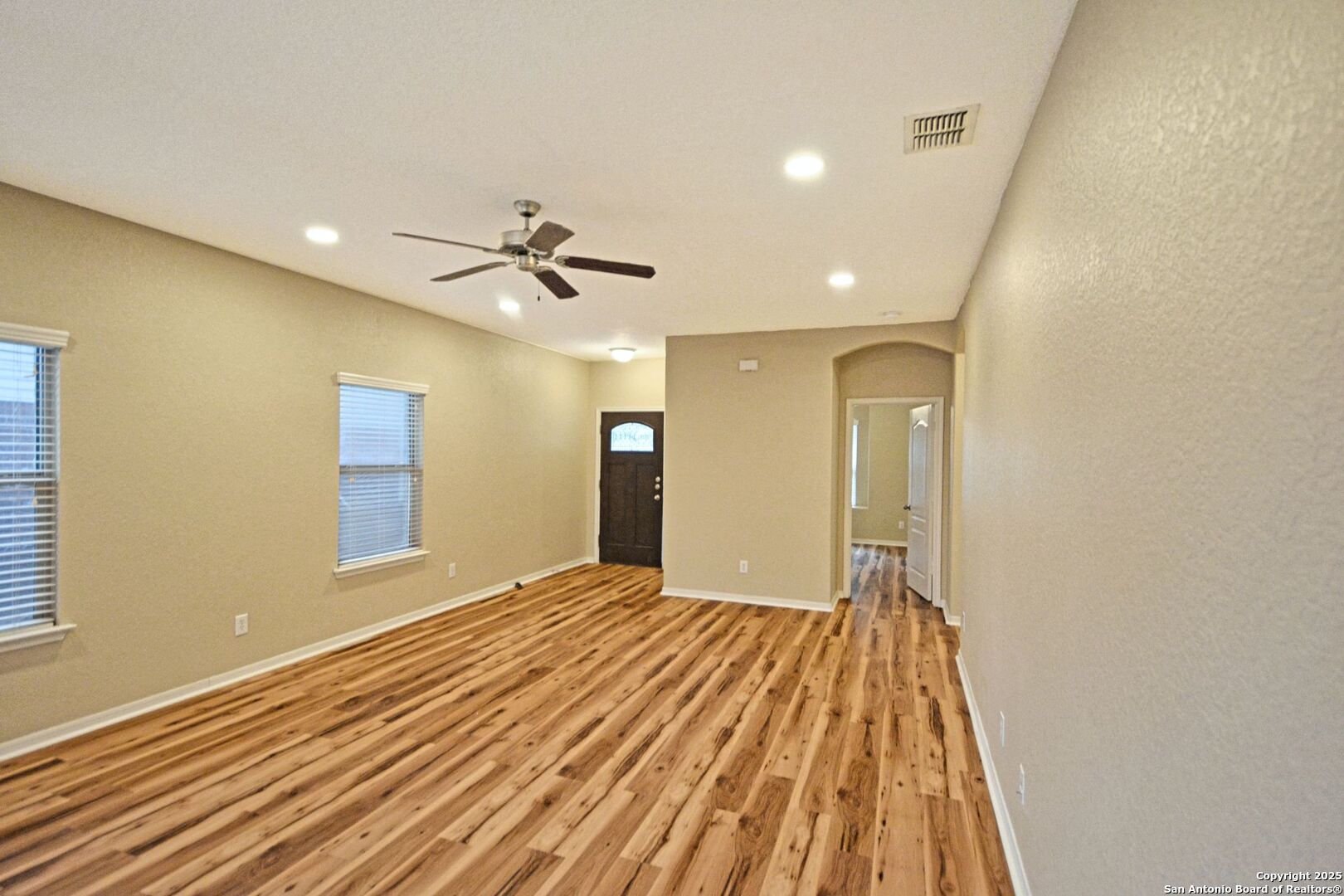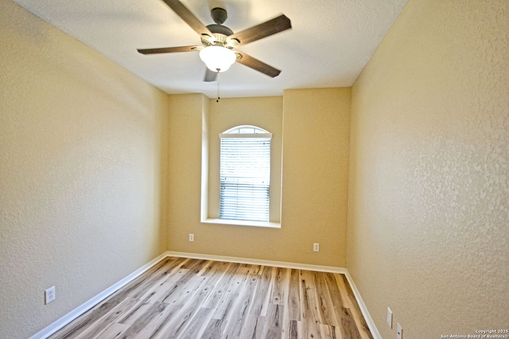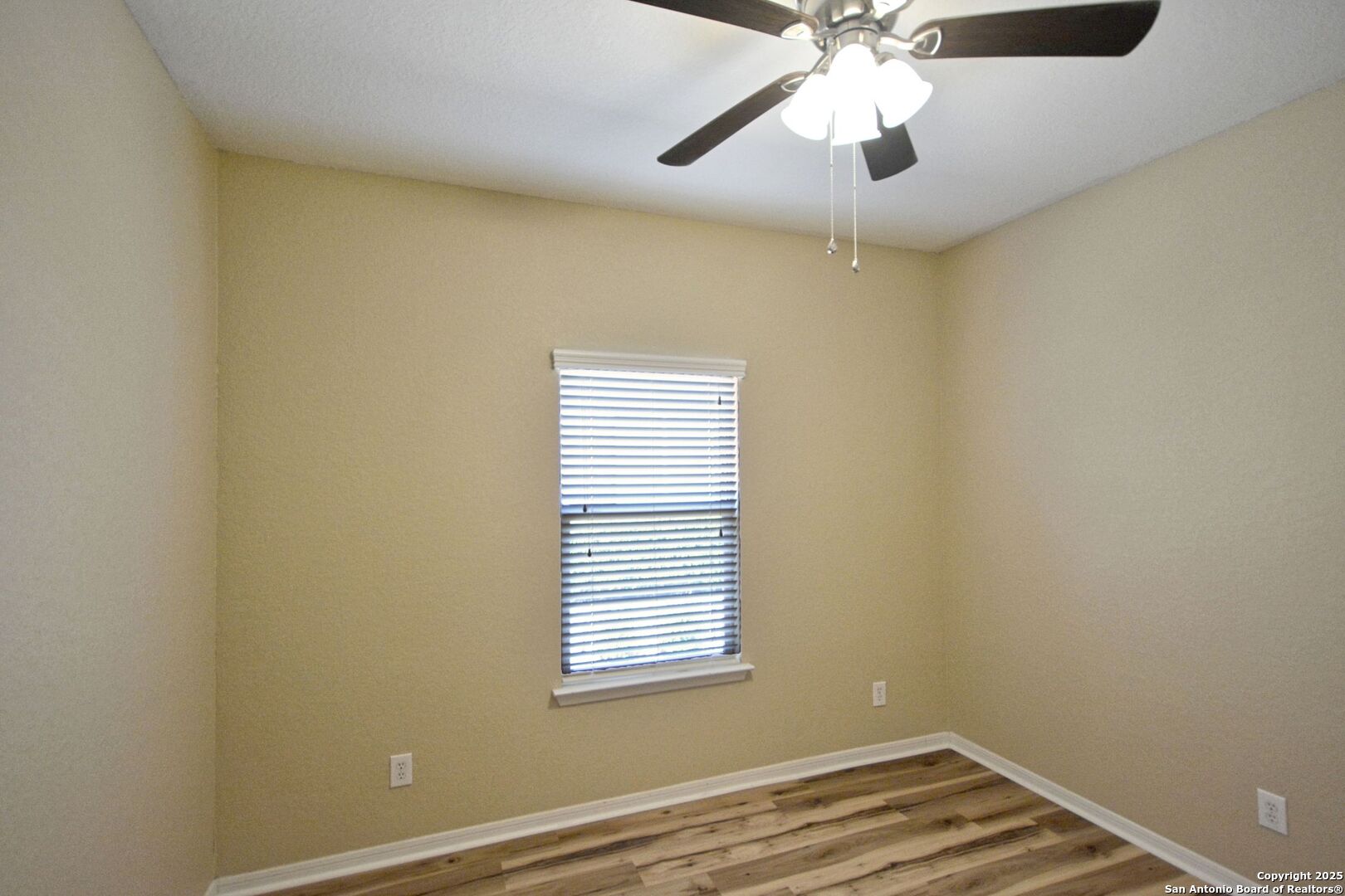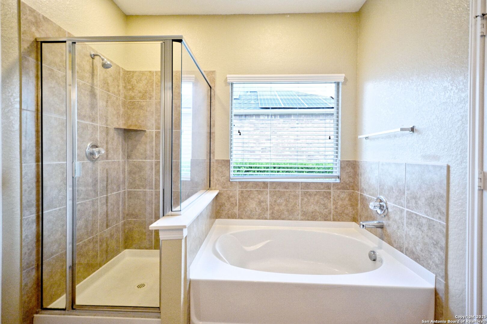 Witness this stylish 3 bed/2 bath stone veneer home with a well shaded front yard that is thoughtfully xeriscaped. Enter into the spacious living room arched entryways and wood-style vinyl flooring that guides you to each room. The island kitchen features dark granite countertops, pantry, and dining area. Check out the primary bedroom with bay windows. Melt your cares away in the primary bathroom suite with garden tub, tiled stand-up shower, and dual sinks. Kick off your shoes and relax underneath the covered porch overlooking the private backyard.