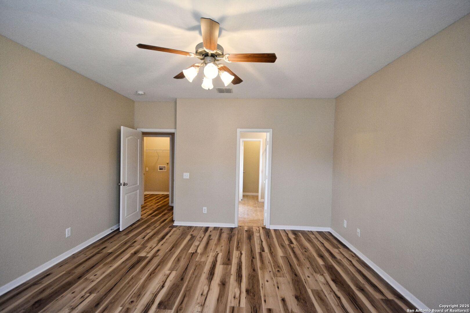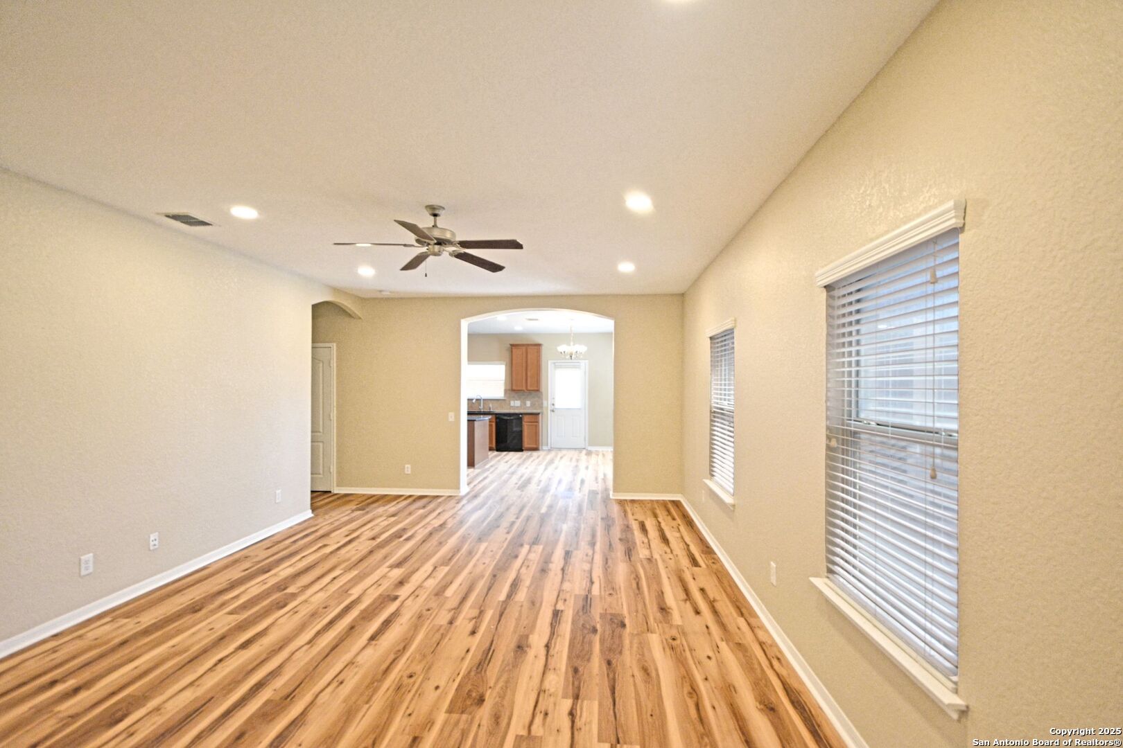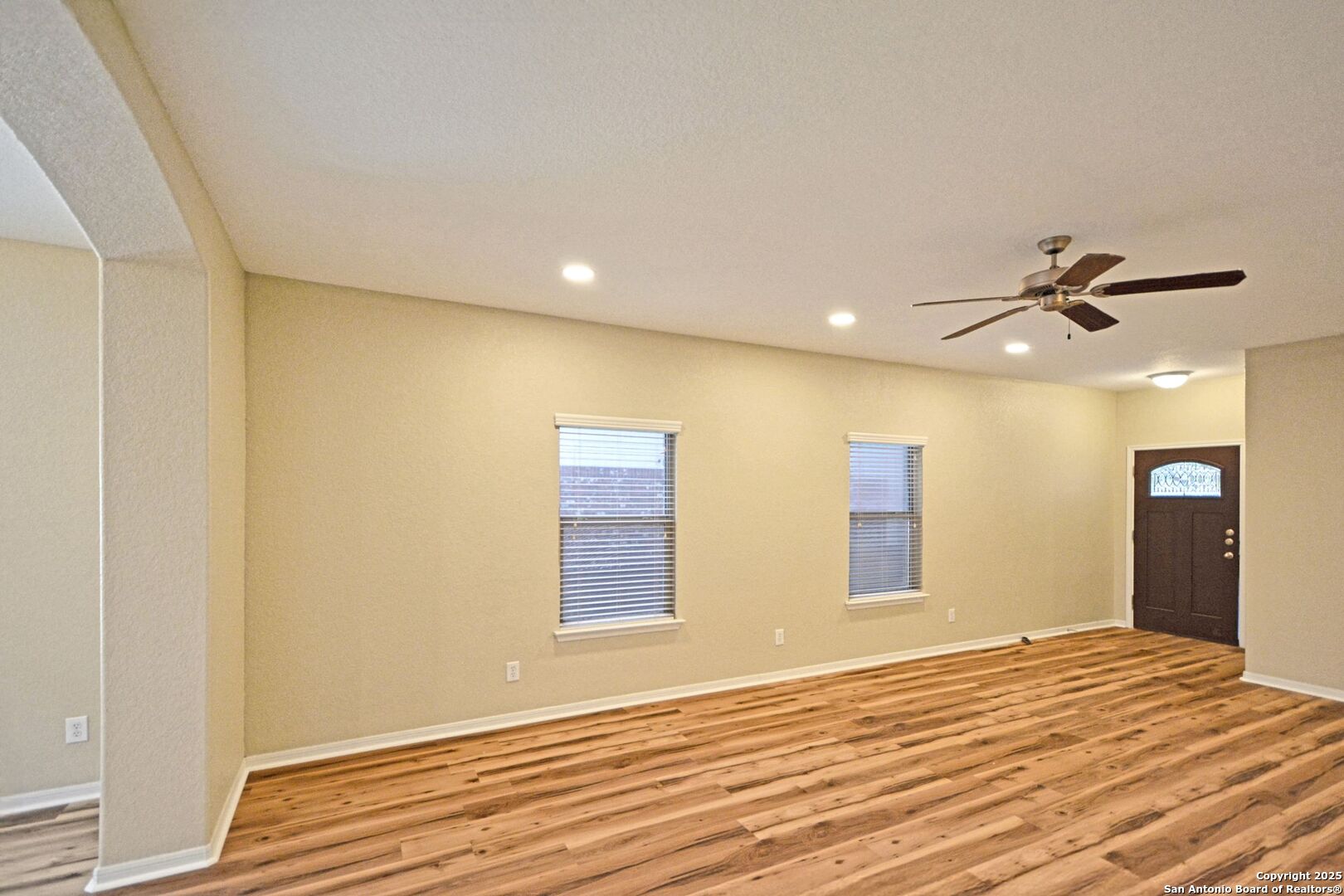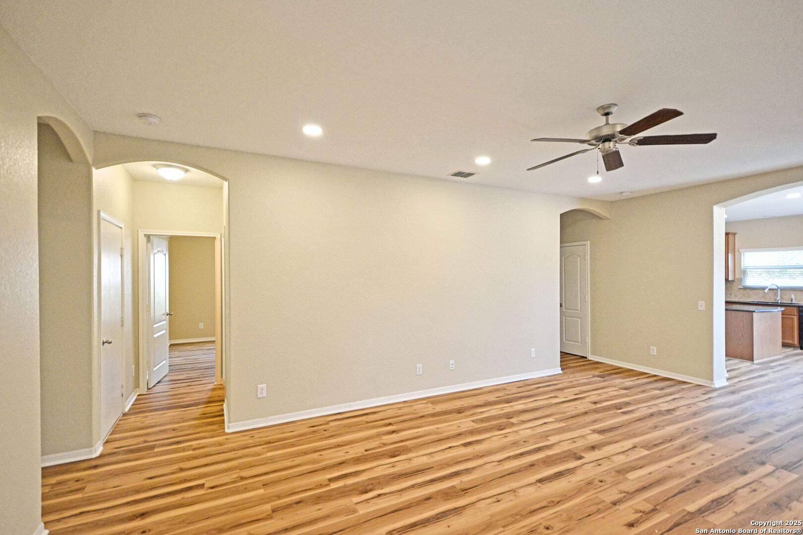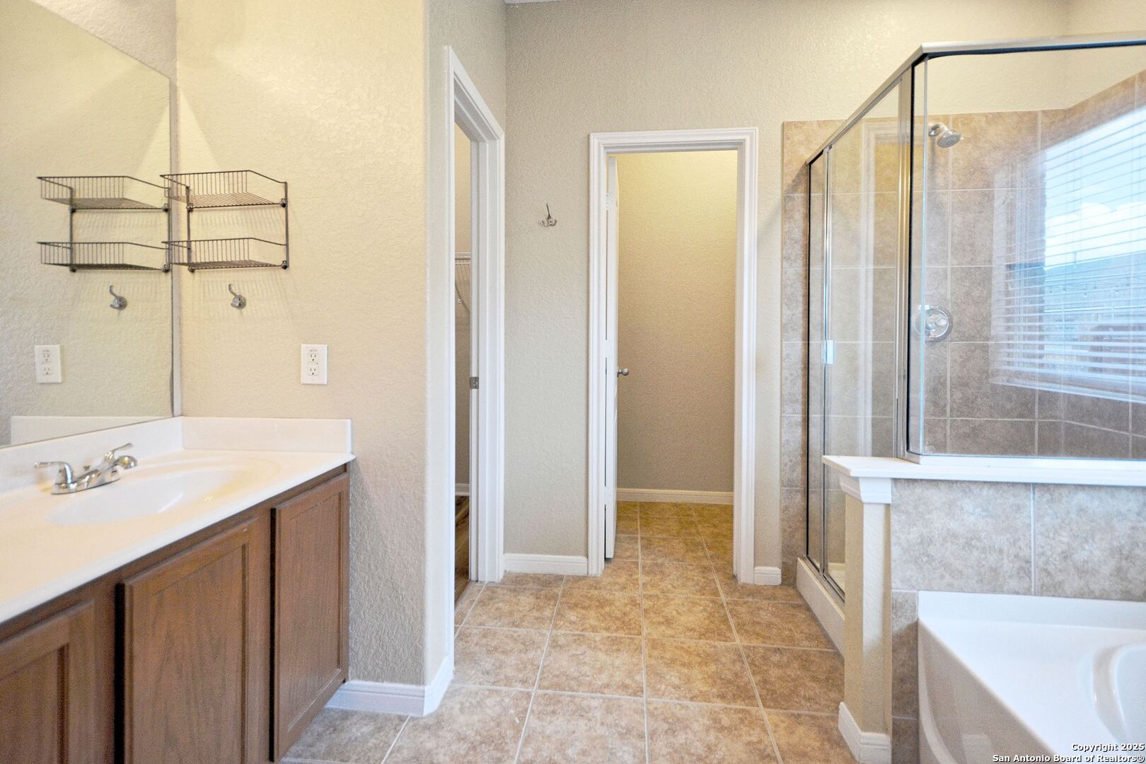 Witness this stylish 3 bed/2 bath stone veneer home with a well shaded front yard that is thoughtfully xeriscaped. Enter into the spacious living room arched entryways and wood-style vinyl flooring that guides you to each room. The island kitchen features dark granite countertops, pantry, and dining area. Check out the primary bedroom with bay windows. Melt your cares away in the primary bathroom suite with garden tub, tiled stand-up shower, and dual sinks. Kick off your shoes and relax underneath the covered porch overlooking the private backyard.