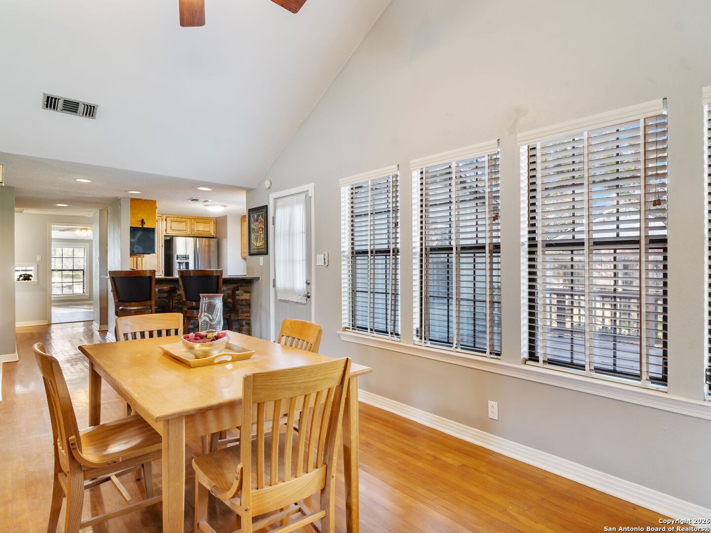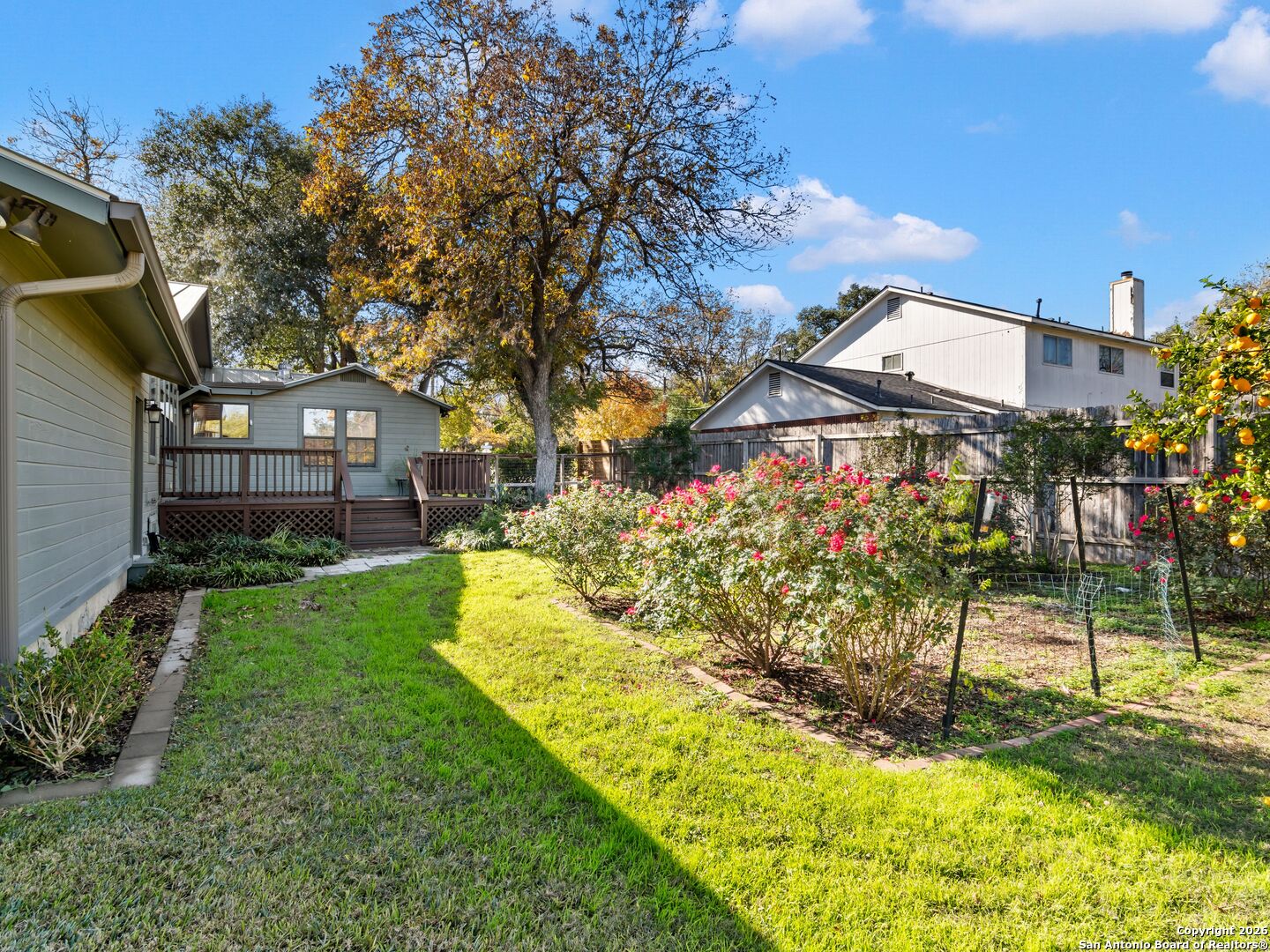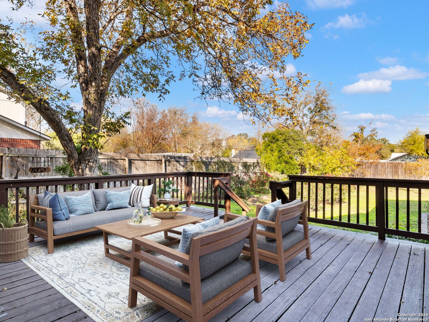 FANTASTIC LOCATION! Beautifully updated 4-bedroom, 3-bath home ideally situated in the highly sought-after Alamo Heights neighborhood. This light-filled home features hardwood floors, an open floor plan, and abundant natural light throughout. The inviting family room showcases a stunning vaulted ceiling and cozy fireplace, seamlessly connecting to the kitchen-perfect for everyday living and entertaining. The kitchen offers granite countertops, updated stainless steel appliances, and gas cooking. The spacious primary suite includes a spa-like bath, while three additional bedrooms and two full baths provide comfort and flexibility. Enjoy outdoor living on the expansive deck overlooking a large, park-like backyard. Additional highlights include a metal roof and an oversized two-car garage with ample storage. Located in acclaimed Alamo Heights ISD-Welcome Home!