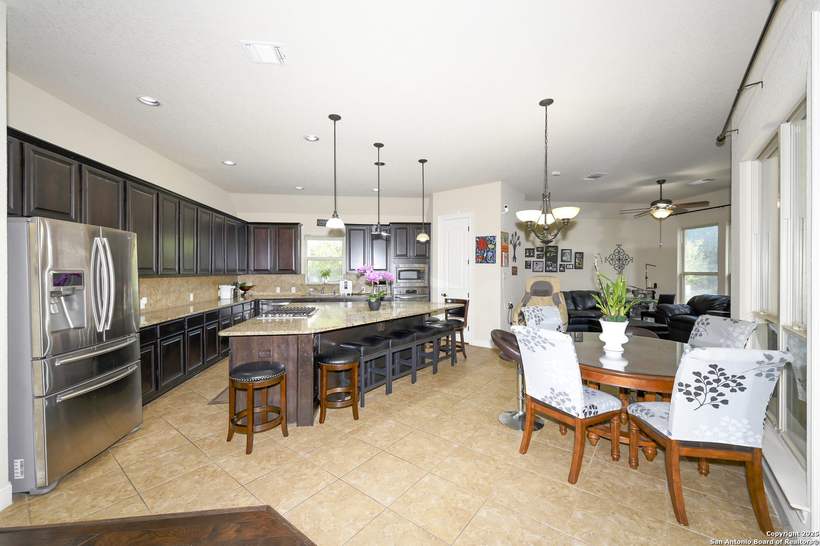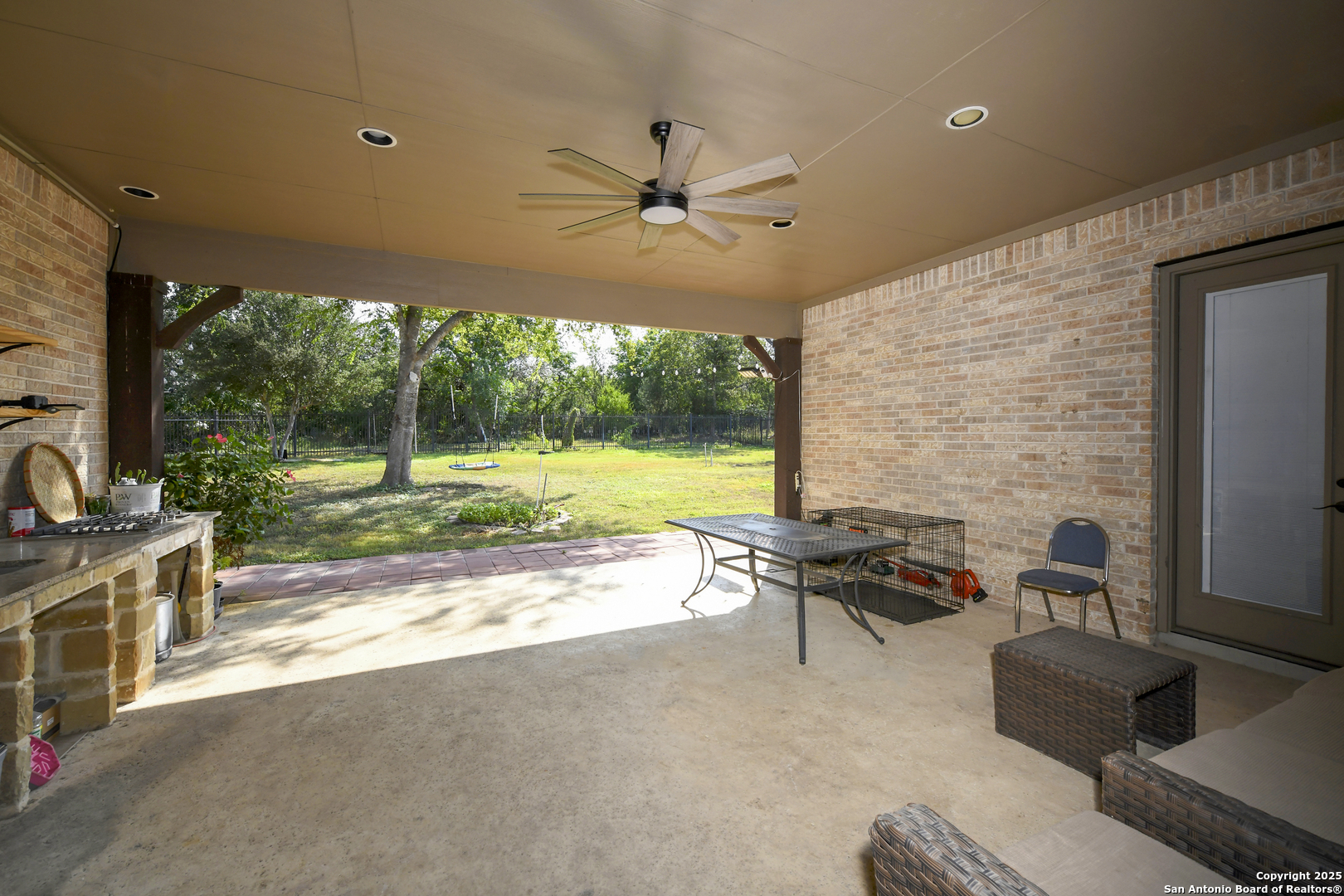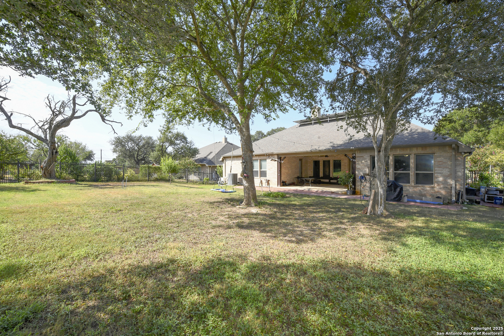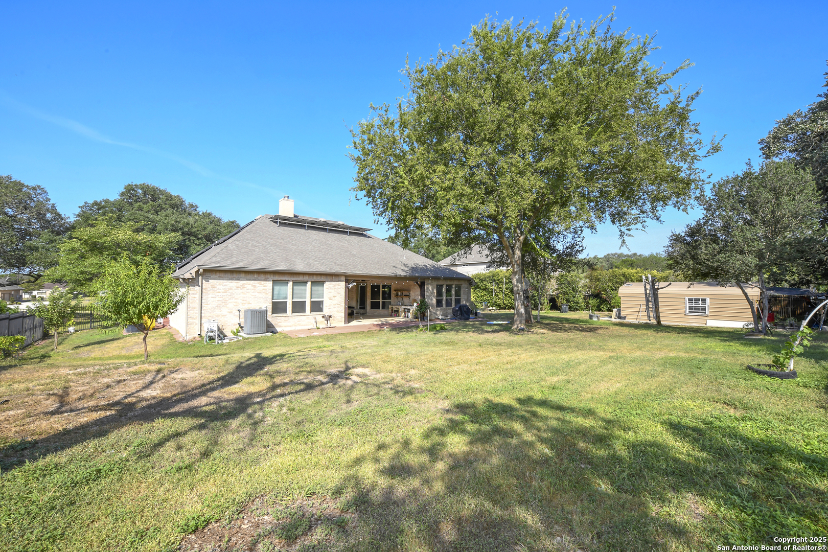 Welcome to this stunning Garden Ridge home, perfectly situated in the prestigious gated community of Arrowood Estate. From the moment you step inside, you'll find every room thoughtfully designed to impress-blending comfort, style, and functionality for both relaxation and entertaining. The spacious master suite is a private retreat, complete with a luxurious garden tub to unwind after a long day. The home boasts soaring 10-ft ceilings, beautiful wood floors, and energy-efficient solar panels for modern living. Step outside to your own backyard oasis! Enjoy the serenity of a professionally landscaped yard on a Texas-sized lot just shy of an acre. The extended covered patio with a full outdoor kitchen is perfect for hosting gatherings, while the circle driveway, shed, and burglar gate add convenience and peace of mind. Located in the highly sought-after Comal ISD, this Woodside Home offers both space and privacy in one of the most desirable areas of Garden Ridge. Don't miss the chance to turn your homeownership dreams into reality-schedule your showing today and see why this property is a must-see!