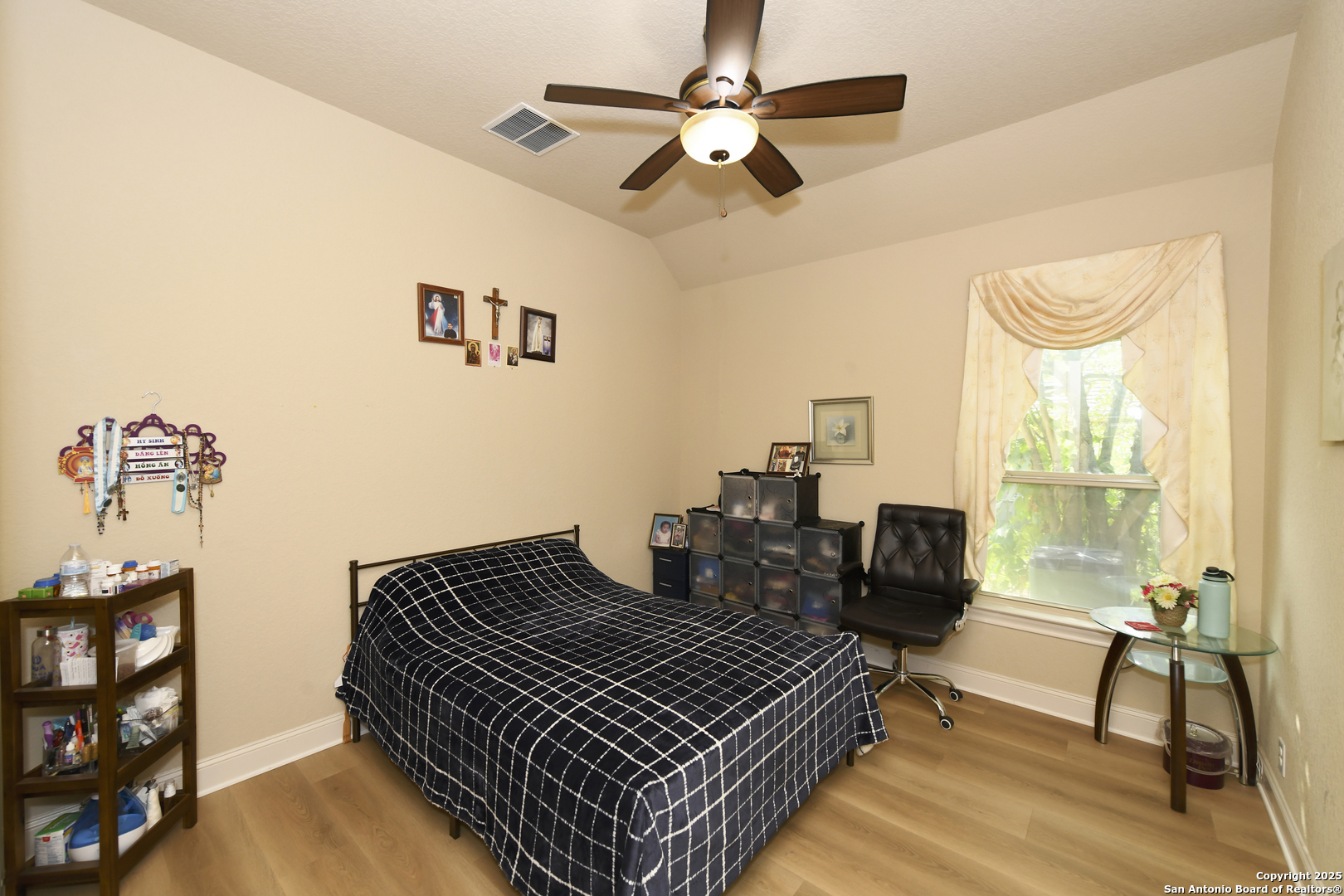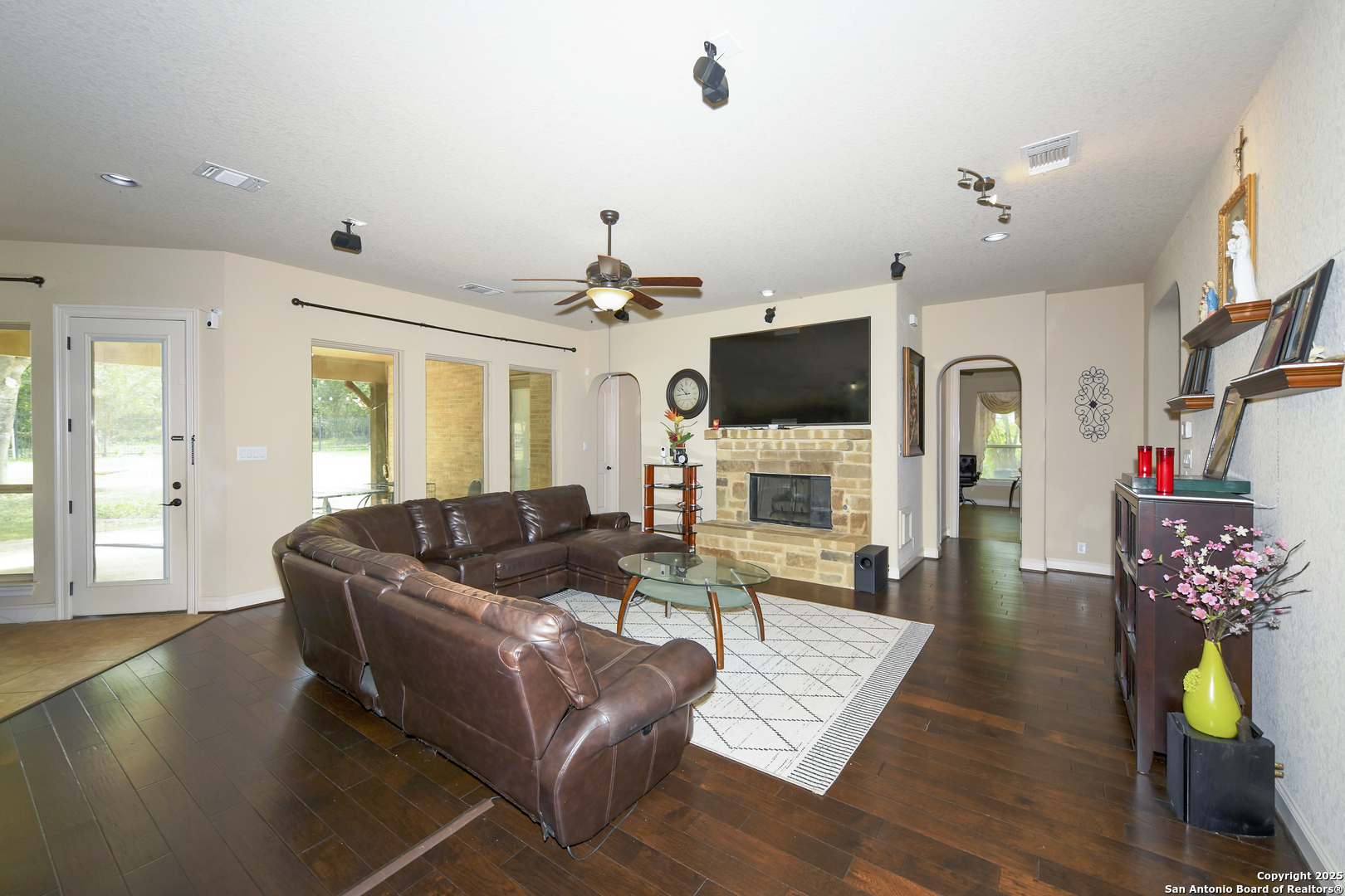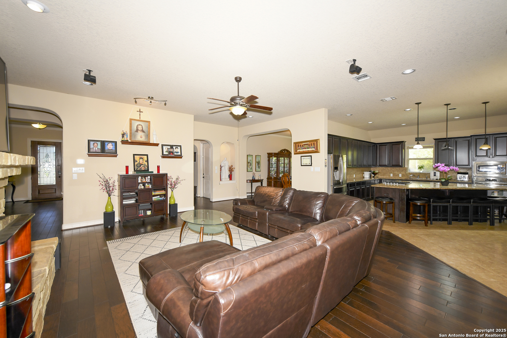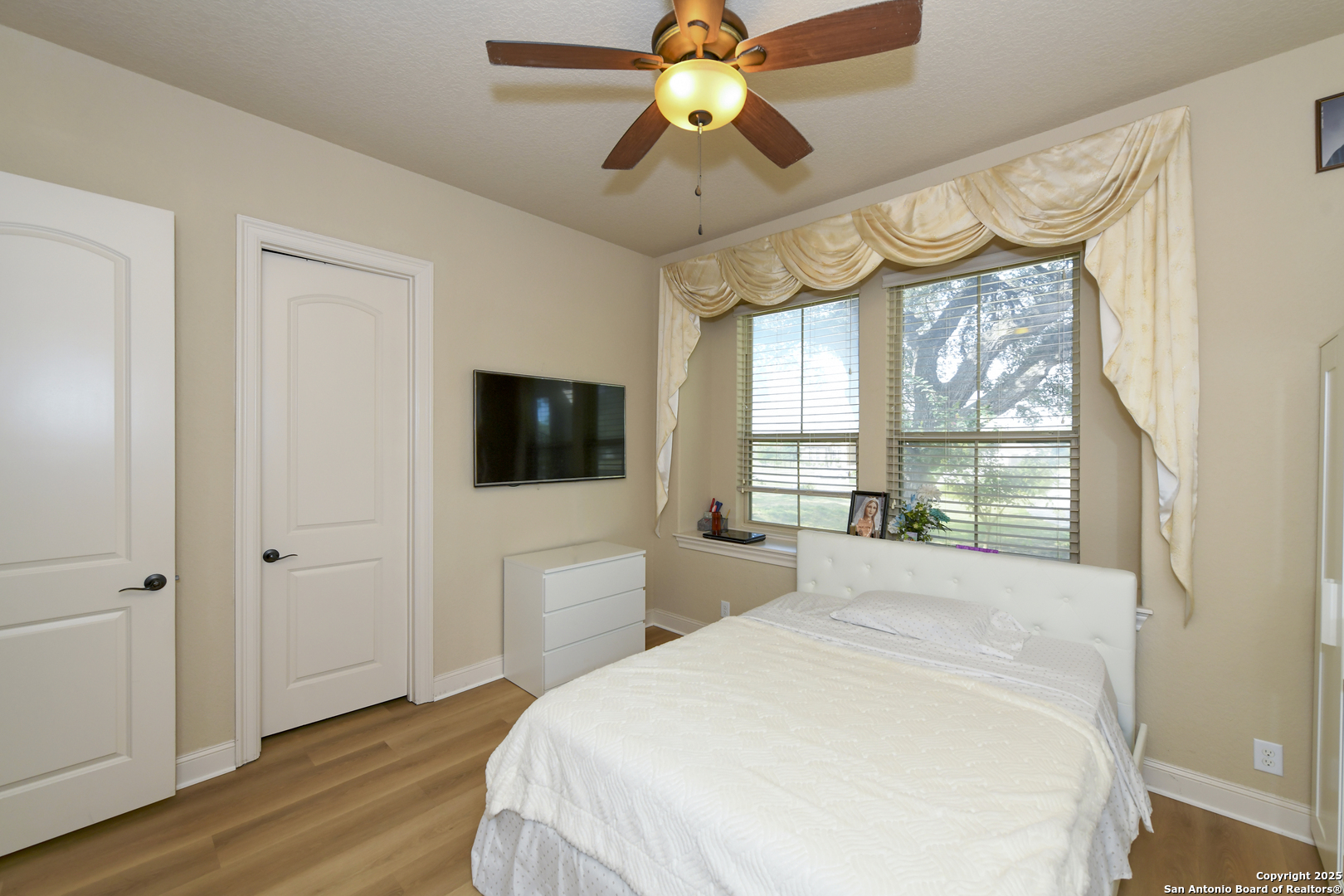 Welcome to this stunning Garden Ridge home, perfectly situated in the prestigious gated community of Arrowood Estate. From the moment you step inside, you'll find every room thoughtfully designed to impress-blending comfort, style, and functionality for both relaxation and entertaining. The spacious master suite is a private retreat, complete with a luxurious garden tub to unwind after a long day. The home boasts soaring 10-ft ceilings, beautiful wood floors, and energy-efficient solar panels for modern living. Step outside to your own backyard oasis! Enjoy the serenity of a professionally landscaped yard on a Texas-sized lot just shy of an acre. The extended covered patio with a full outdoor kitchen is perfect for hosting gatherings, while the circle driveway, shed, and burglar gate add convenience and peace of mind. Located in the highly sought-after Comal ISD, this Woodside Home offers both space and privacy in one of the most desirable areas of Garden Ridge. Don't miss the chance to turn your homeownership dreams into reality-schedule your showing today and see why this property is a must-see!