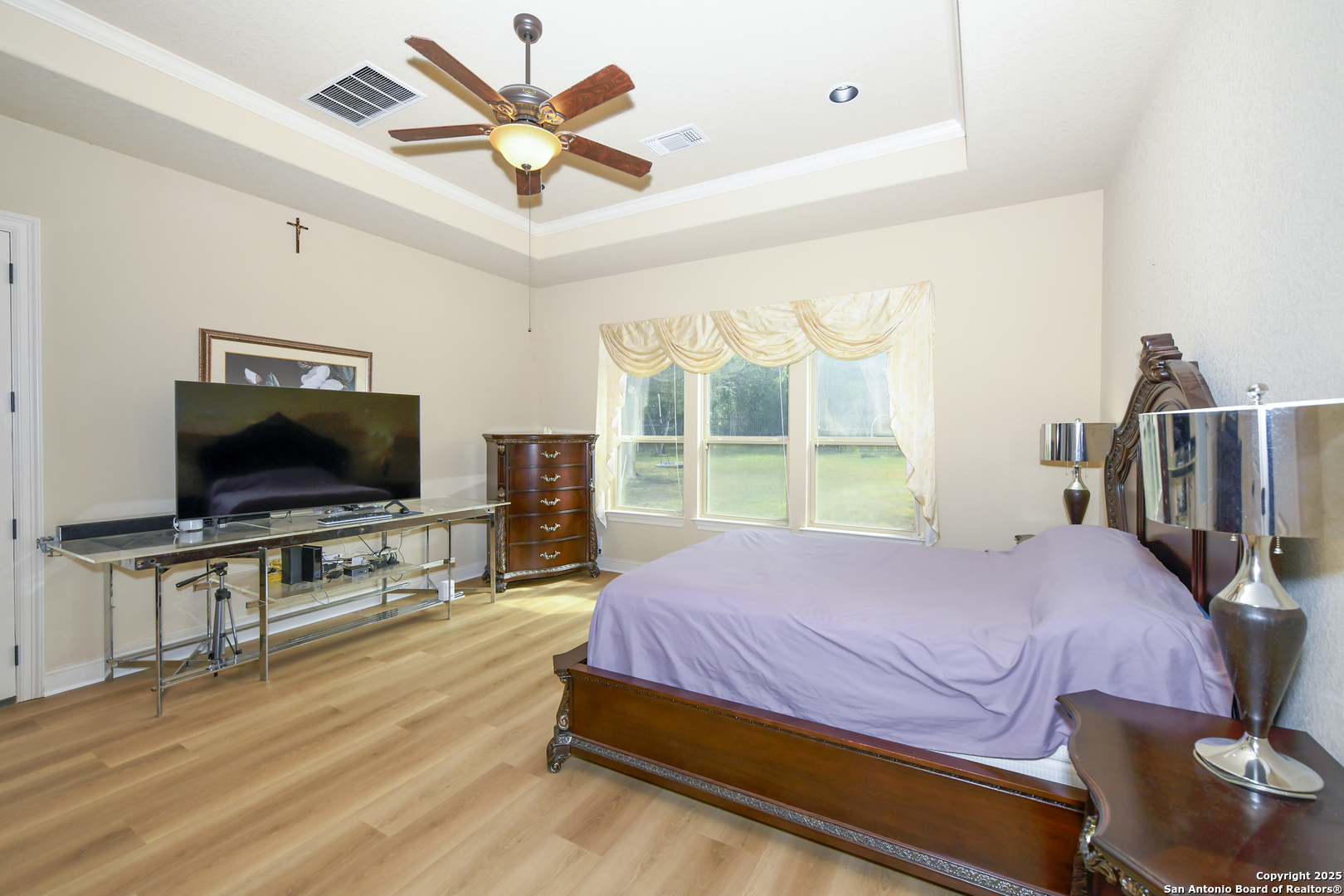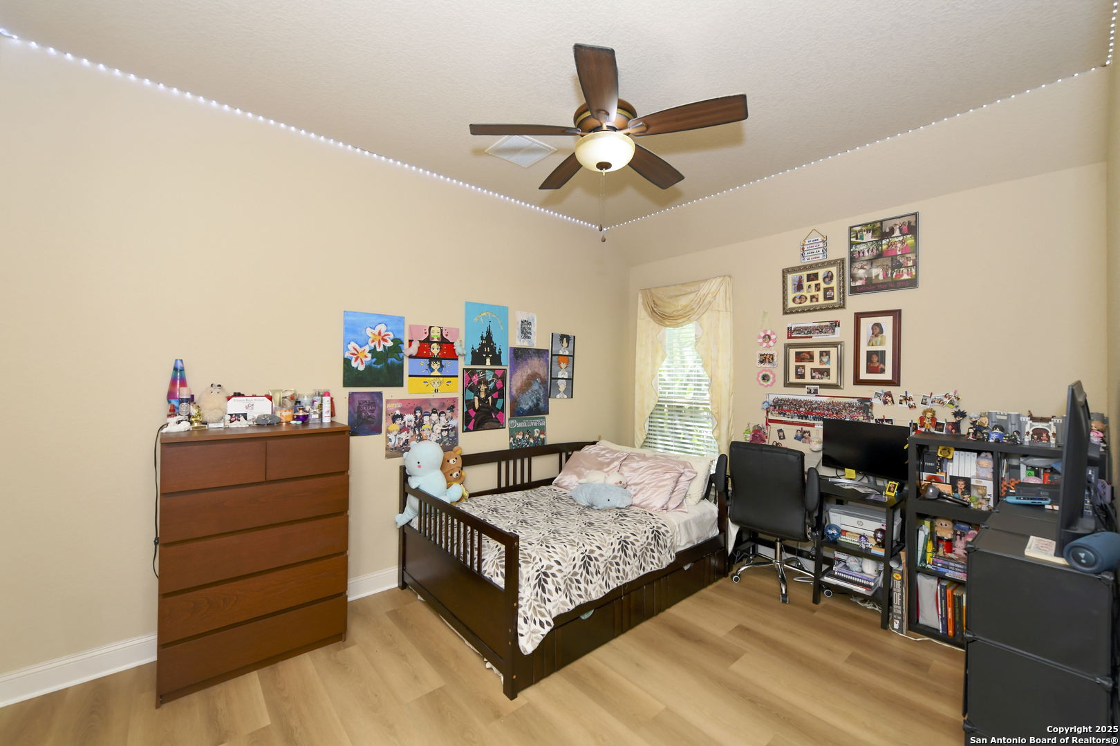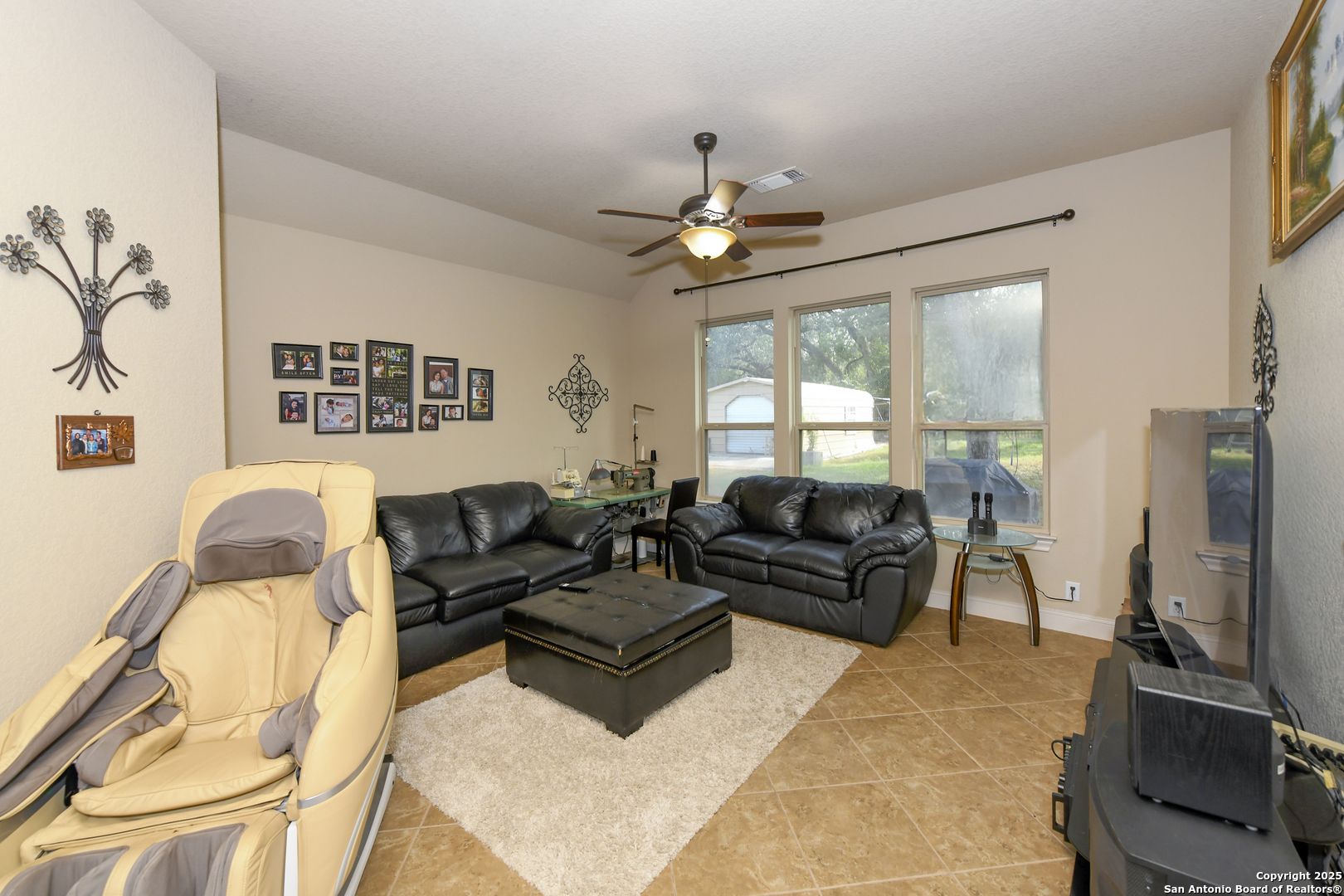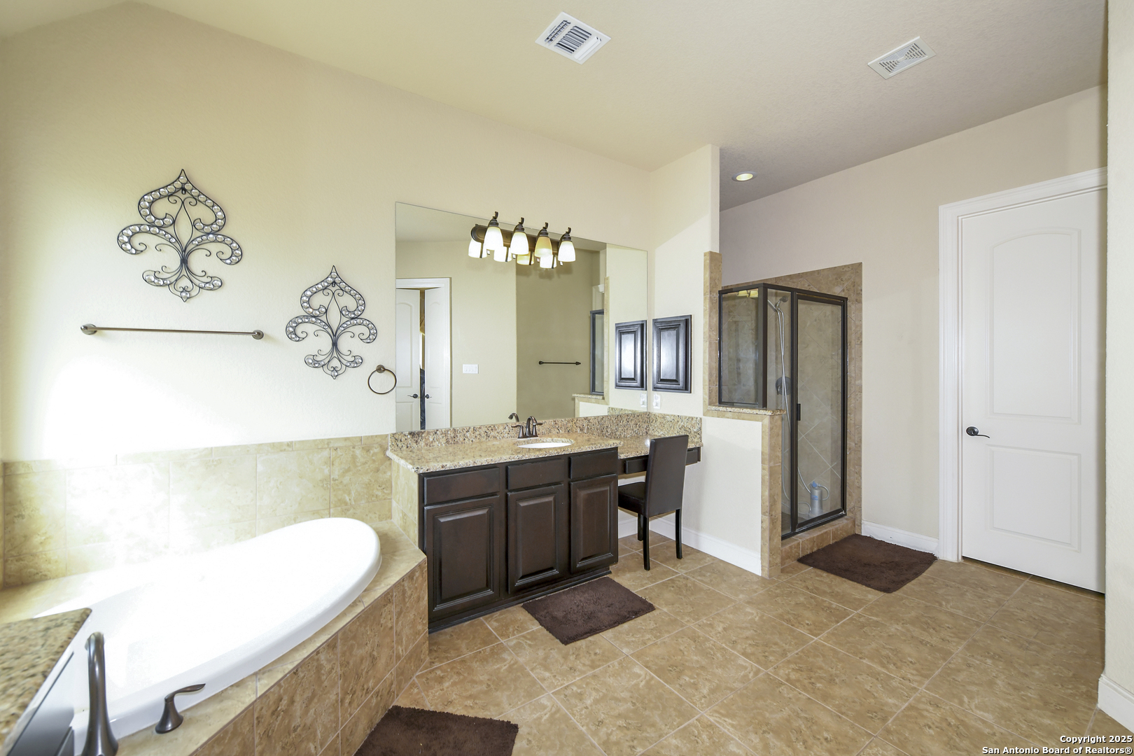Welcome to this stunning Garden Ridge home, perfectly situated in the prestigious gated community of Arrowood Estate. From the moment you step inside, you'll find every room thoughtfully designed to impress-blending comfort, style, and functionality for both relaxation and entertaining. The spacious master suite is a private retreat, complete with a luxurious garden tub to unwind after a long day. The home boasts soaring 10-ft ceilings, beautiful wood floors, and energy-efficient solar panels for modern living. Step outside to your own backyard oasis! Enjoy the serenity of a professionally landscaped yard on a Texas-sized lot just shy of an acre. The extended covered patio with a full outdoor kitchen is perfect for hosting gatherings, while the circle driveway, shed, and burglar gate add convenience and peace of mind. Located in the highly sought-after Comal ISD, this Woodside Home offers both space and privacy in one of the most desirable areas of Garden Ridge. Don't miss the chance to turn your homeownership dreams into reality-schedule your showing today and see why this property is a must-see!