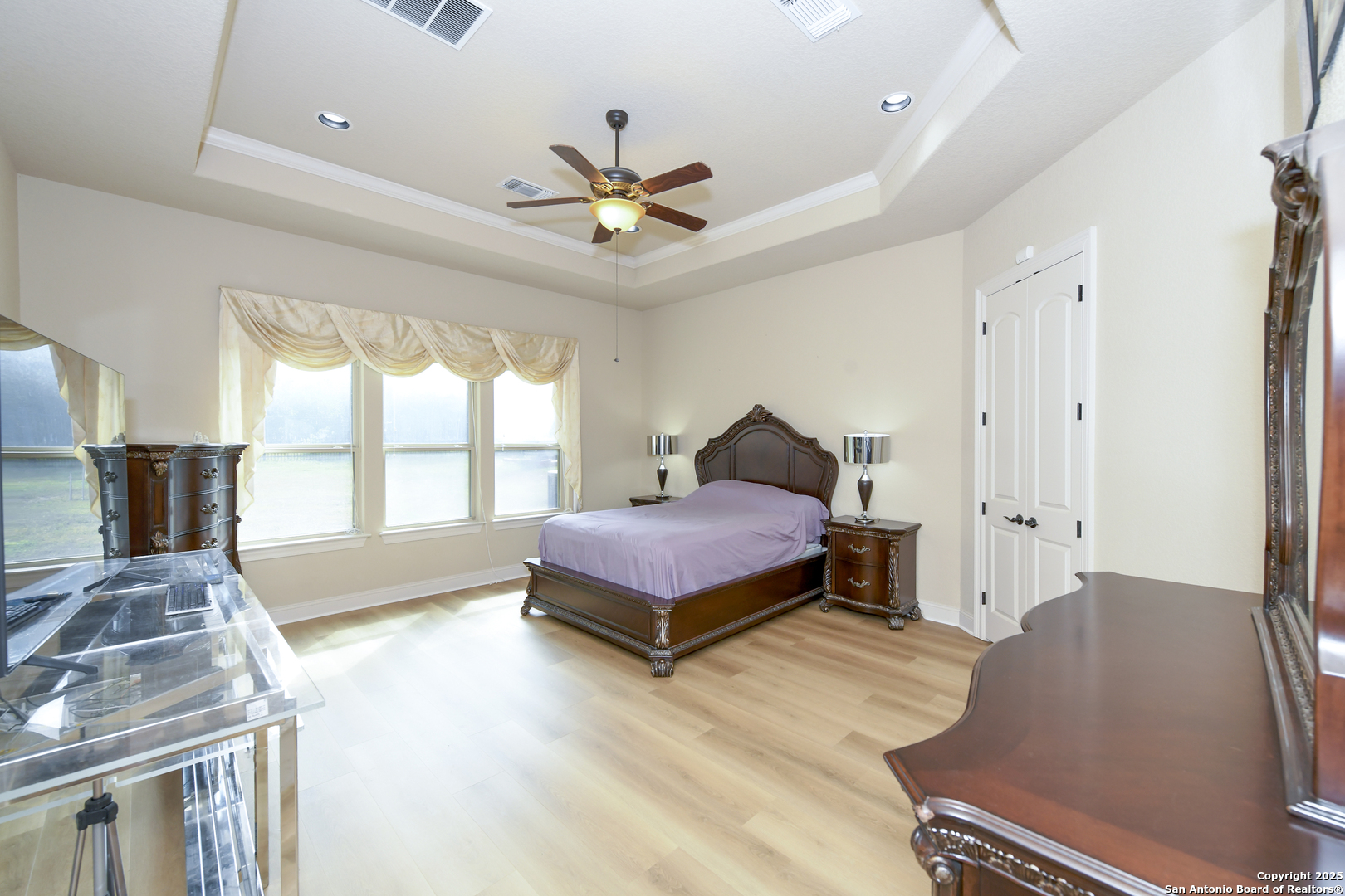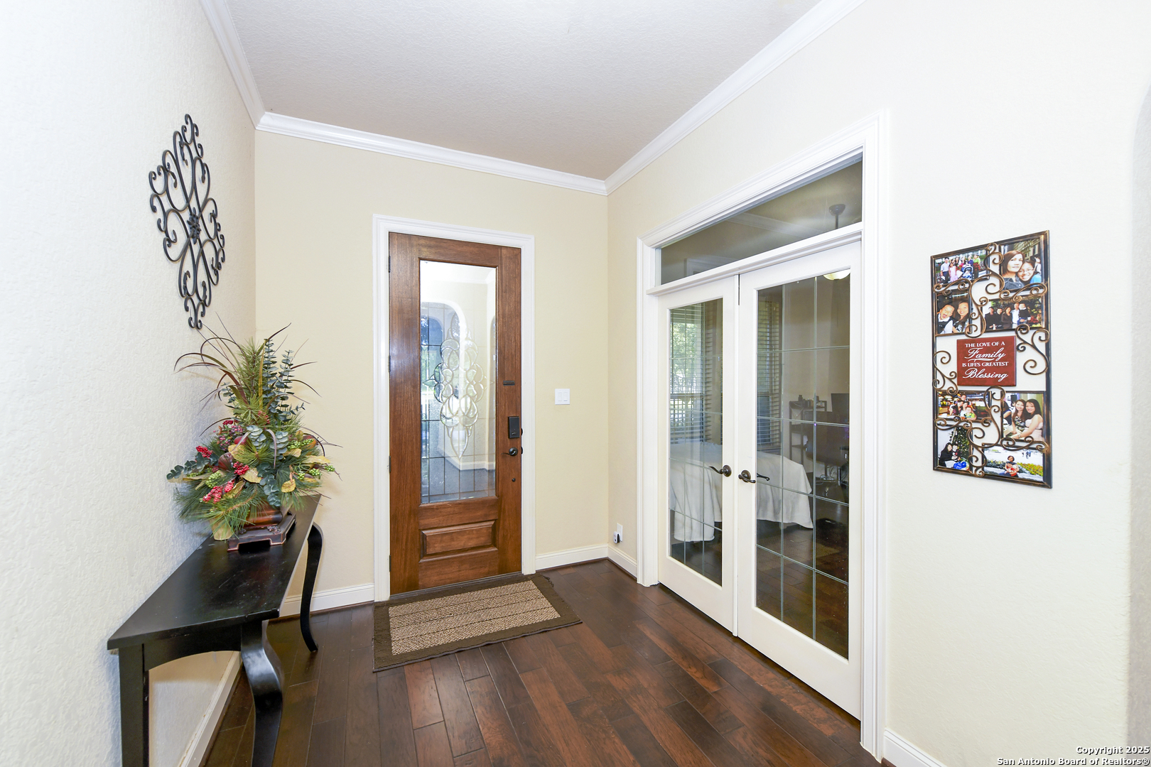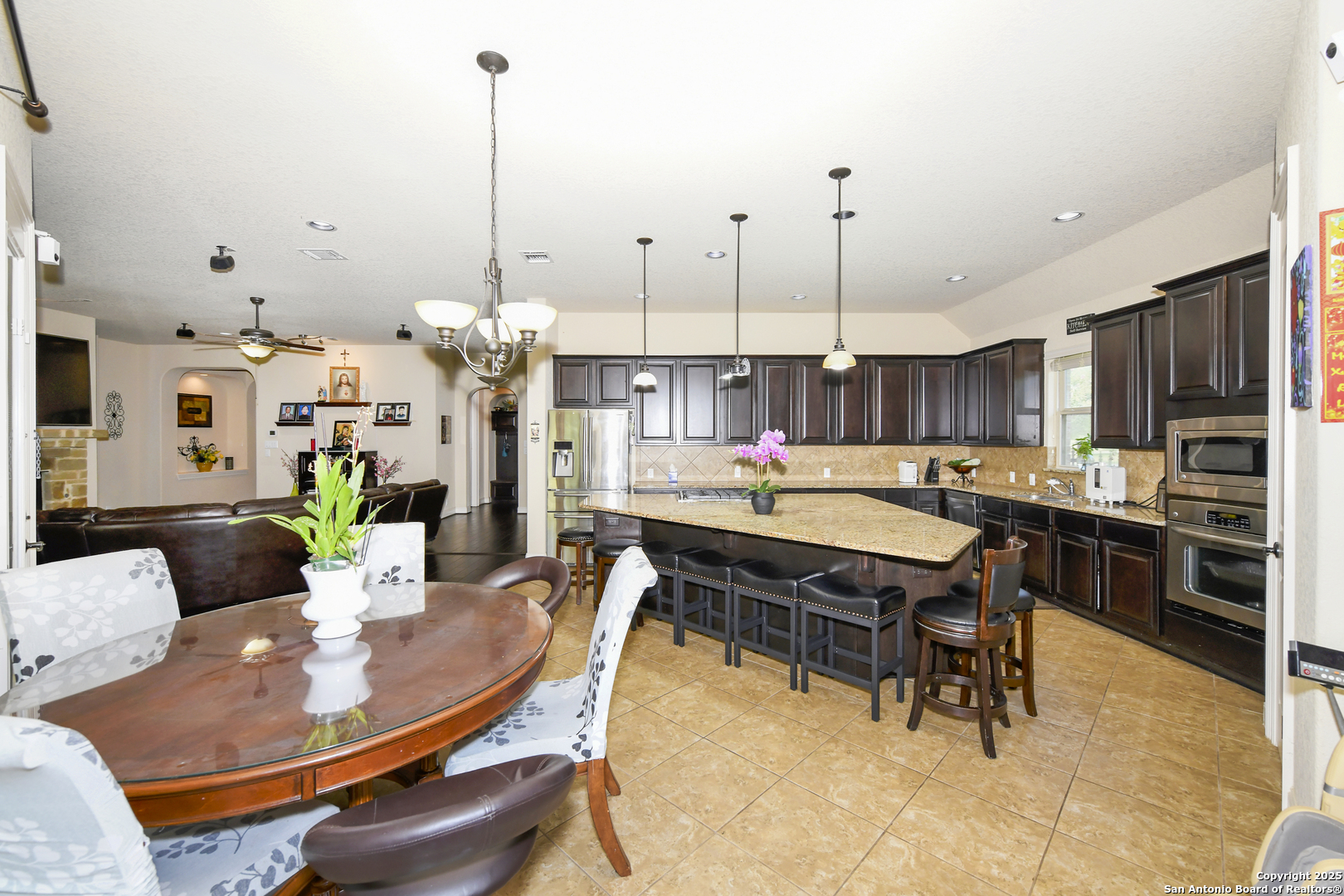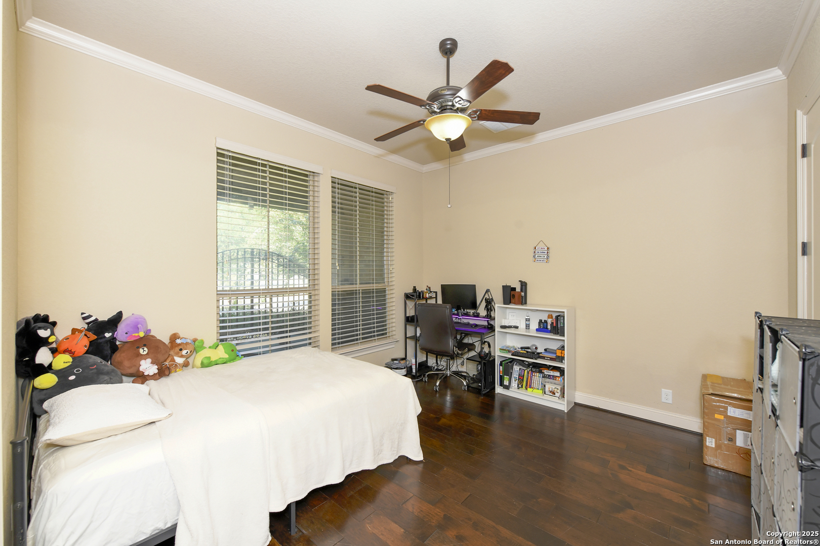 Welcome to this stunning Garden Ridge home, perfectly situated in the prestigious gated community of Arrowood Estate. From the moment you step inside, you'll find every room thoughtfully designed to impress-blending comfort, style, and functionality for both relaxation and entertaining. The spacious master suite is a private retreat, complete with a luxurious garden tub to unwind after a long day. The home boasts soaring 10-ft ceilings, beautiful wood floors, and energy-efficient solar panels for modern living. Step outside to your own backyard oasis! Enjoy the serenity of a professionally landscaped yard on a Texas-sized lot just shy of an acre. The extended covered patio with a full outdoor kitchen is perfect for hosting gatherings, while the circle driveway, shed, and burglar gate add convenience and peace of mind. Located in the highly sought-after Comal ISD, this Woodside Home offers both space and privacy in one of the most desirable areas of Garden Ridge. Don't miss the chance to turn your homeownership dreams into reality-schedule your showing today and see why this property is a must-see!